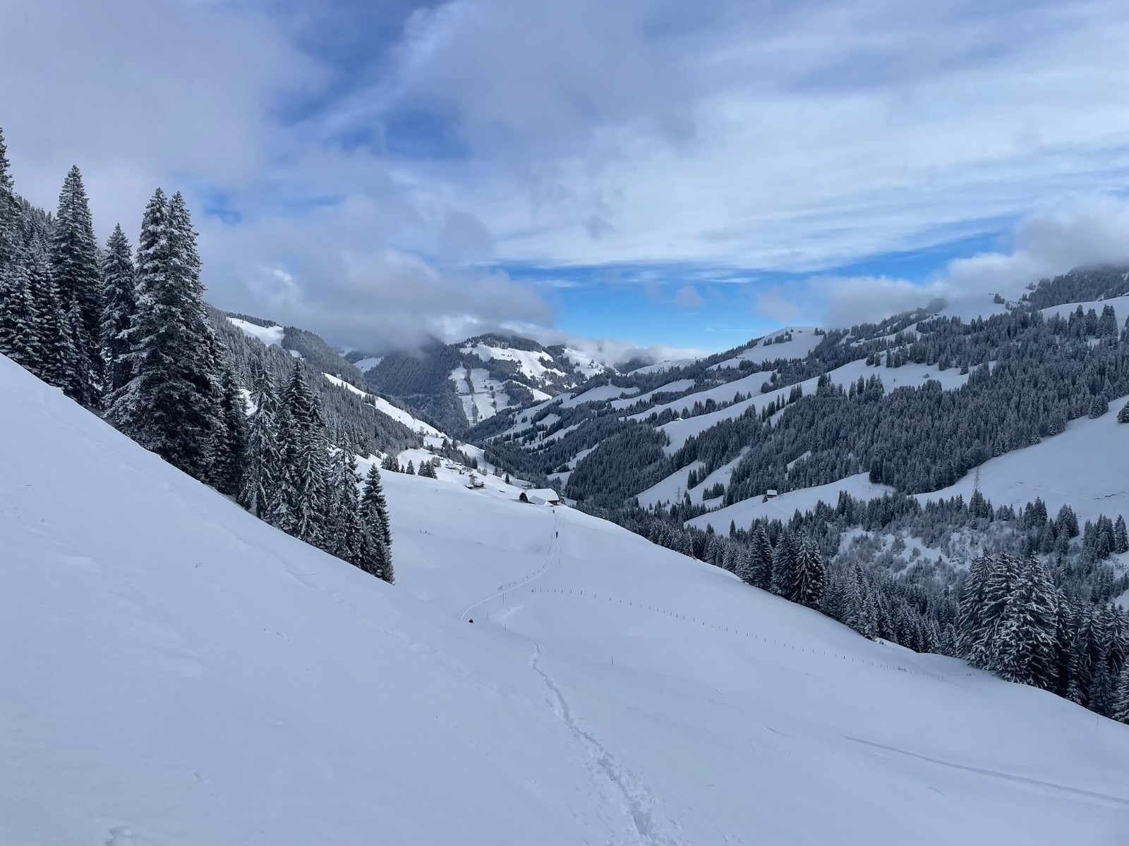 Je vise donc l'Amelier et la descente dans le vallon des fenyls. Bonne surprise à Abländschen: la neige est bien là au départ.