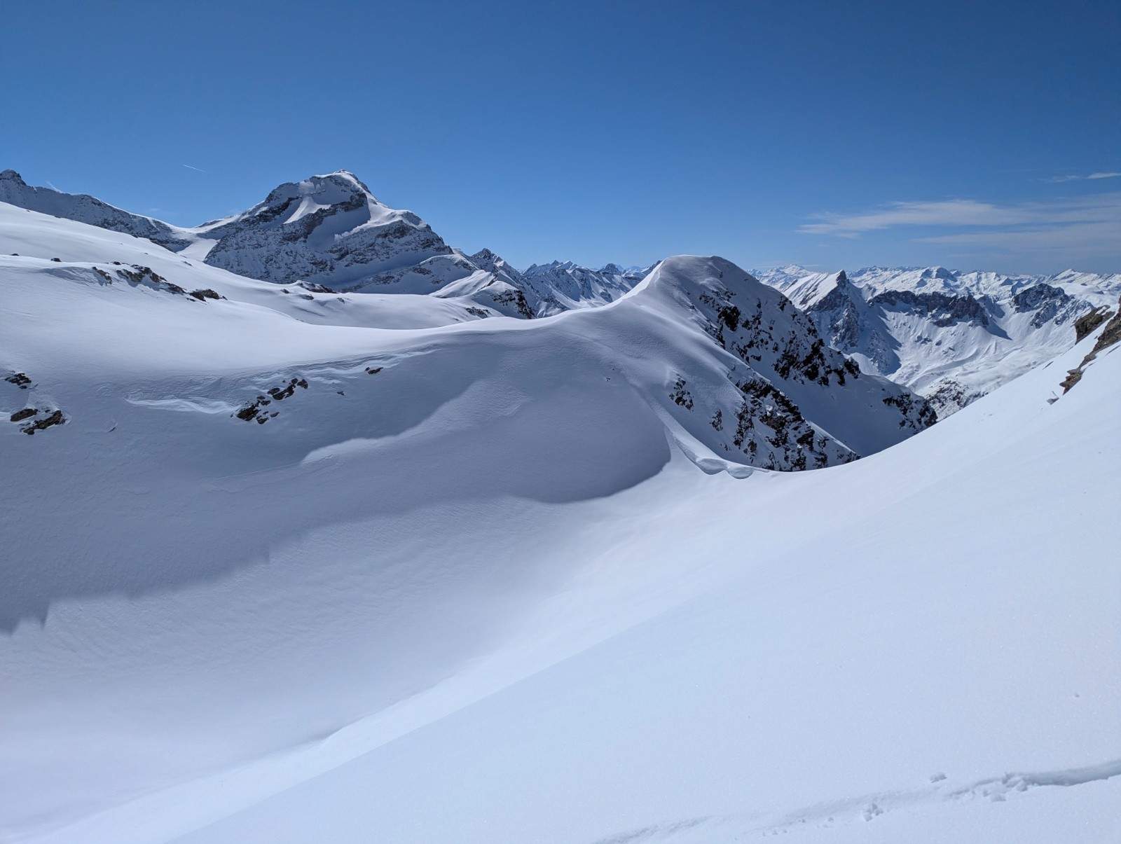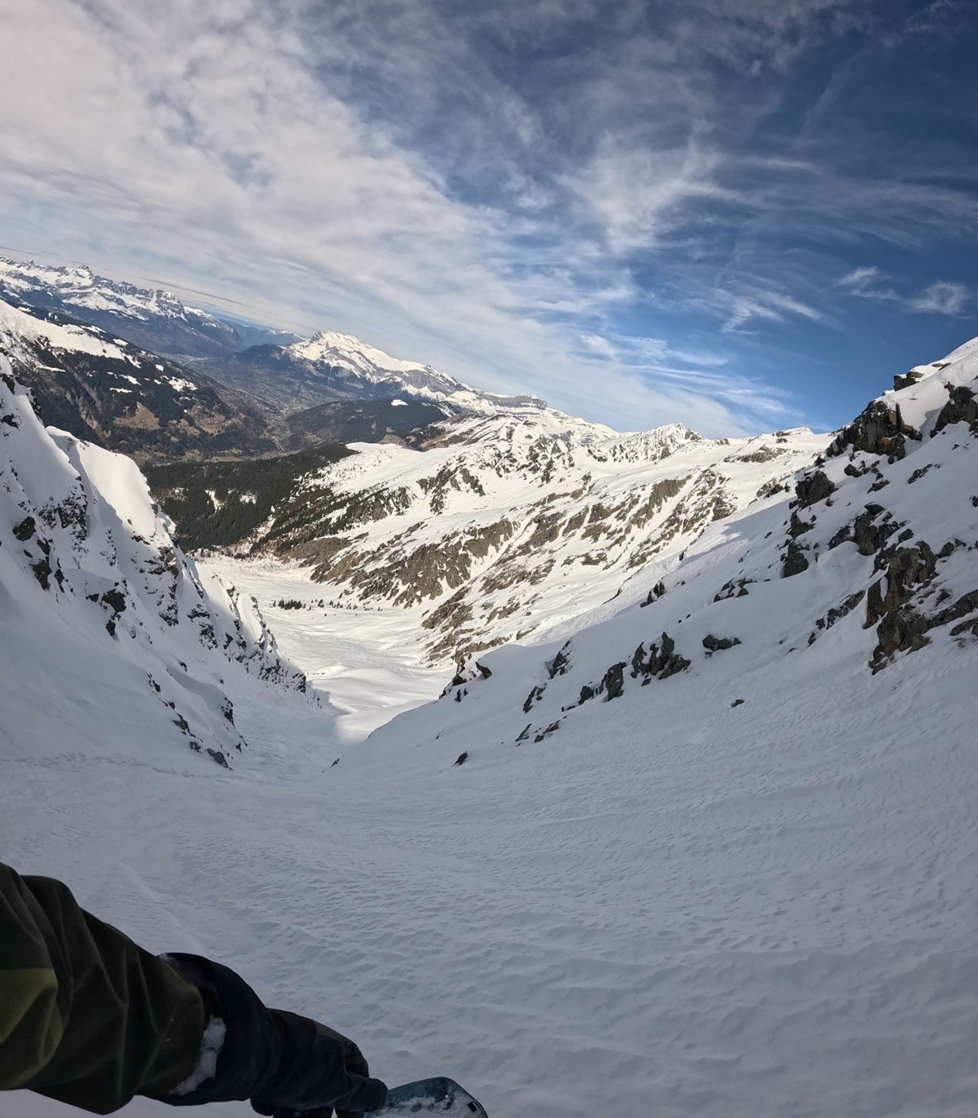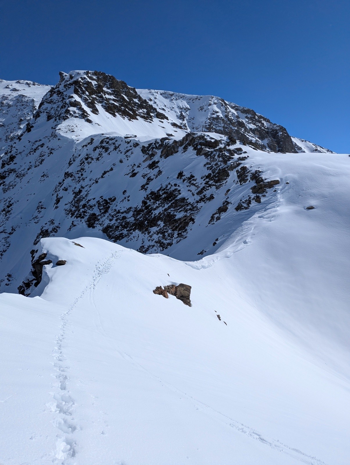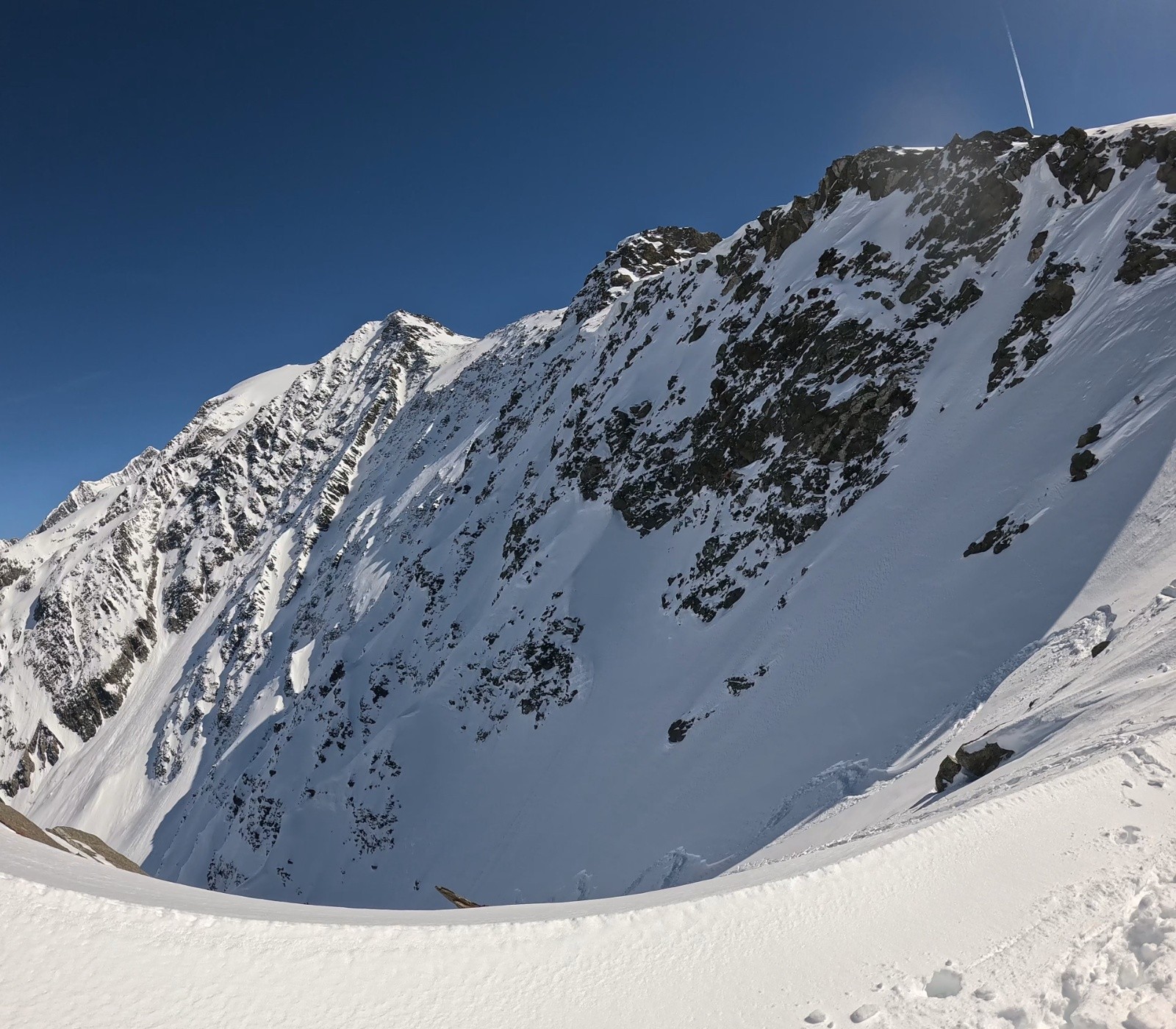 Conditions pour le ski : neige froide dans le couloir sur 30cm avec fond dur (parfait pour remonter à crampon piolet)