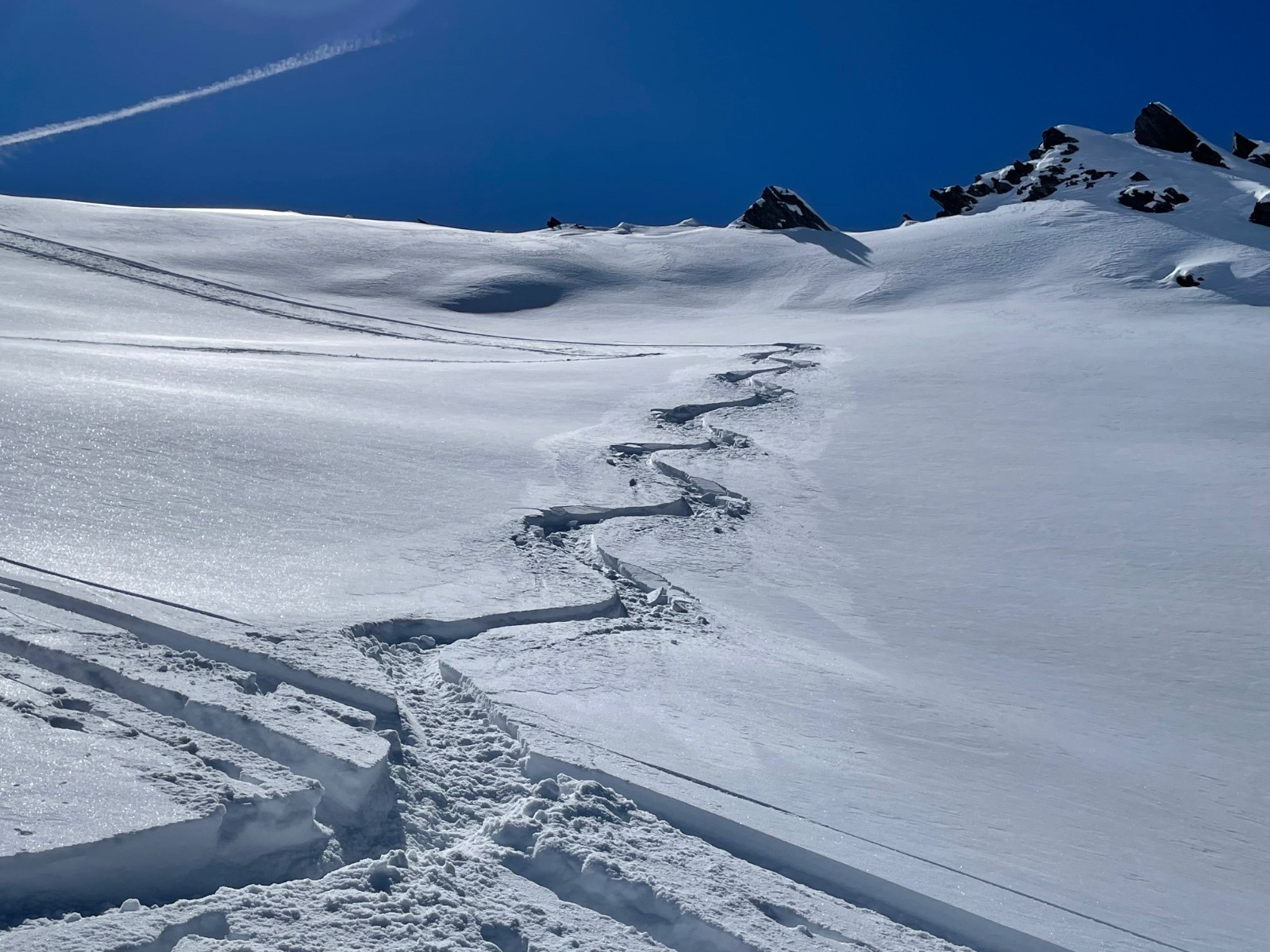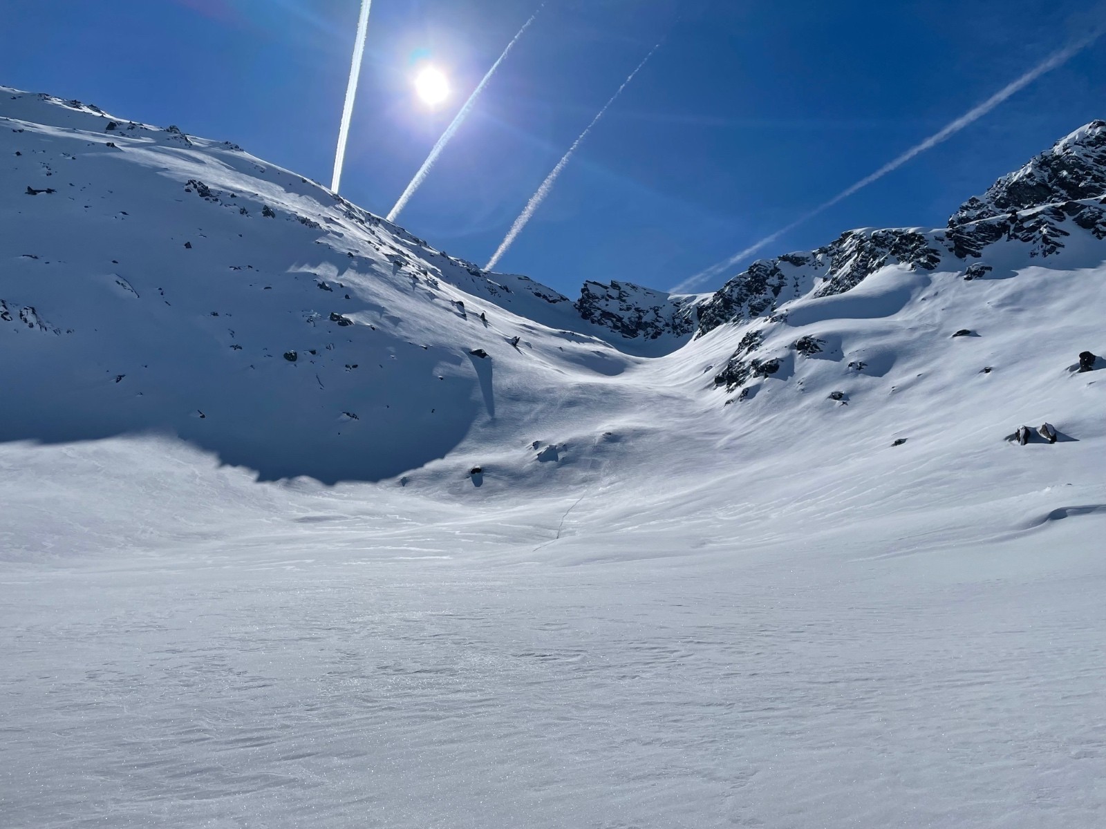 Bonne pioche et bonne idée d’aller dans ce secteur aujourd’hui !! La trace jusqu’au Refuge est faite de dimanche certainement, au refuge on bifurque à droite direction Becca Motta….trace à faire dans 20 à 40 de fraîche jusqu’en haut, on passe un petit ressaut pour atteindre les pentes qui accèdent à la crête