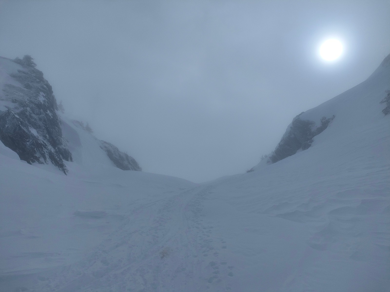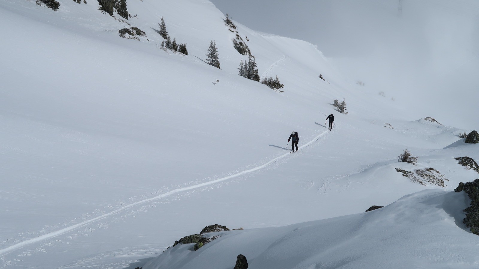 Nous enclenchons la dernière montée au Pas, la pente est bien raide sur une couche de neige assez respectueuse, les doutes commencent à poindre mais je reste plutôt confiant. Trop peut-être ?