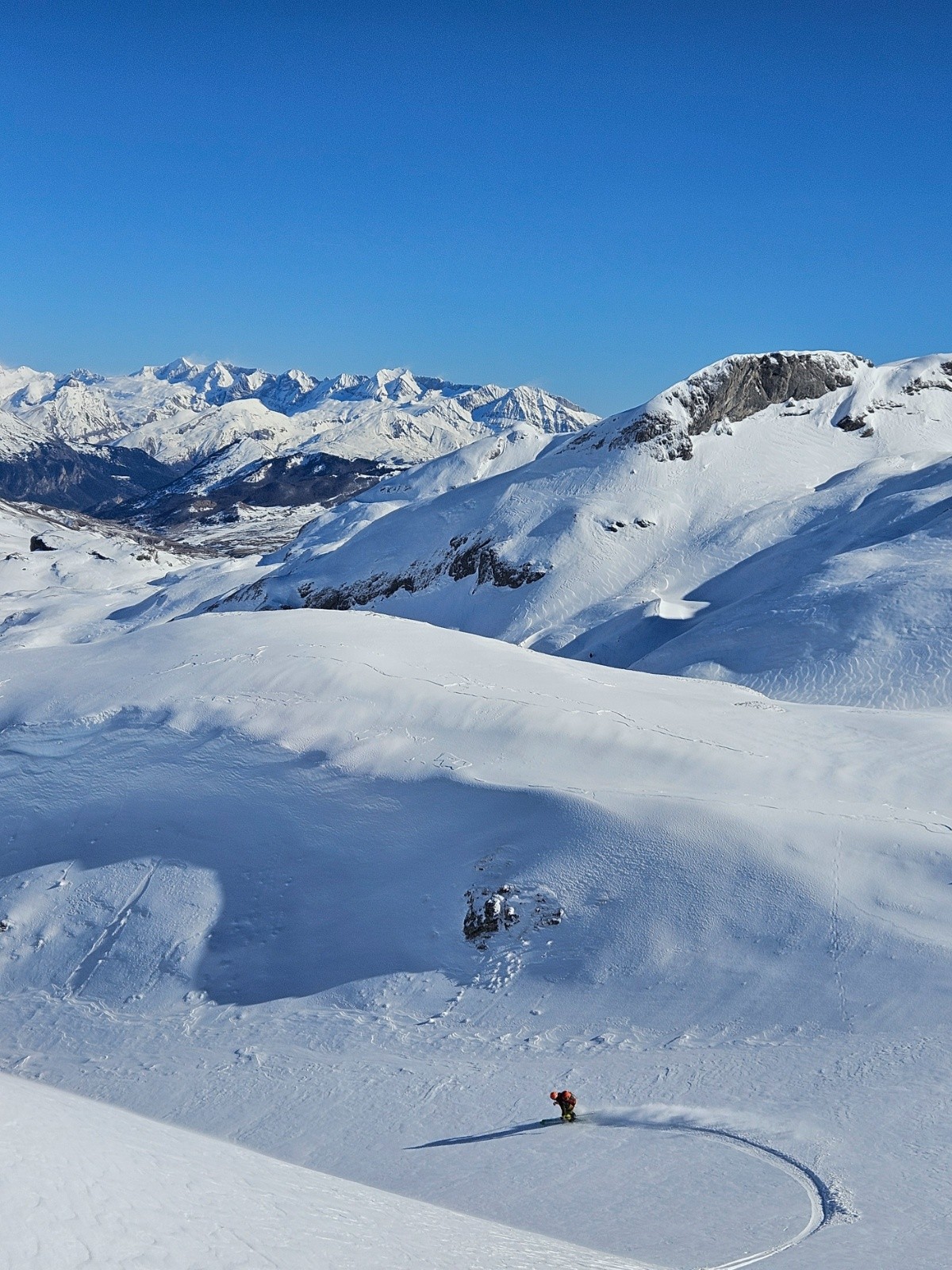 Conditions pour le ski : les bosses sont decapées et laissent la vieille neige jaune apparente, les creux sont en poudre présentant une très forte cohésion de fritage. Cela prend les skis à la descente, pas du grand ski mais ça reste correct.