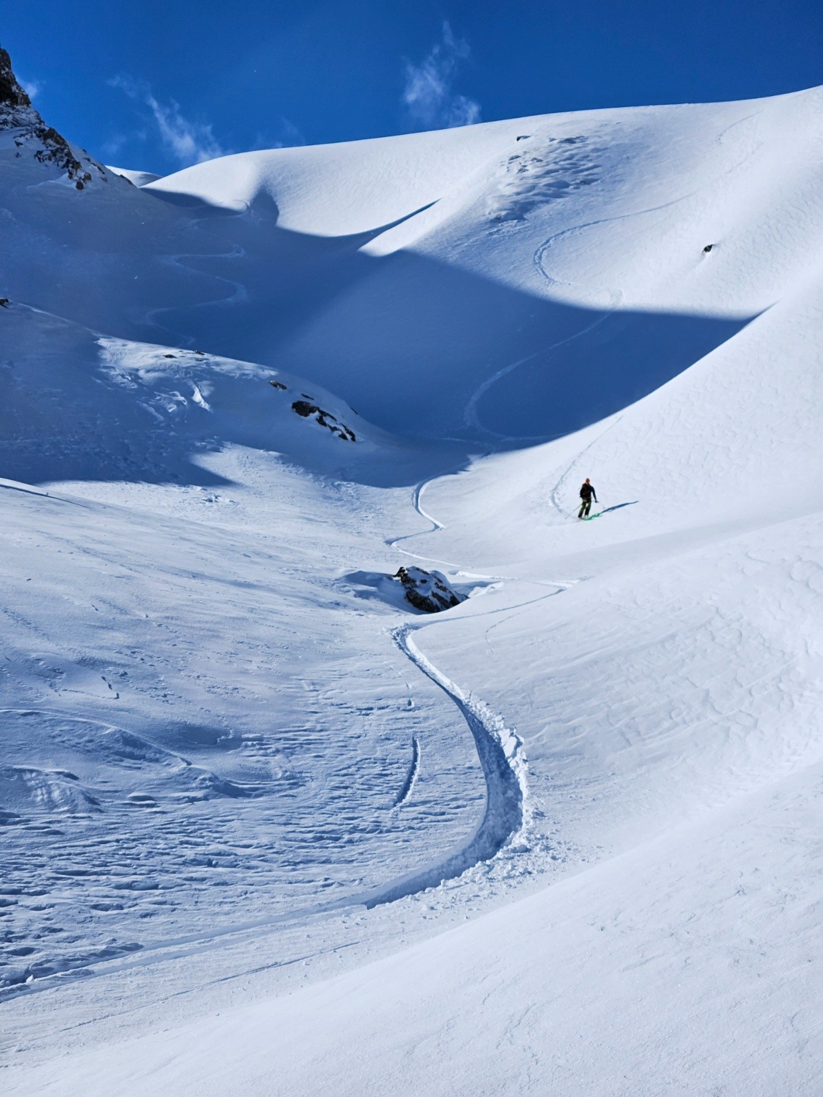 Conditions nivo et activité avalancheuse : beaucoup de transport de neige, on resté dans des pentes tranquilles.
