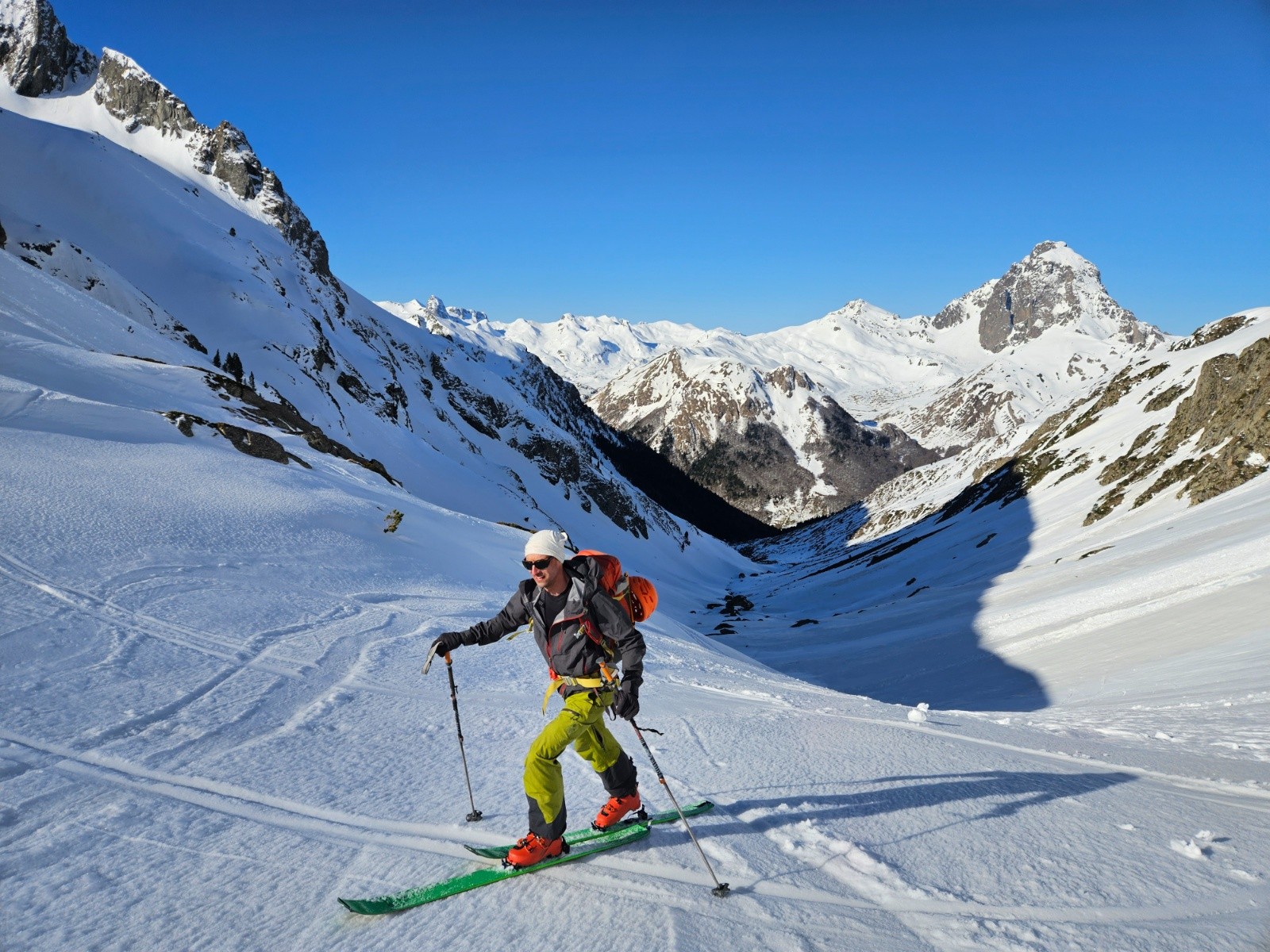 Le Bat de la Quèbe étant un four solaire, on espérait que la neige récente se soit déjà suffisamment tassée étant données les fortes températures de la veille. Au final il a manqué encore 1 ou 2 cycles de gel dégel pour pouvoir faire du bon ski.