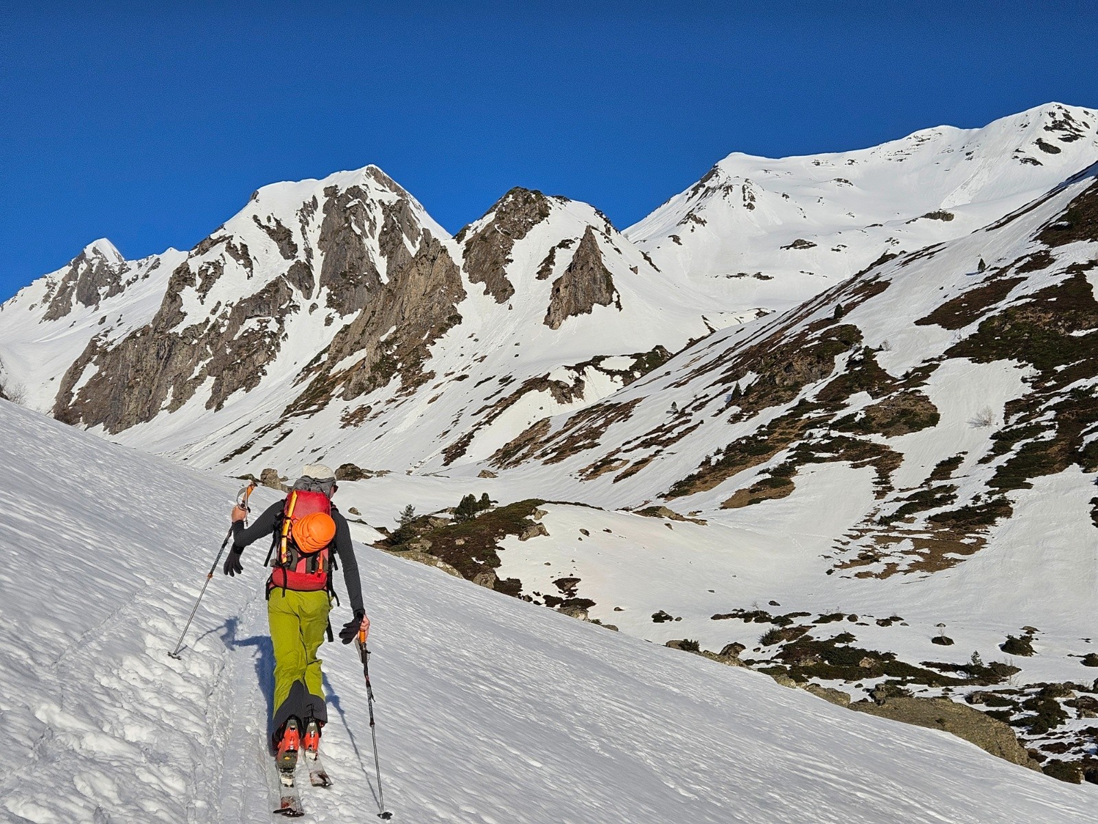 Depart 7h10 avec pour objectif d'aller skier le Grand Gabizos, depuis longtemps dans la "to ski list". On renonce avant d'attaquer la traversée dans les grandes pentes, Guillaume étant un peu malade.
