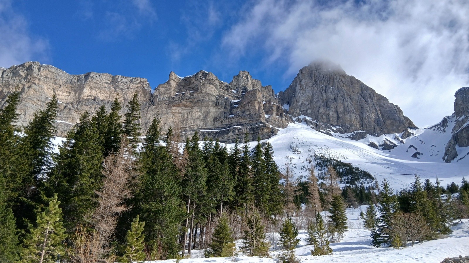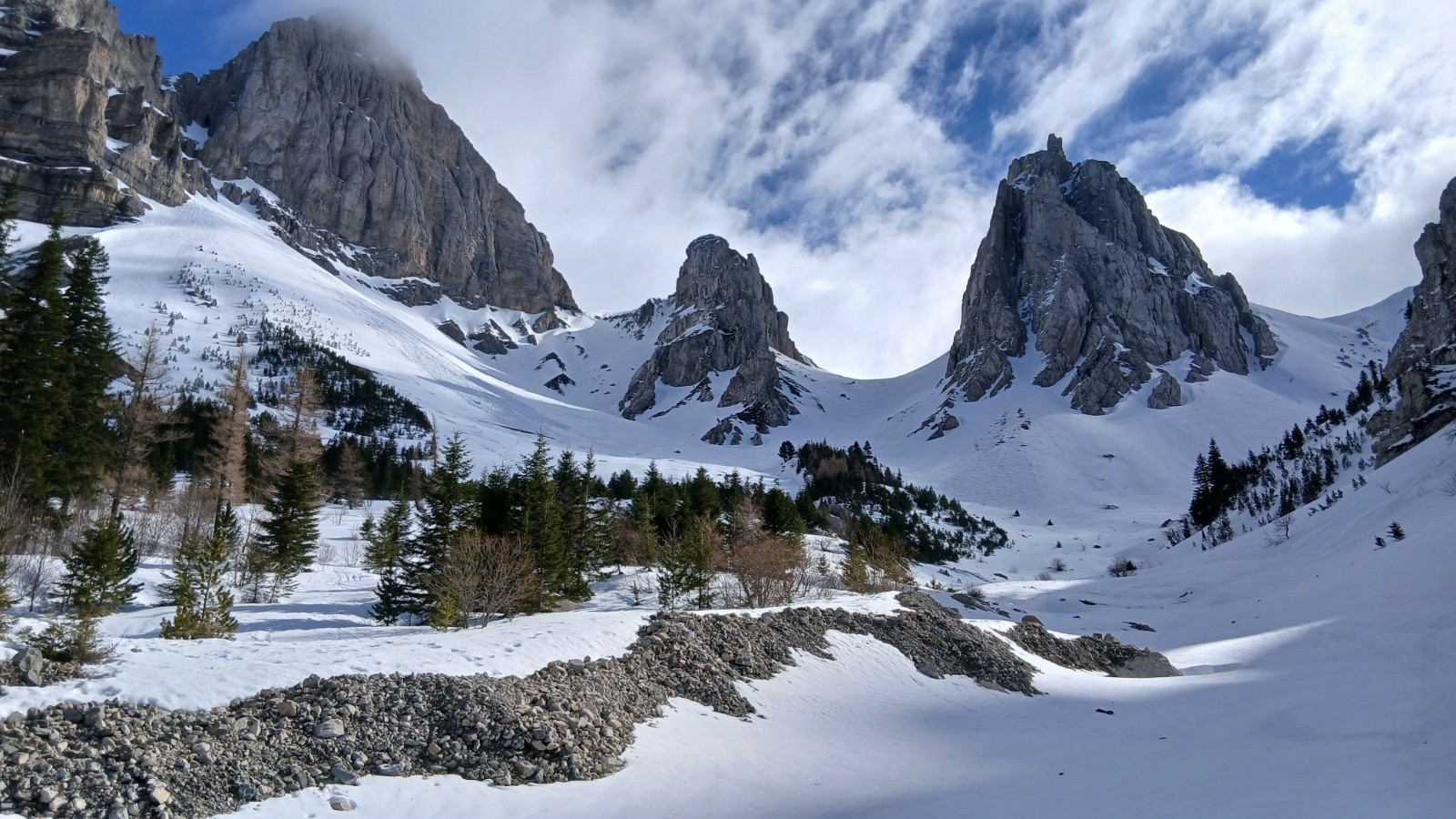 Conditions pour le ski : Bonnes, neige de printemps avec bon regel nocturne, un peu de poudreuse dans les plats ombragés, le final du col neige en cour de transformation, bien portante. on a mis les couteaux vers 1700m pour ne pas avoir à le faire dans le pentu, mais on aurait pu monter sans.
