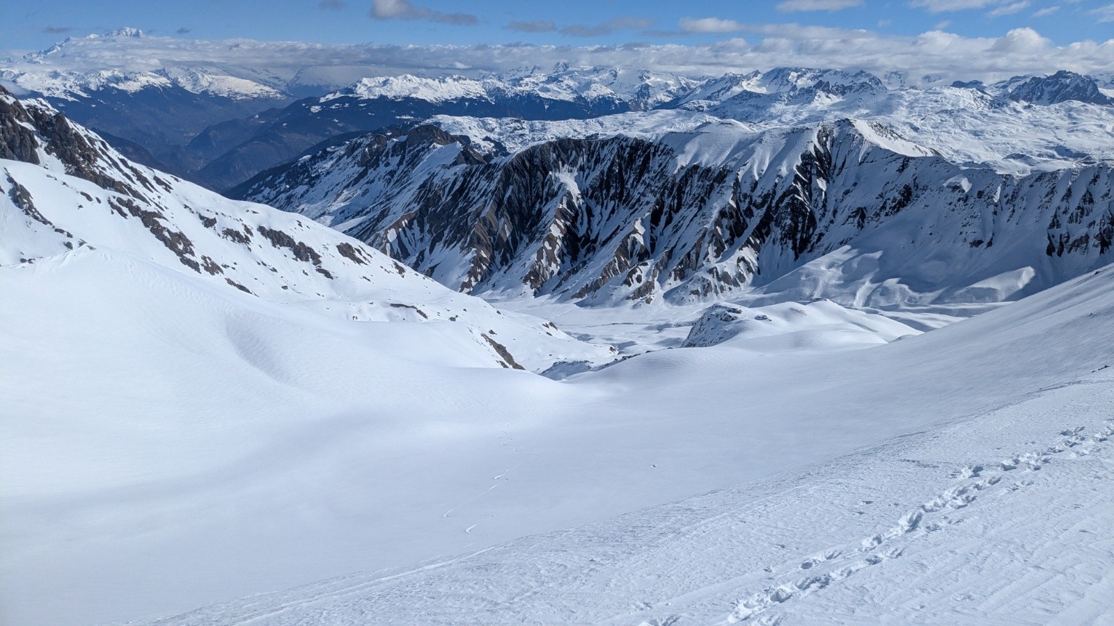 Visite de Valbuche pour le fiston, comme souvent c'est en poudre et vierge, 1 seule trace seulement. Il fait beau, pas de vent, la neige est bonne on décide de boucler par le col du Bonnet du Prêtre. On se fait rattraper par le brouillard, la montée se finit à tatons.... Jour blanc au sommet et croute, le combo gagnant nous attend pour le début de la descente🤢Puis c'est mieux sous 2300/2200m avec une neige dure portante. Toujours une belle boucle même si cette édition ne restera pas mémorable hormis le partage avec le fiston.