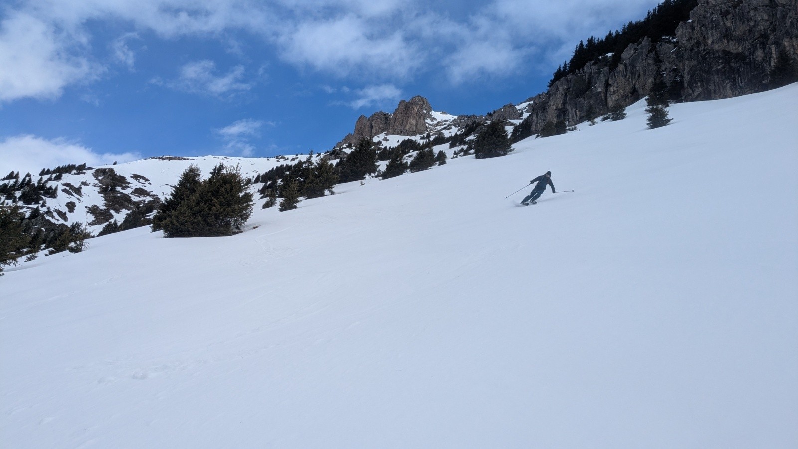 Conditions pour le ski : de tout, excellente pour en N dans Valbuche, ailleurs neige souvent croutée ou dure sur les bosses sous 2000, en S et W neige dure lisse avec bon grip