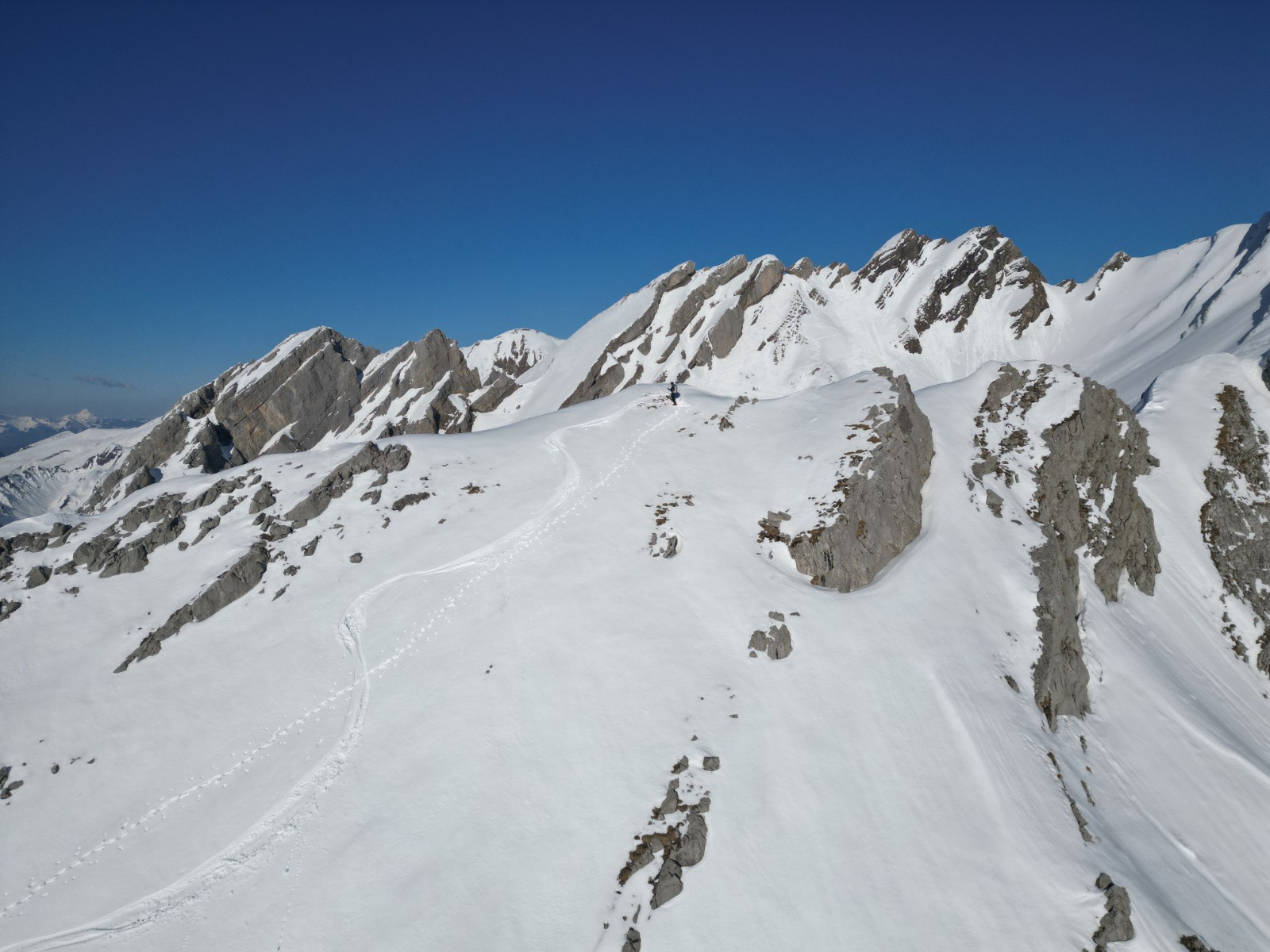 Récompense ultime par le panorama au sommet, la quiétude, l'absence de vent, et une descente exceptionnelle en remplissage et qualité de neige. Une superbe rencontre au détour d'un éperon, à voir dans la vidéo !