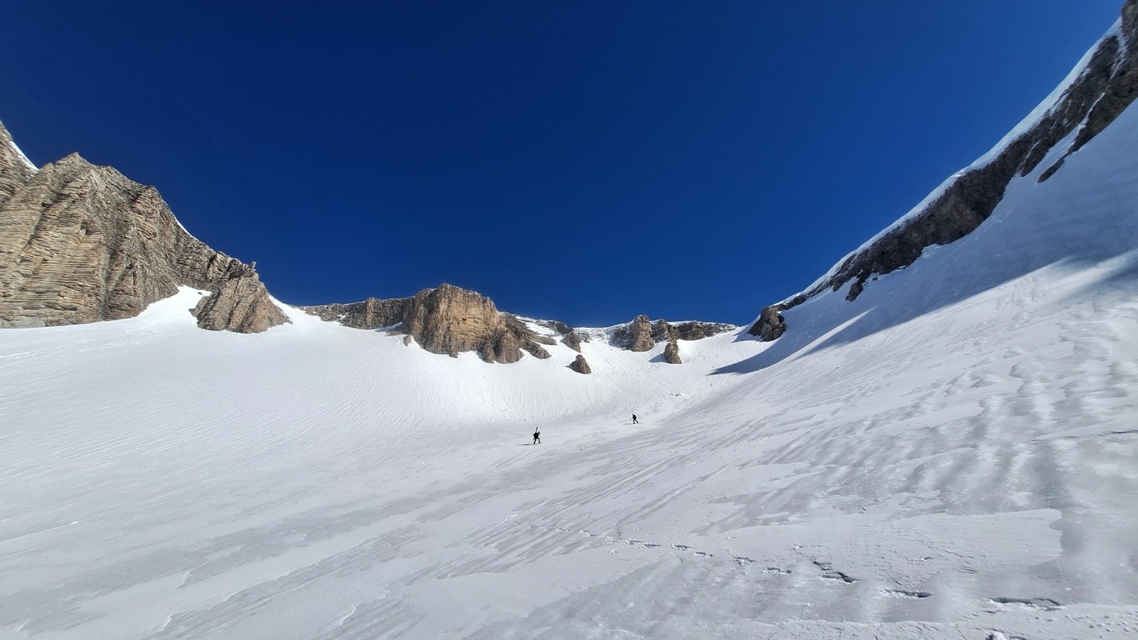Conditions pour le ski : bonnes à très bonnes : vallon pierra en neige un peu dure avec une fine couche tombée dans la nuit.
