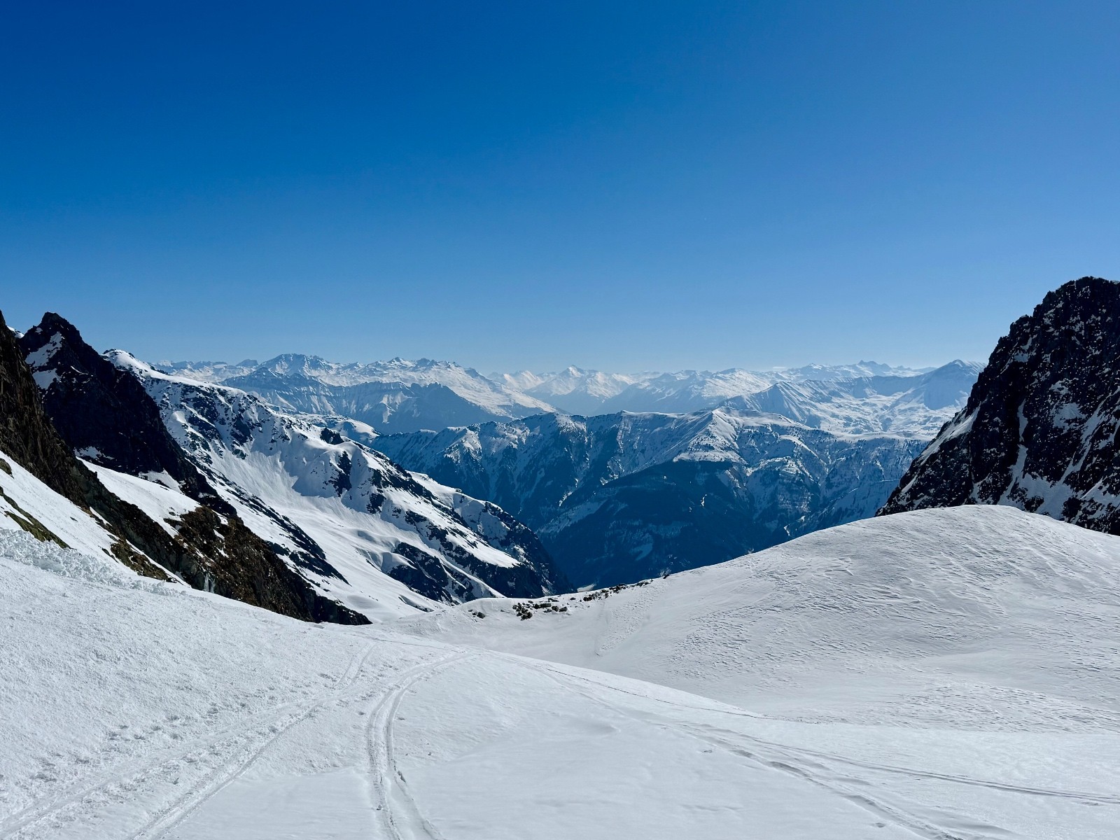 Conditions pour le ski : Le manteau neigeux est en cours de transformation : ce n'est pas encore tout à fait ça (fond mou), mais ce n'est pas si mal.