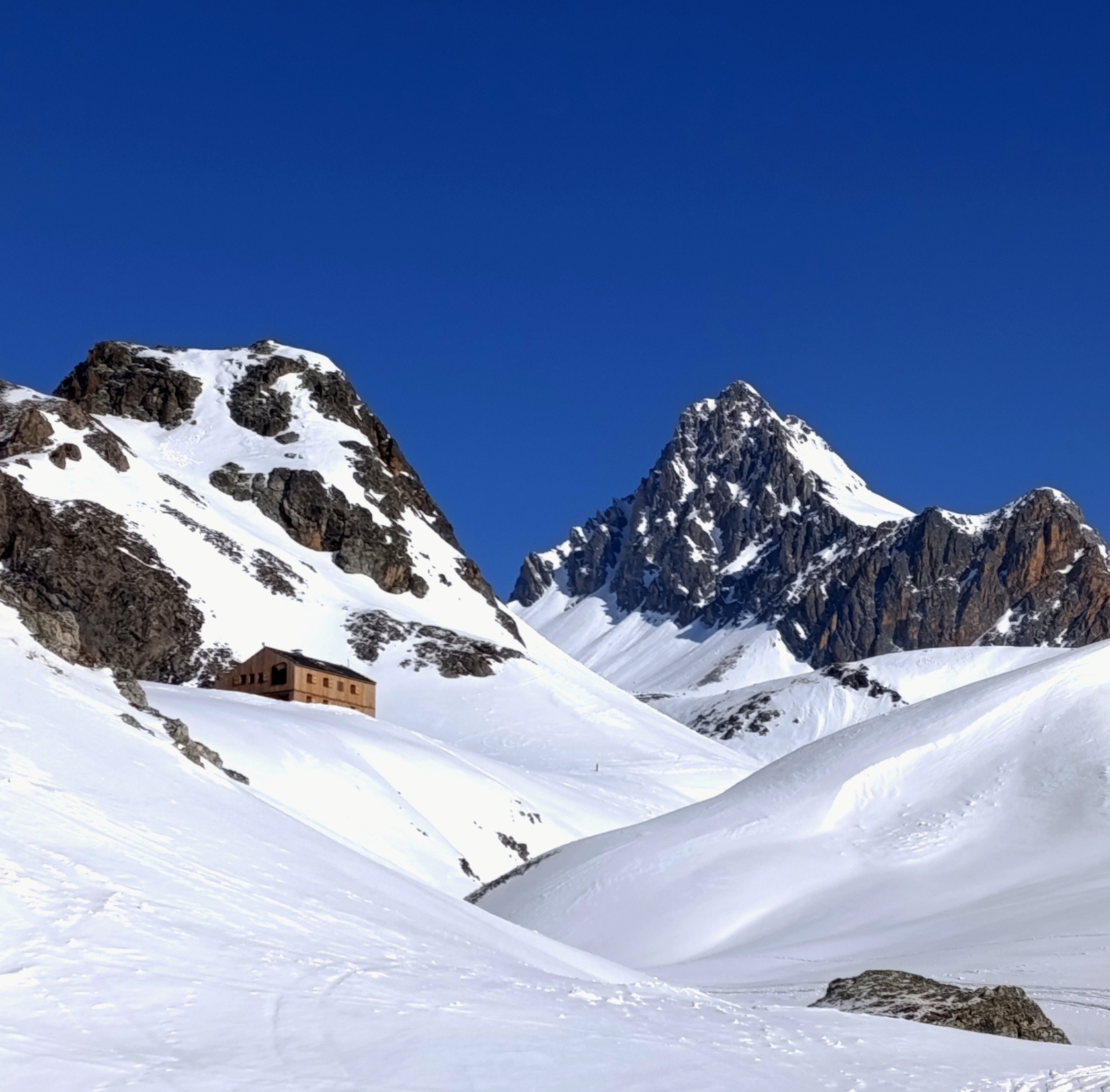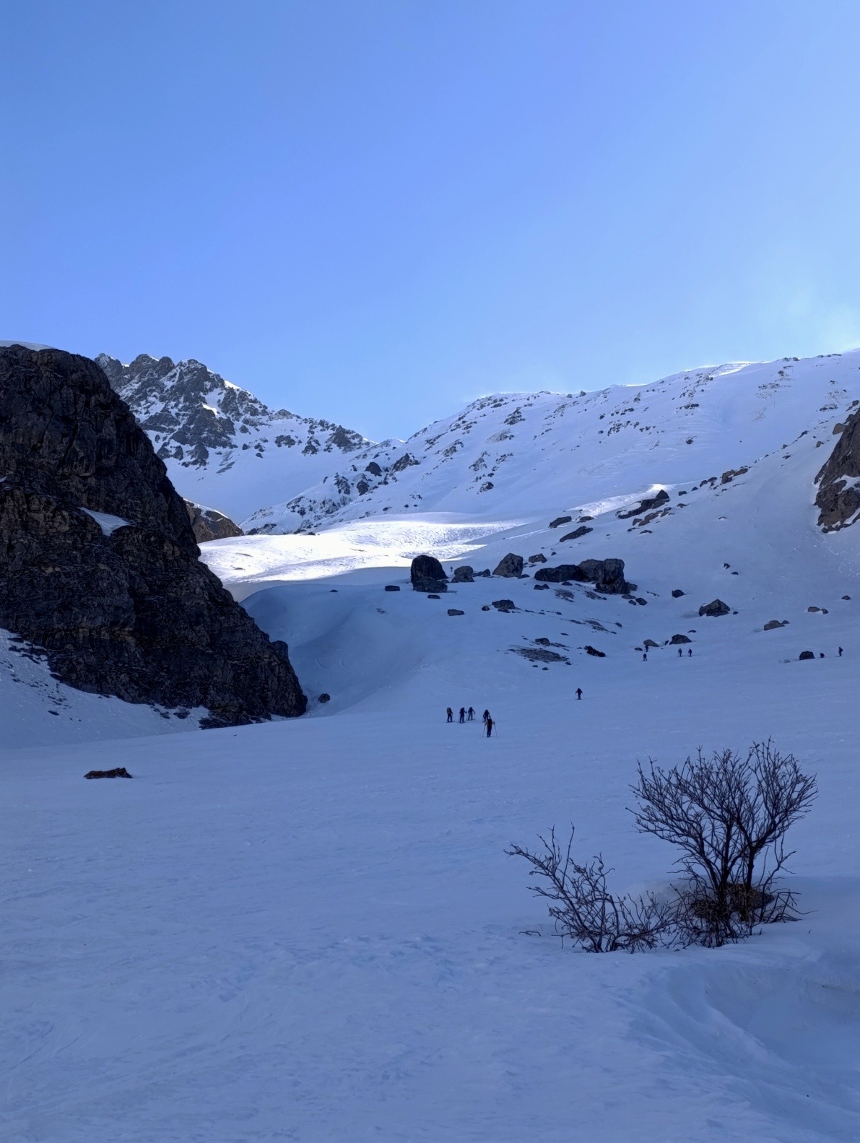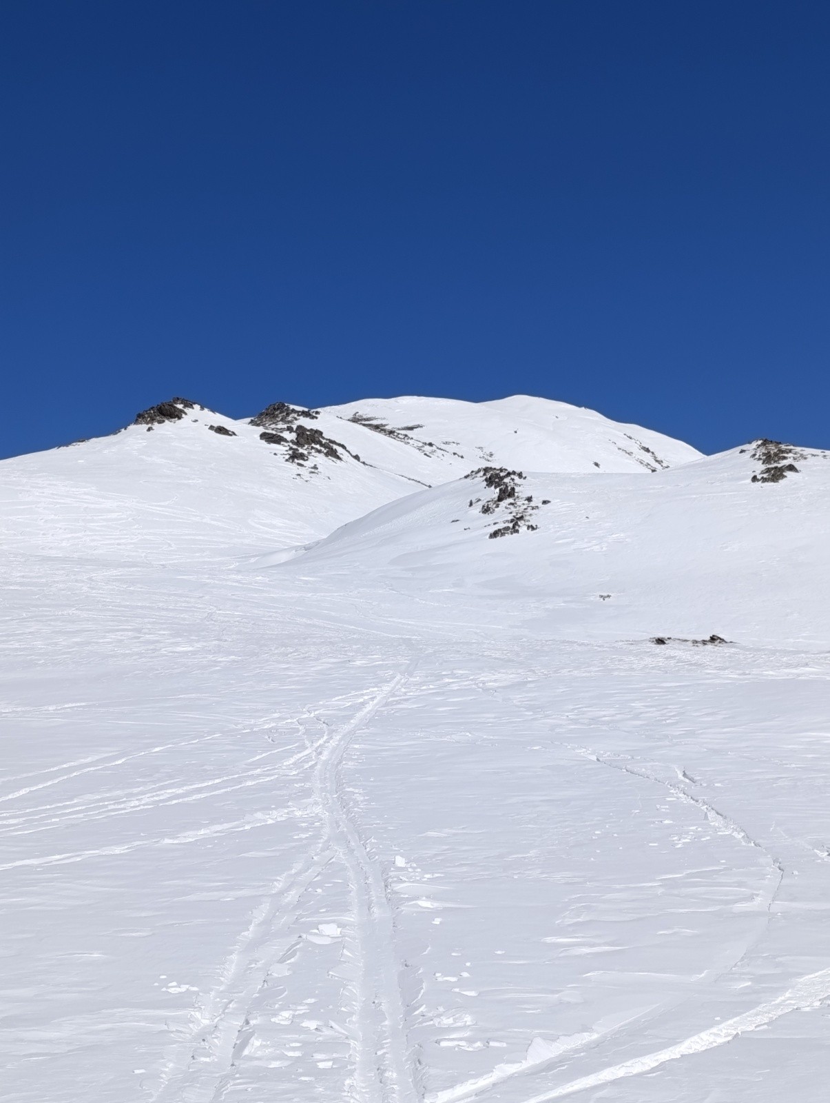 Conditions pour le ski : Bonnes du sommet à 2 400 m : poudre en cours de transformation ou transformée, moyenne de 2 400 à 2 000 m : neige gelée, Bonnes de 2 000 m au parking : transformée