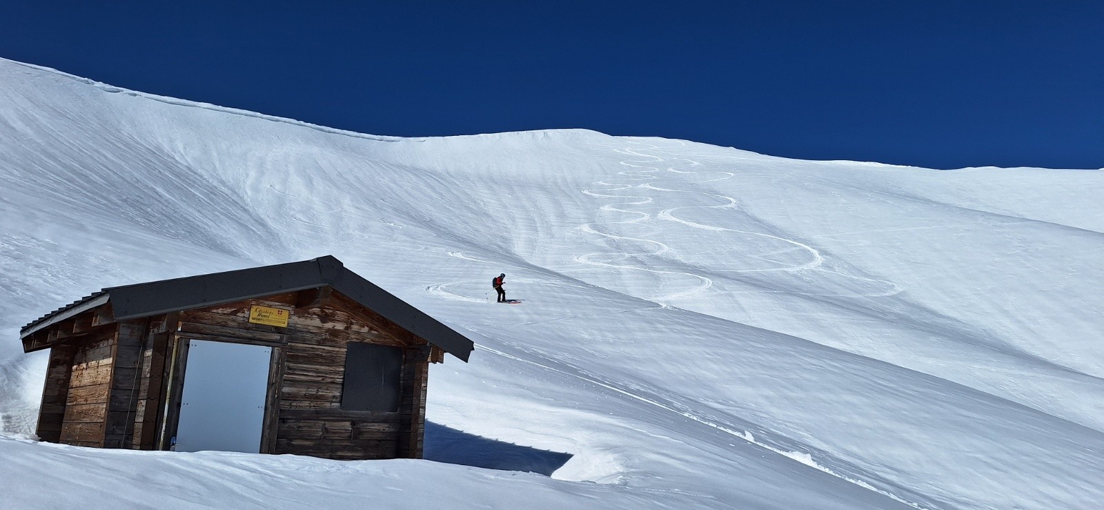 Nous faisons une bonne pause picnic au chalet de valbuche apres s'être déjà régalés de poudreuse.