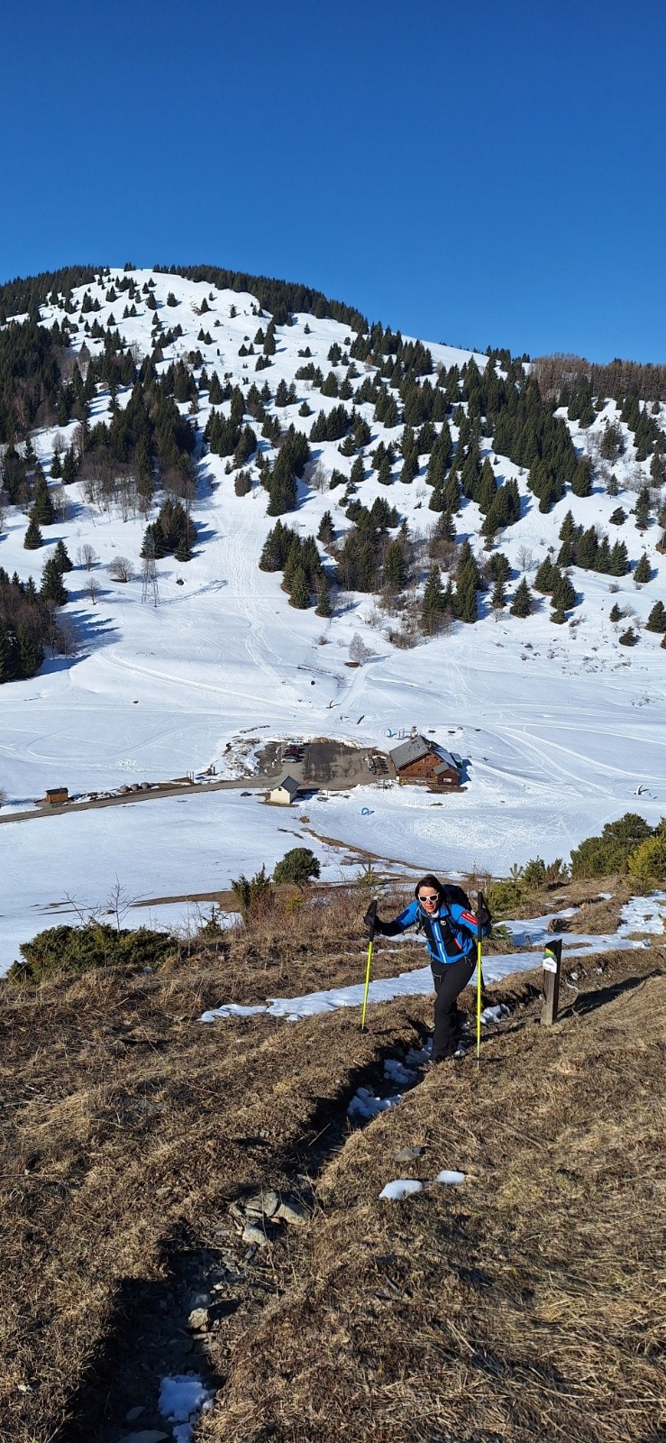 Petit passage skis au sac avant l'arrivée à la Pointe de la Pallaz.