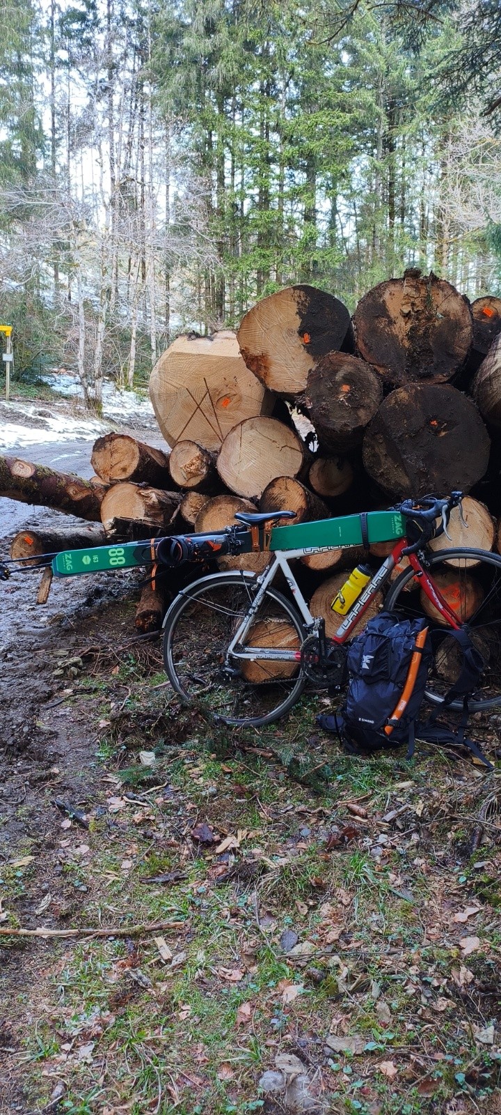 Profitant des belles journées qui ont un peu stabilisé la dernière chute, opération couloir nord du pic couttet avec une approche train - vélo - ski . On sort les skis -4cm avec un patin quasiment de collant pipette (88) pour un peu plus d'aisance sur 90% de cette journée.