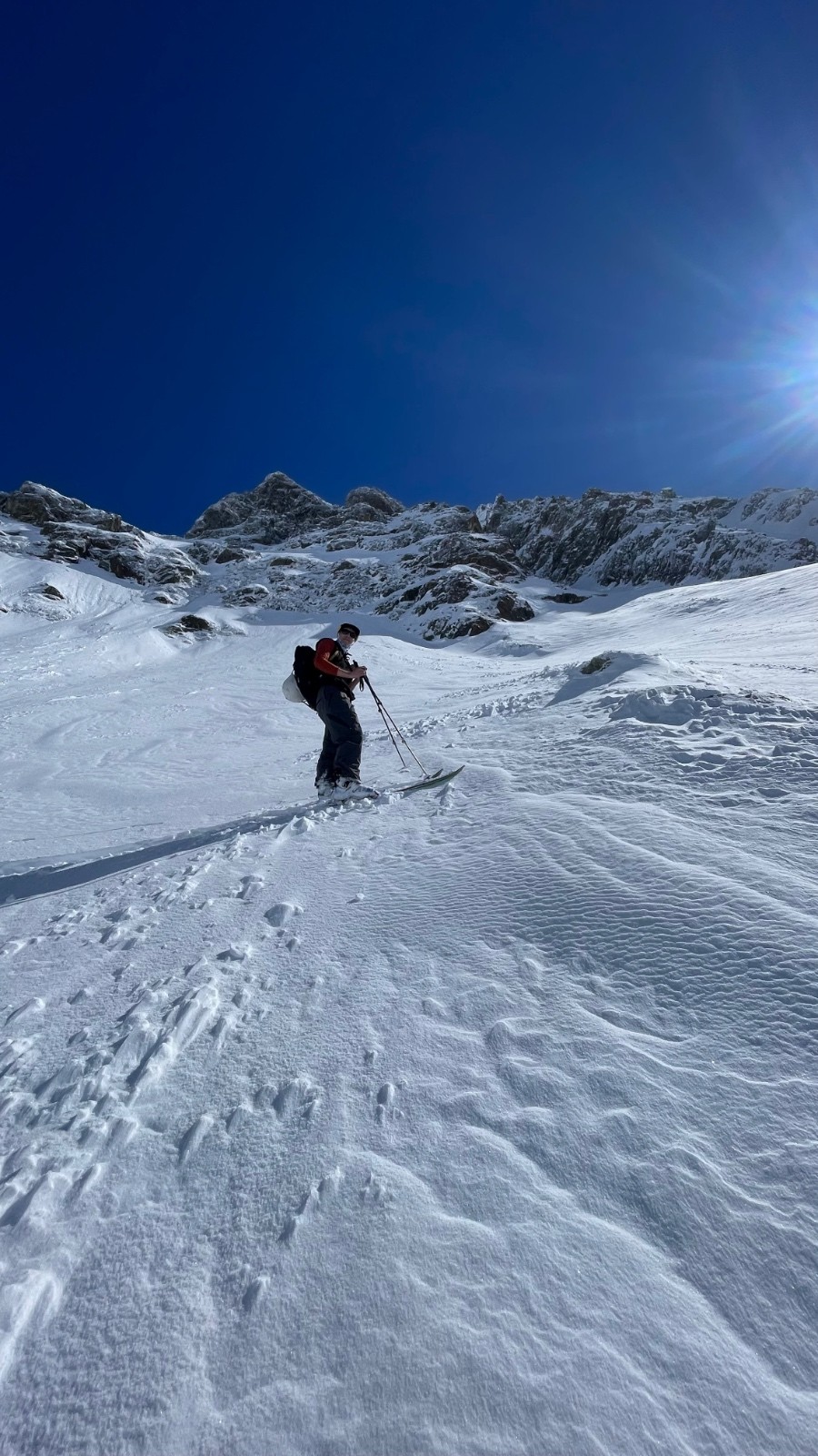 Conditions nivo et activité avalancheuse : ca plaque avec de la cohésion mais sans propagation. Le vent a bien travaillé et la neige est crouté mais c'est plutot bien skiable