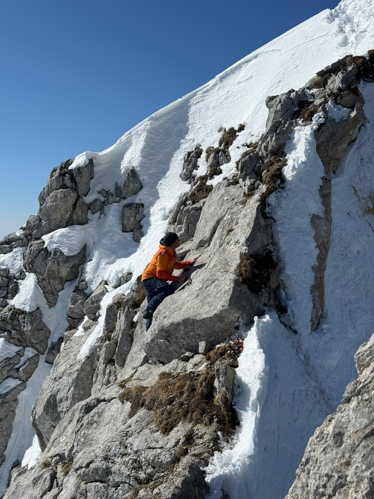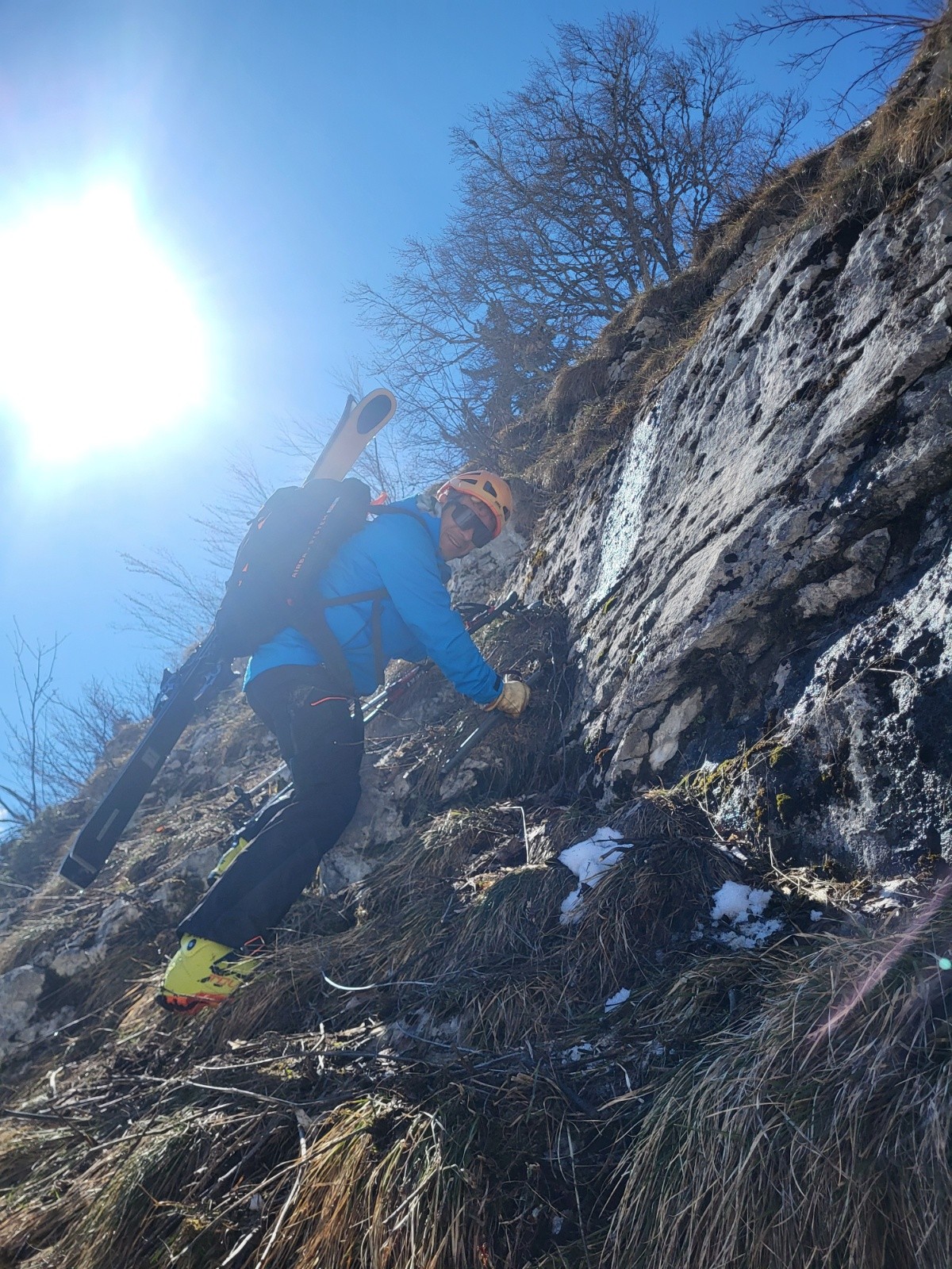 On a fait l'AR au sommet. Un pas gazeux en 3 pour accéder à la pente finale (suite à l'éboulement récent). Une corde peut aider.