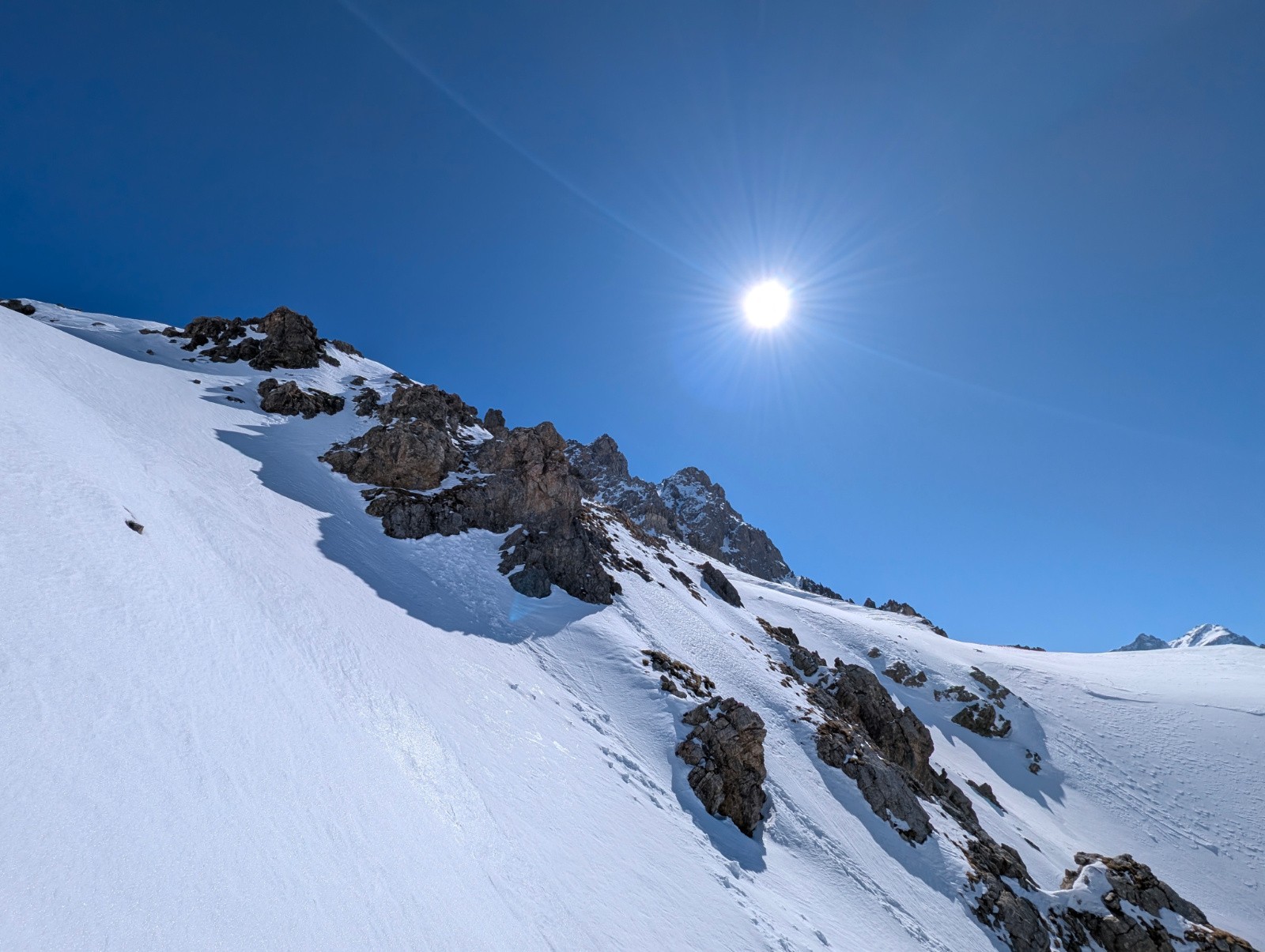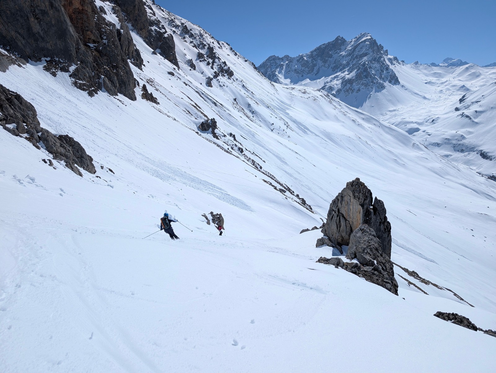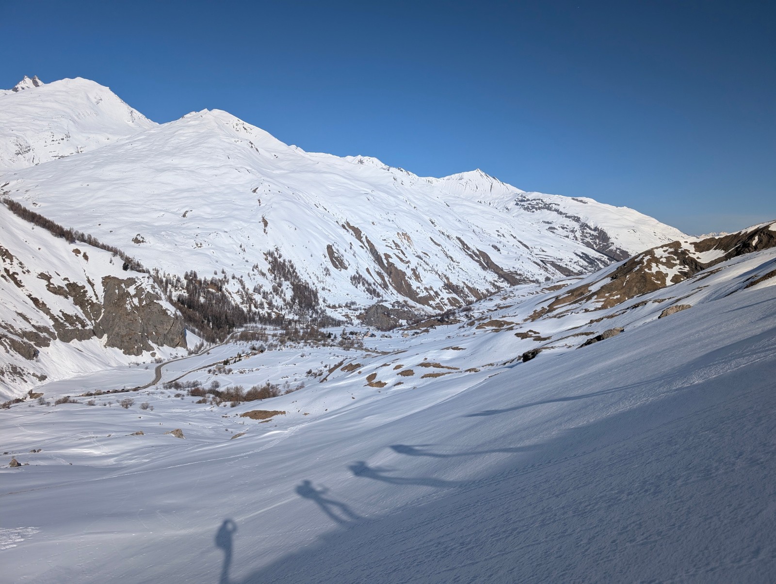 Descente dans une neige croûtée dans le plan des moutons puis bonne moquette à poils ras dessous dans les parties bien exposées au soleil.