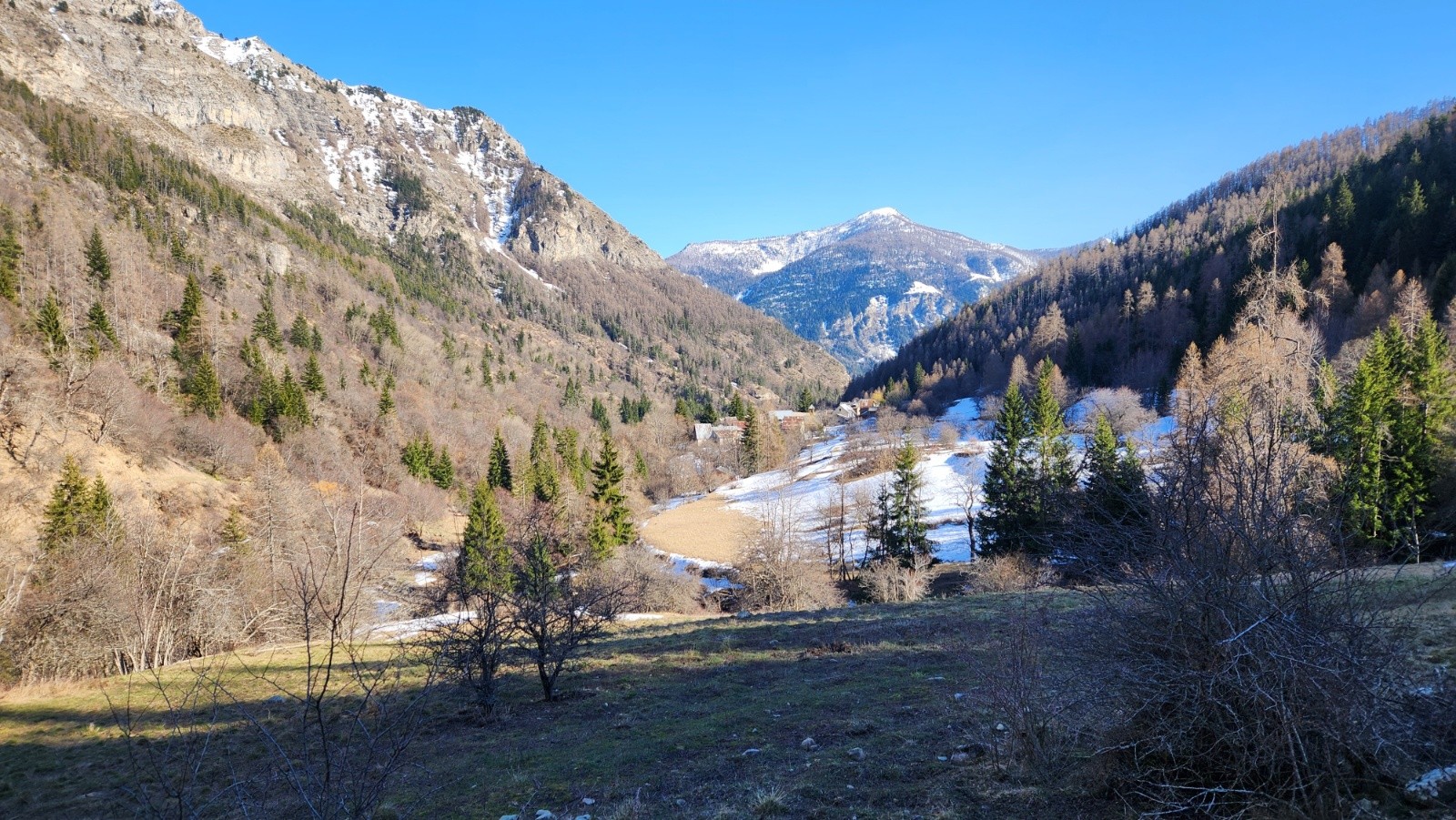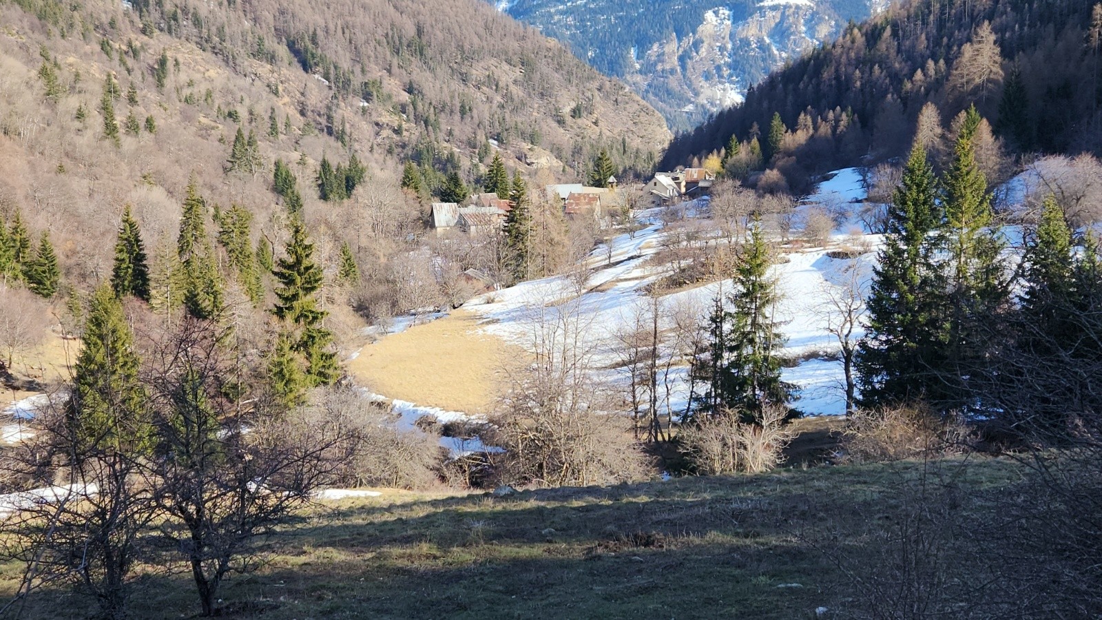 Gros enneigement au dessus de 1650m, limite au niveau du village de chasse, départ / retour ski au pied mais pas pour longtemps, 3 déchaussages au retour 🤩