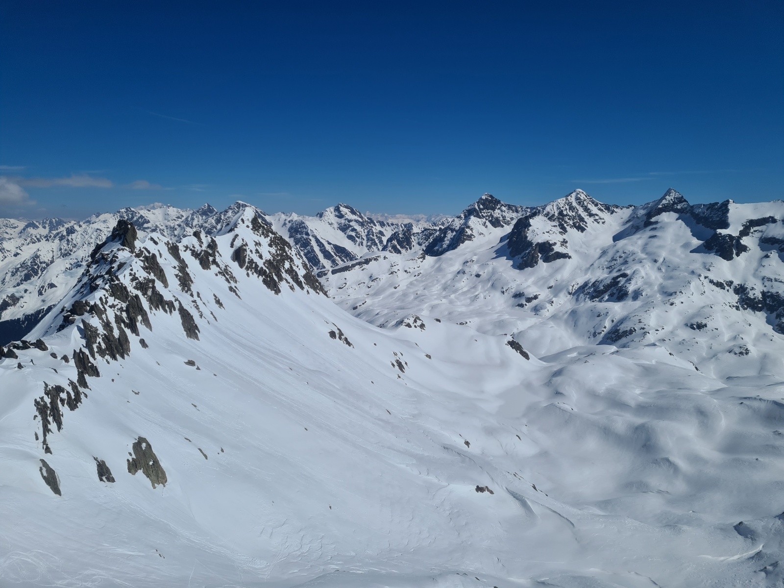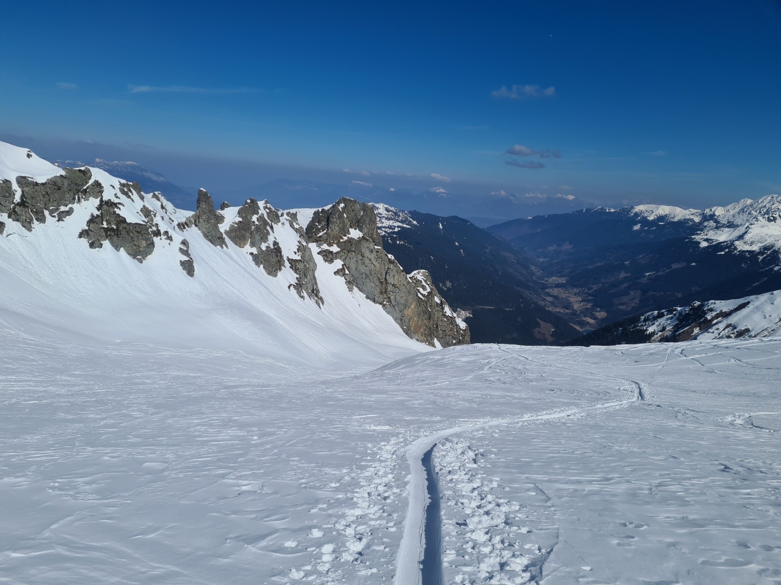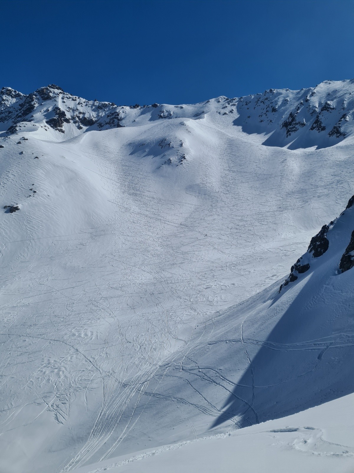 Repeautage pour passer le col de l'Evêque (petit environ 60d+) et sortie du côté du vallon du Pra (de très bons passages tout poudre qui donnent le sourire👌)