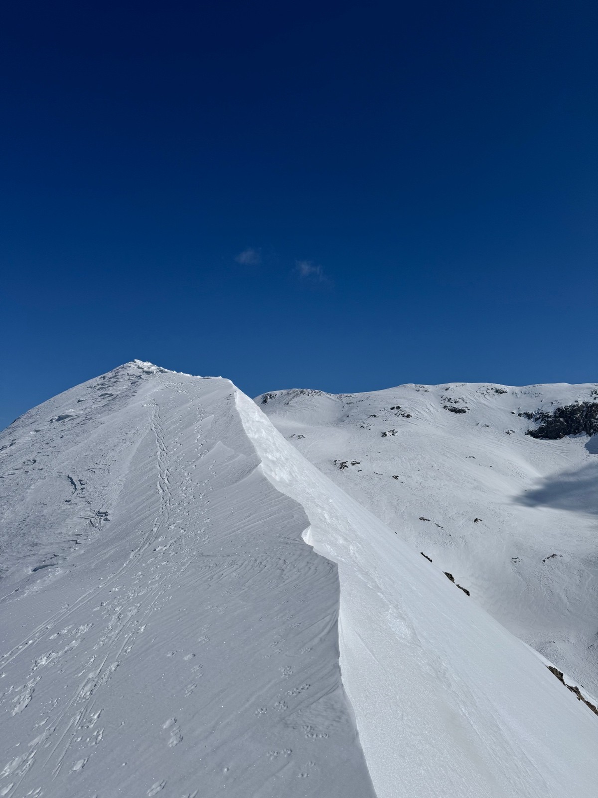 Crêtes très soufflée, mais ça passe tout le long en skis et peaux