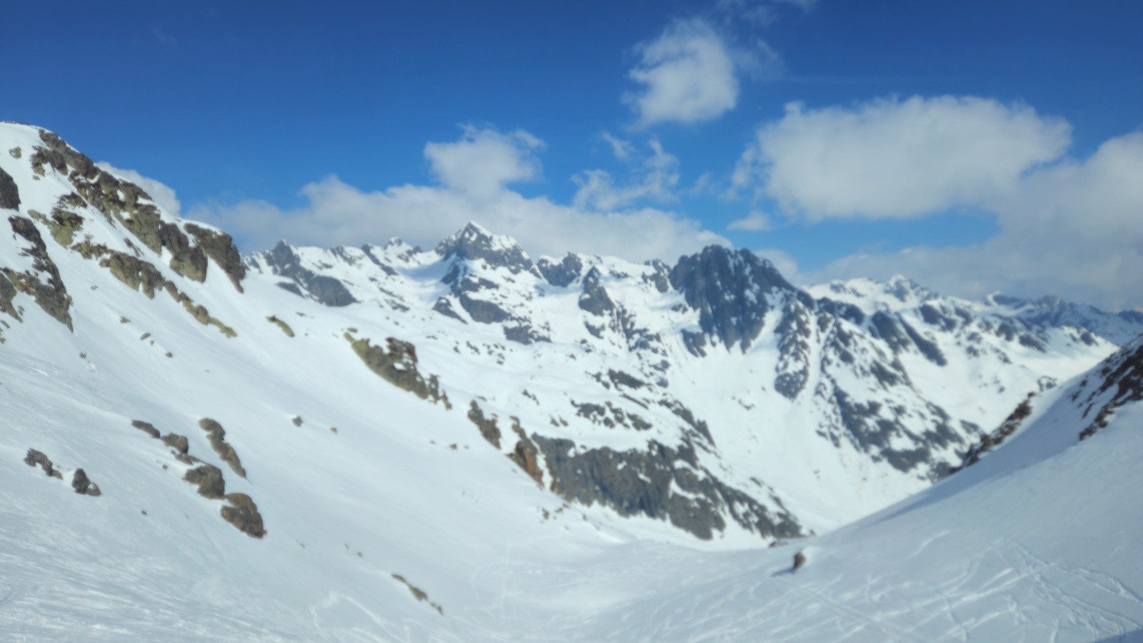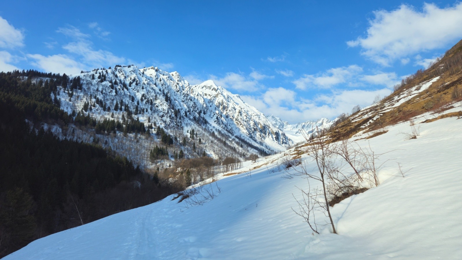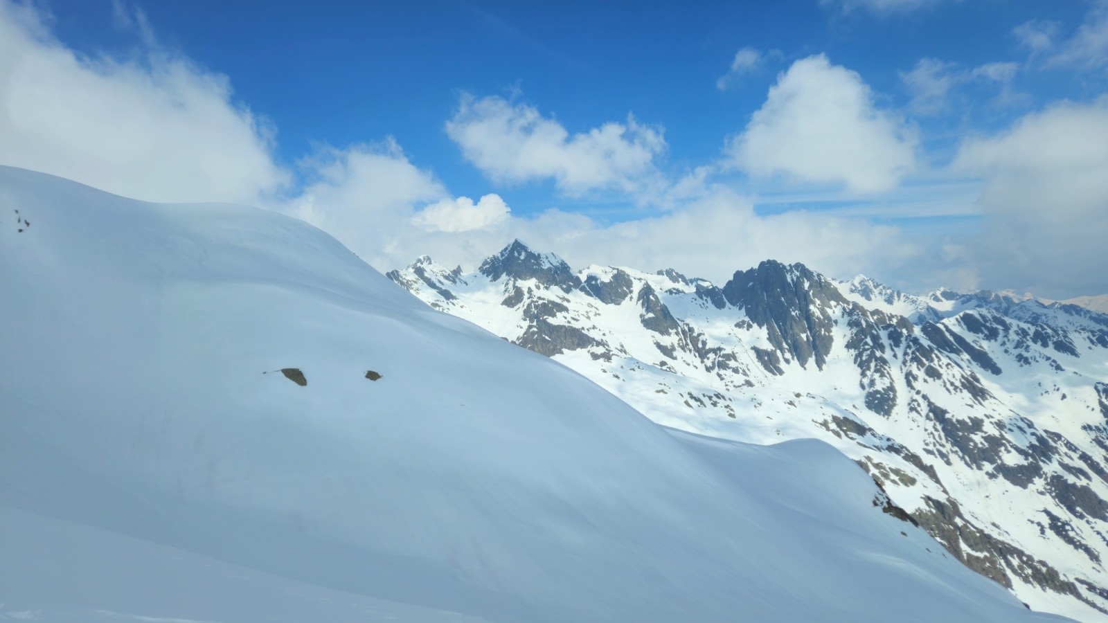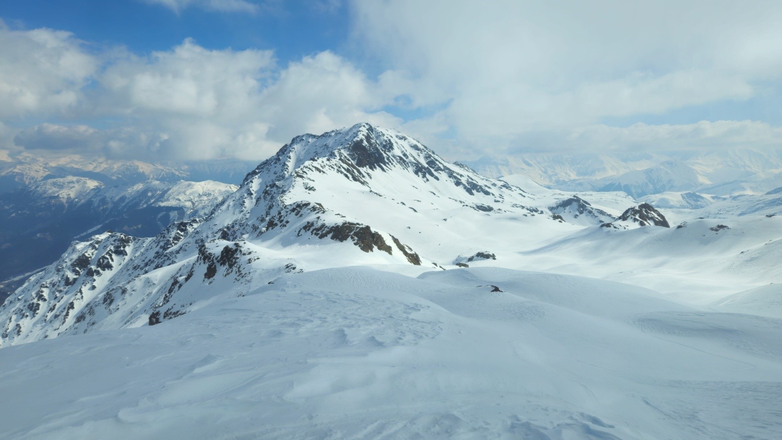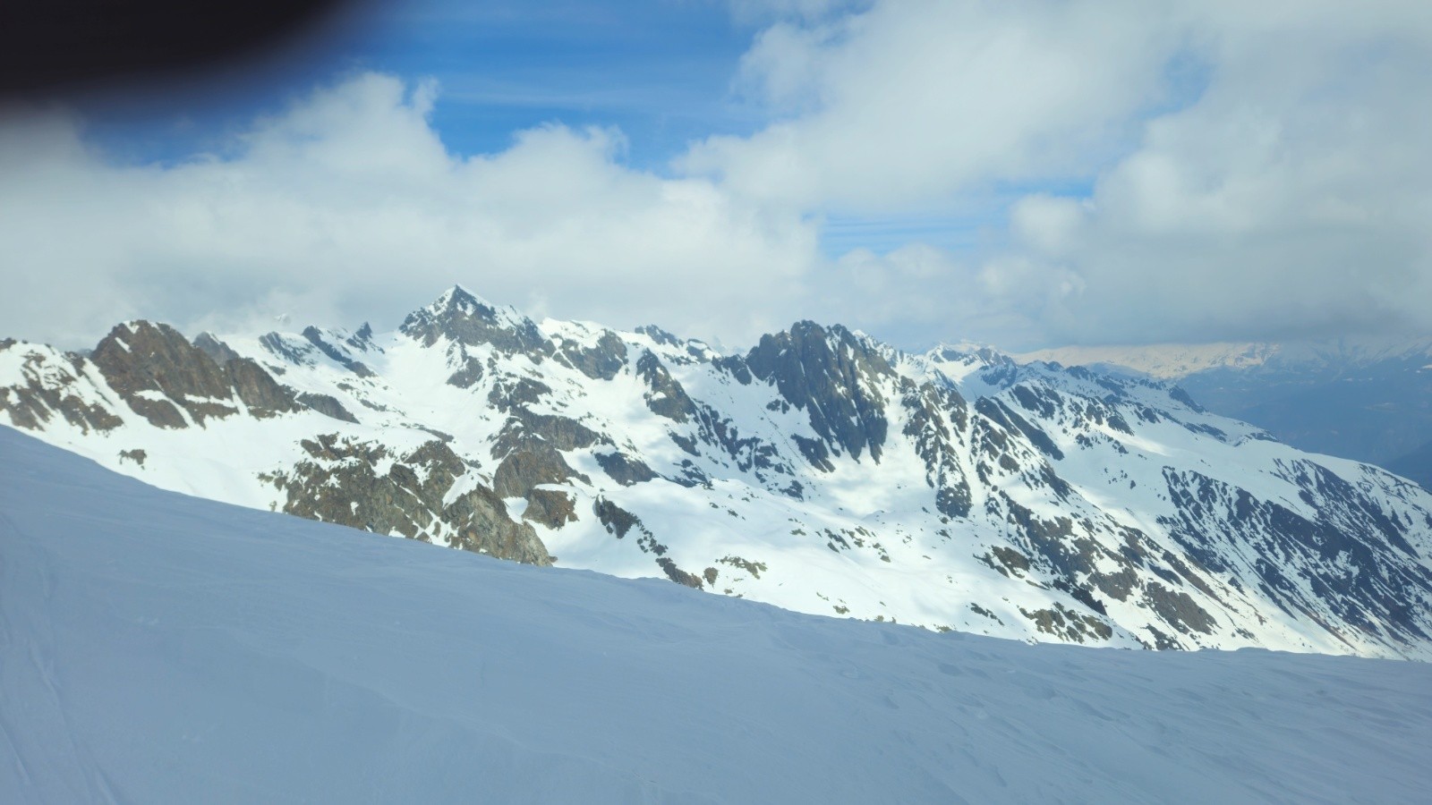 Conditions pour le ski : croutée abo en Est dans bec d'Arguille, vieille poudre légèrement croutée ou humide suivant les sections mais bien meilleure dans le col de Sambuis, border très bon