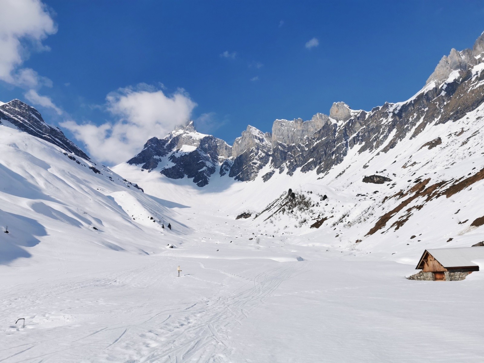 Envie de monter à la Forclaz cette semaine. La neige est à peu près à la barrière verte à présent. Ça monte bien de là. De la neige jusqu'aux toits des chalets à Doran. La montée au col se fait bien, la descente délicieuse sur cette moquette. Un regal
