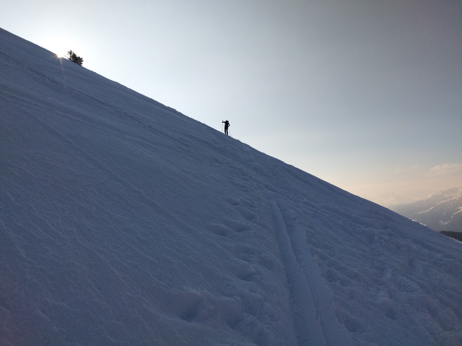 L'idée initiale était de trouver un couloir nord pour chercher la poudre, comme tout le monde... Mais dans un coin de ma tête le Grand Coin me faisait coin-coin... Et puis la bascule sur Valbuche, quoique un peu Est, pouvait réserver une bonne surprise... Bingo! De Cret Lognan, nous nous envolons presque d'une seule traite jusqu'aux chalets de Valbuche, 700m plus bas... A peine quelques passages un peu chauffés ou croûtés mais cela reste une des meilleures de la saison... Tant et si bien qu'en remontant au Grand Coin l'affaire est résolue : nous rebasculons sur Valbuche pour 250m et 1h de rab' avec le même bonheur. Au troisième passage, il est déjà 14h30 et le soleil joue à cache-cache (il est resté au coin), il y a même quelques flocons. C'est quand même bien transfo pour la descente par Bellecombe et les Chanaisons. Fin du jeu à 1550m dans le lit du ruisseau de la Panaise... Et encore 200m de D+ à remonter à pattes pour retrouver la voiture 🥵
