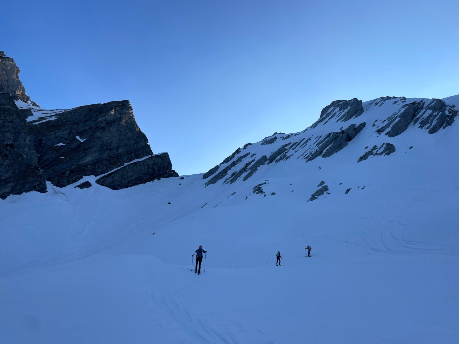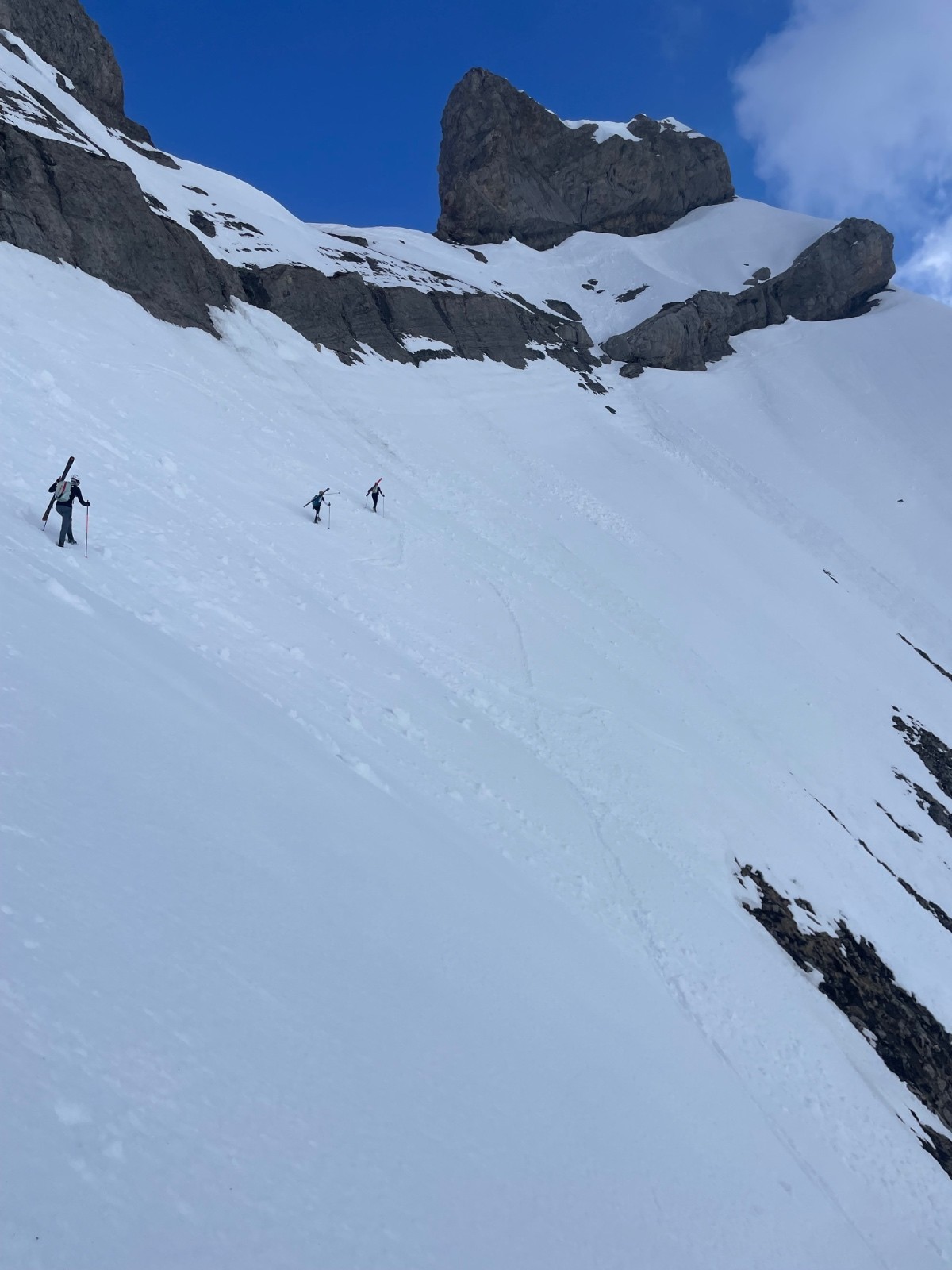 Etale : montée TB, un passage en crampons. Combaz TB, poudre et traffole, un grosse accu en haut et en bas.