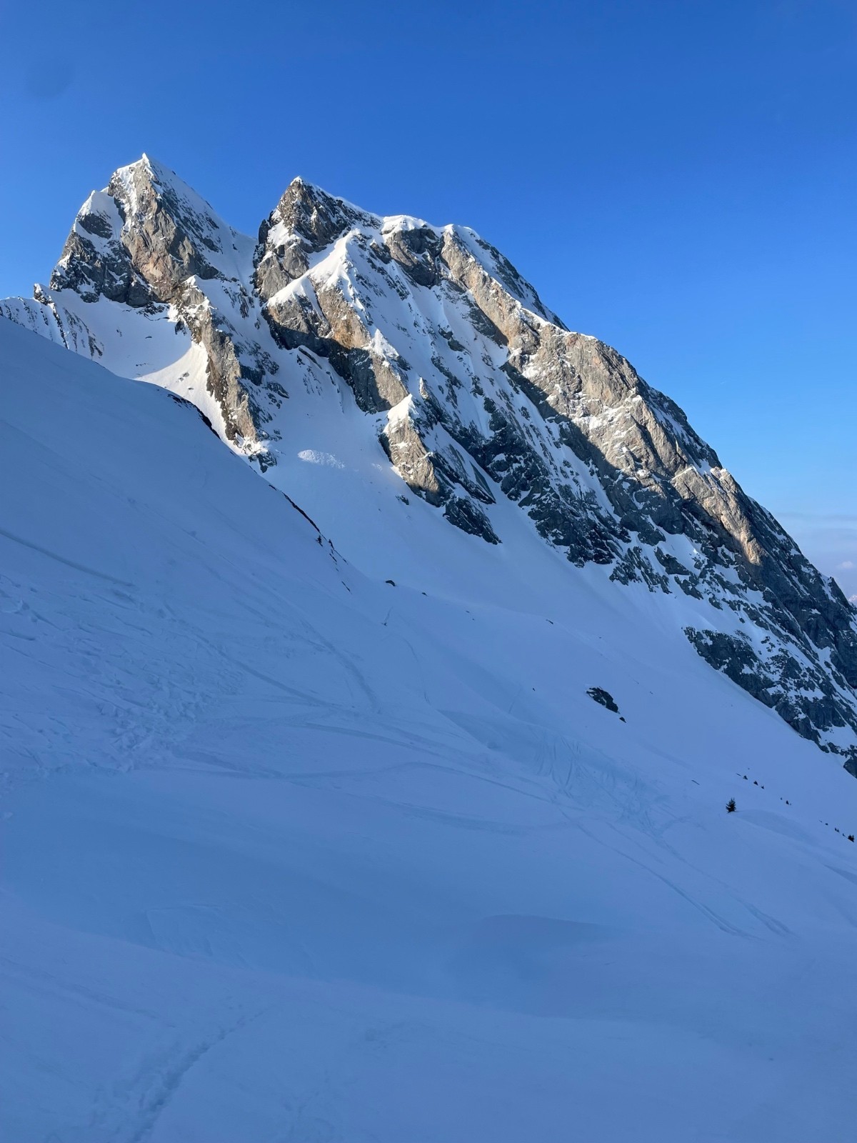 PP : montée ok, raide et gelée en haut, piolet rassurant. Bibollet bonne neige froide, qq traces.
