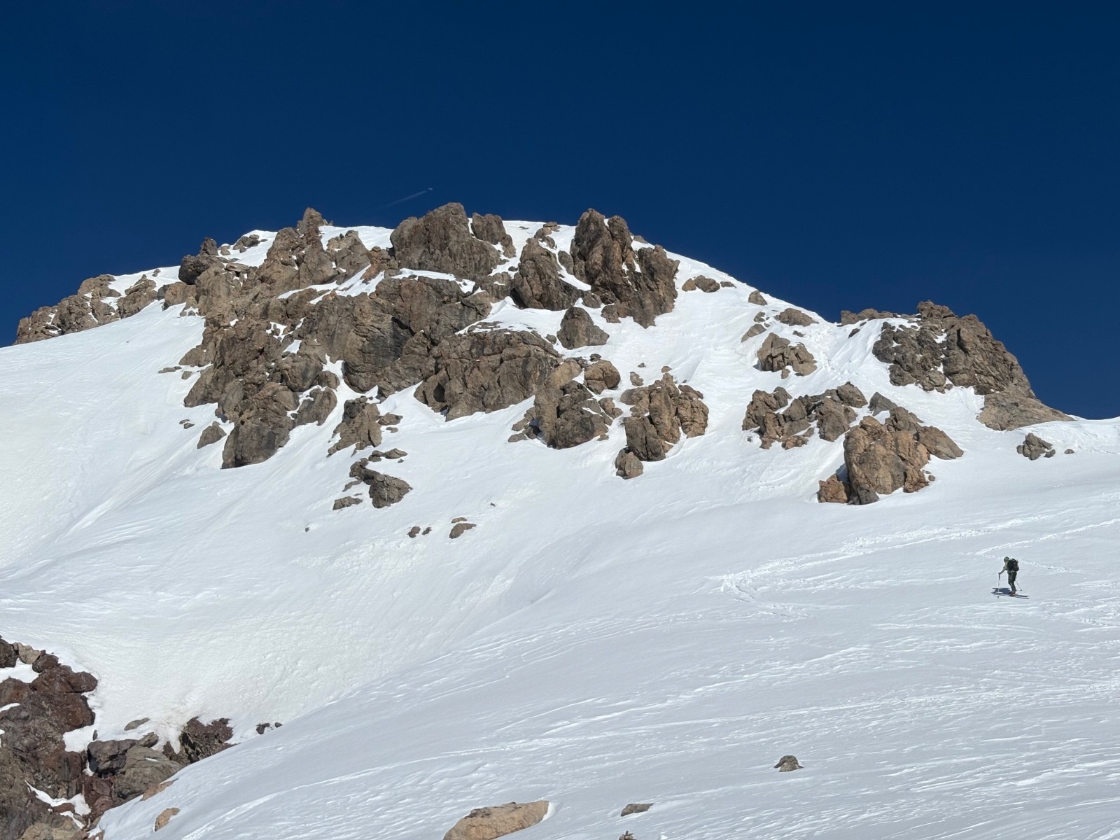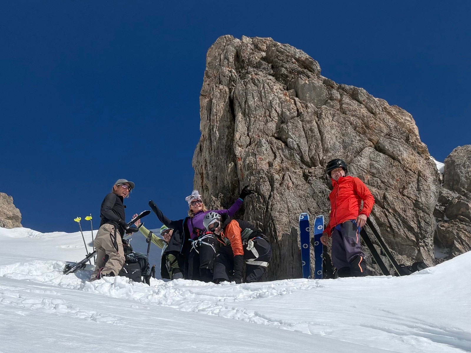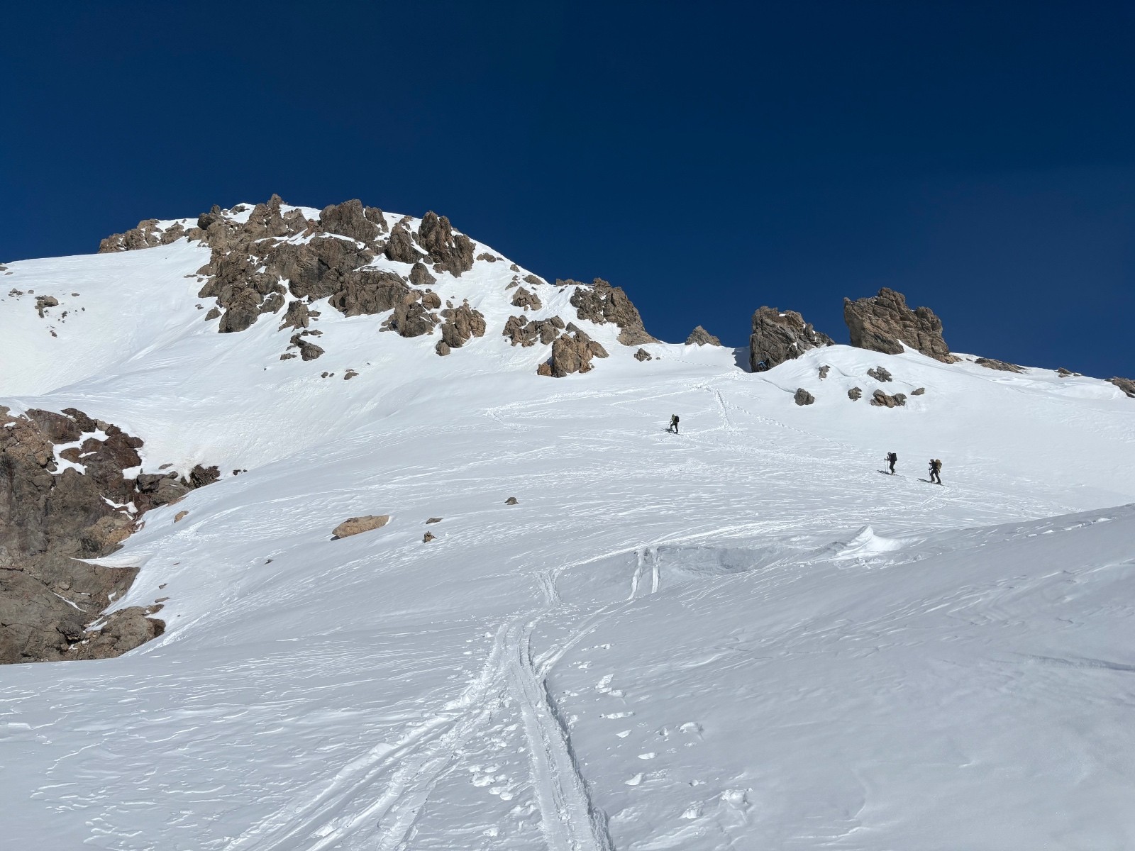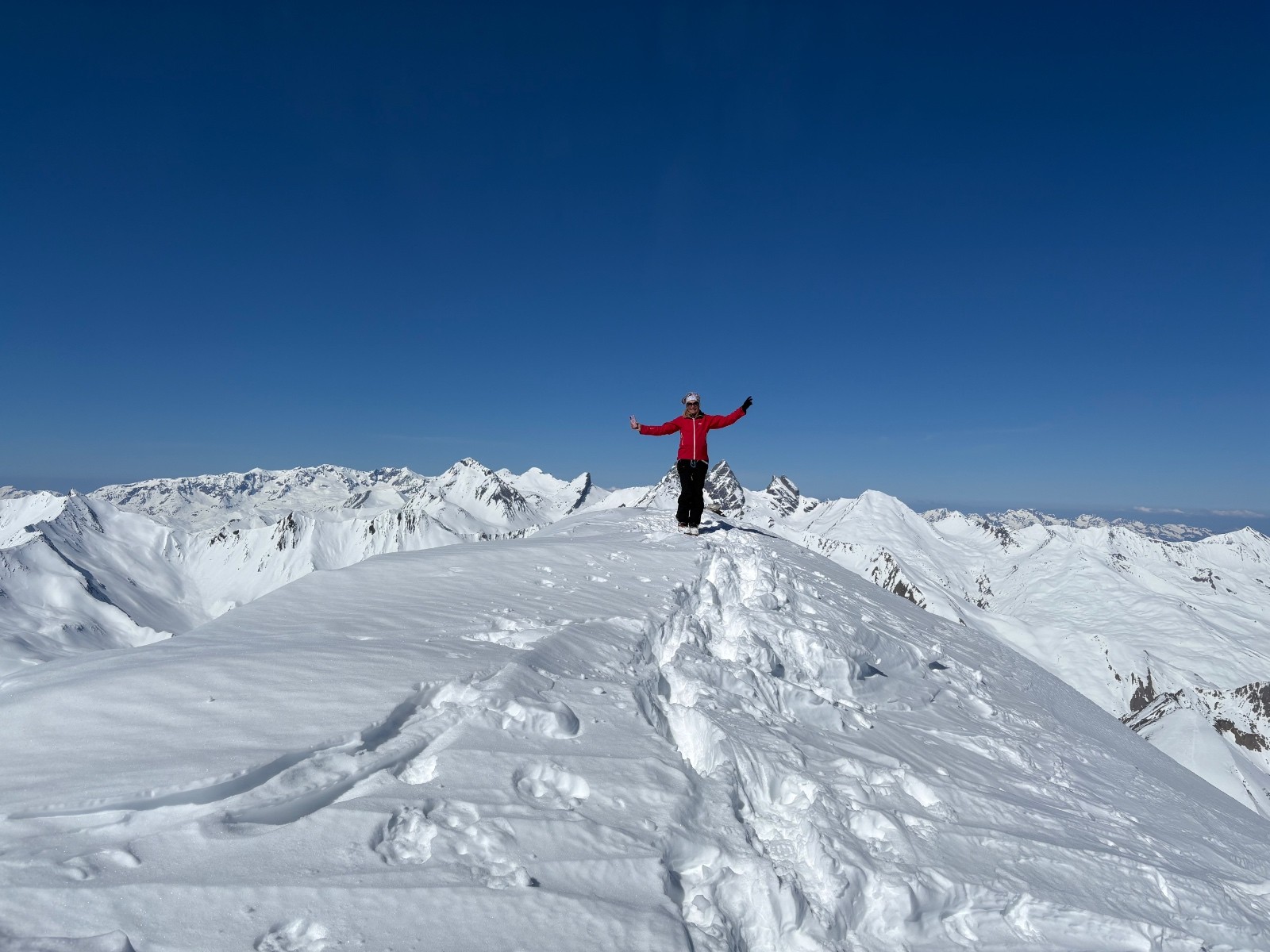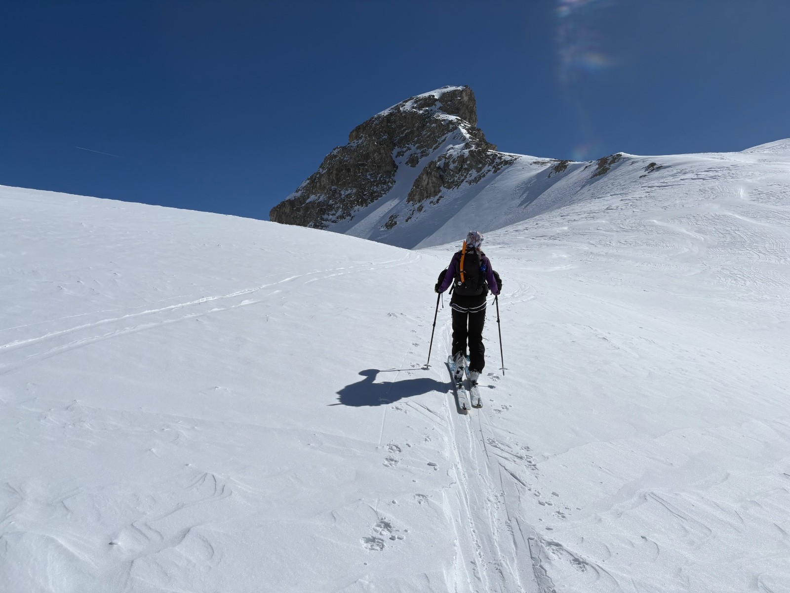 Neige gelée au matin puis dégel progressif. Pas eu besoin de couteaux. Neige délucate et imprévisible à la descente (mélange de neige mal transformée et neige durcie par le vent). Meilleur en descente après le col de Ponsonnière avec de rares endroits de poudreuse versant nord sous les crêtes, a rités du vent, et versants sud transformés en belle moquette. Neige parfaite entre refuge du Clôt des Vaches et le Pont de l’Alpe.