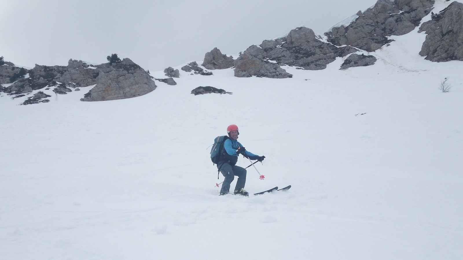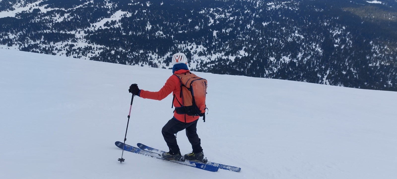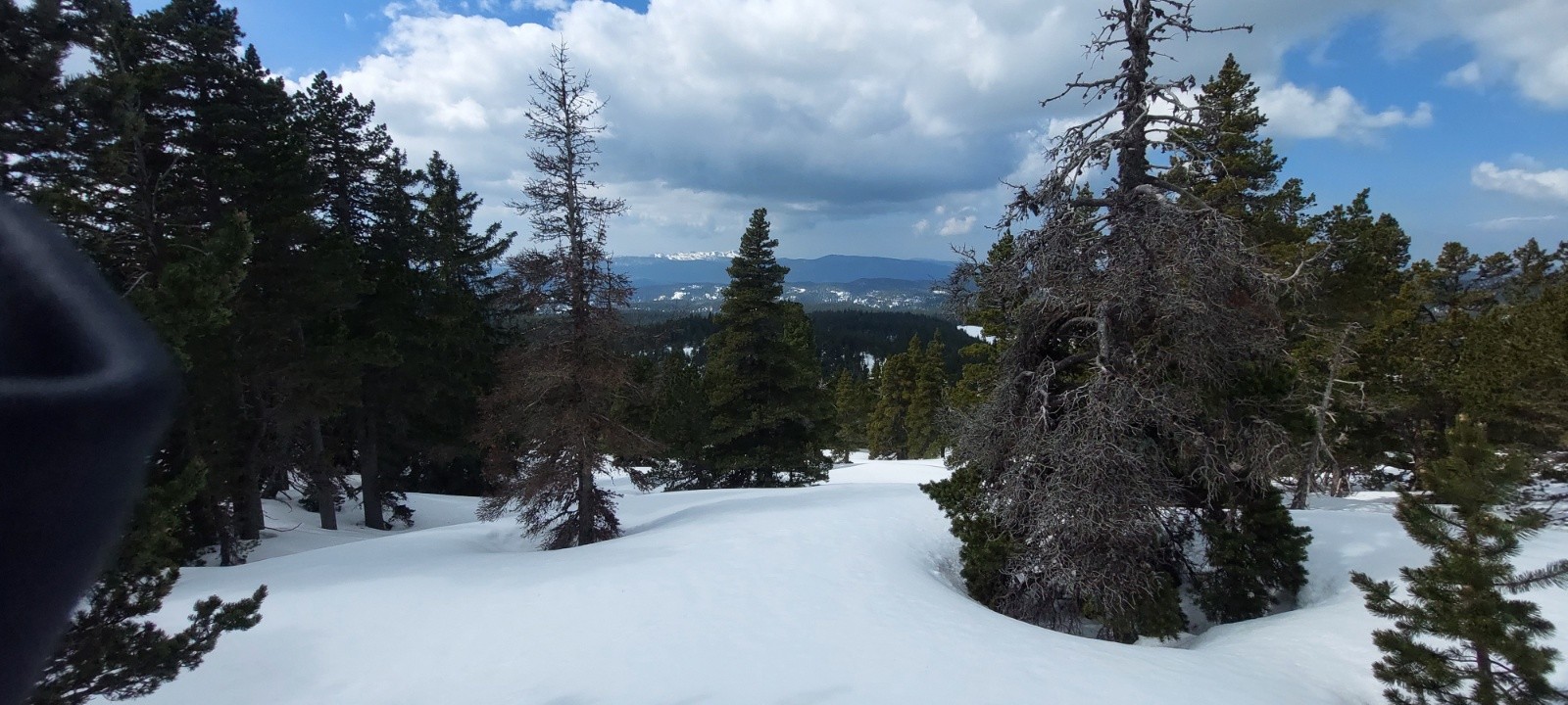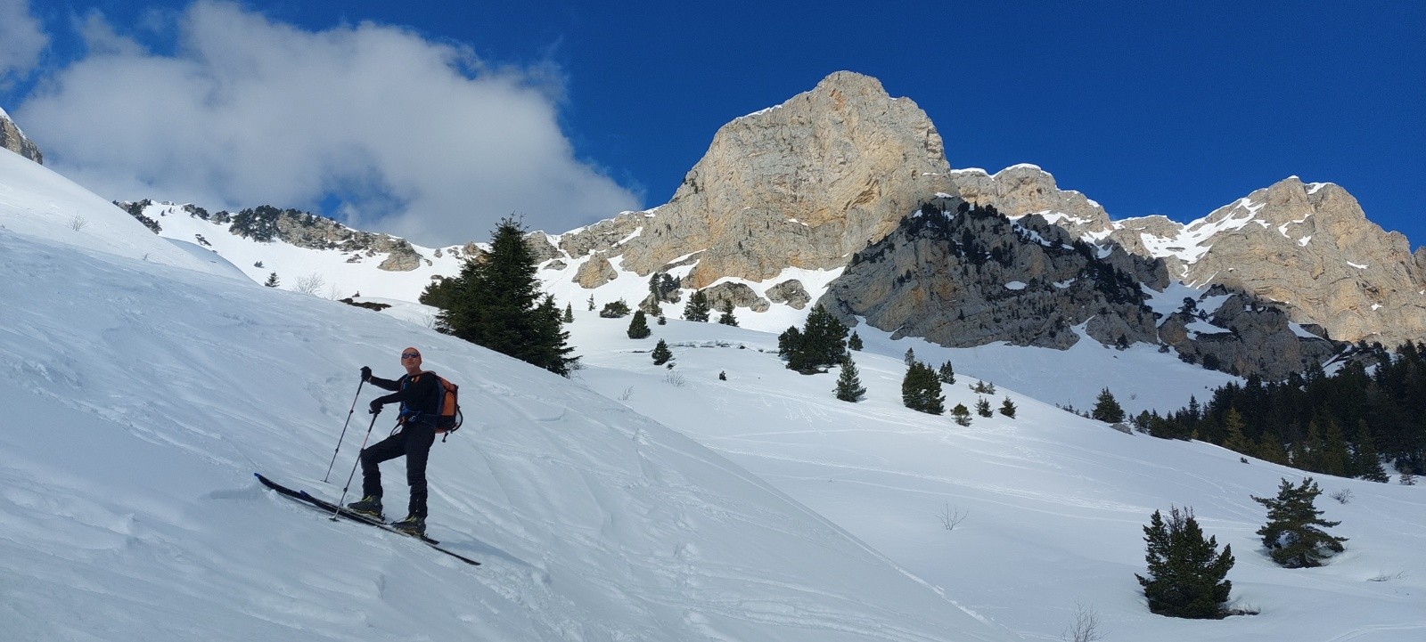 Dommage, ça n'a pas 'décaillé' comme espéré dans la face Ouest : ce ne fut pas un grand plaisir dans le haut, mais ça n'était pas 'béton' ou 'carton', et l'accroche bien rassurante. Mais la suite de la descente Ouest (2de partie grosso modo) fut bien appréciable, entre 'petite moquette', zone poudreuse, petite combe transformée dans la forêt,...