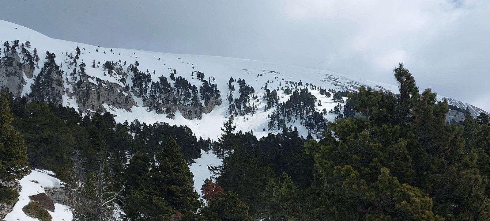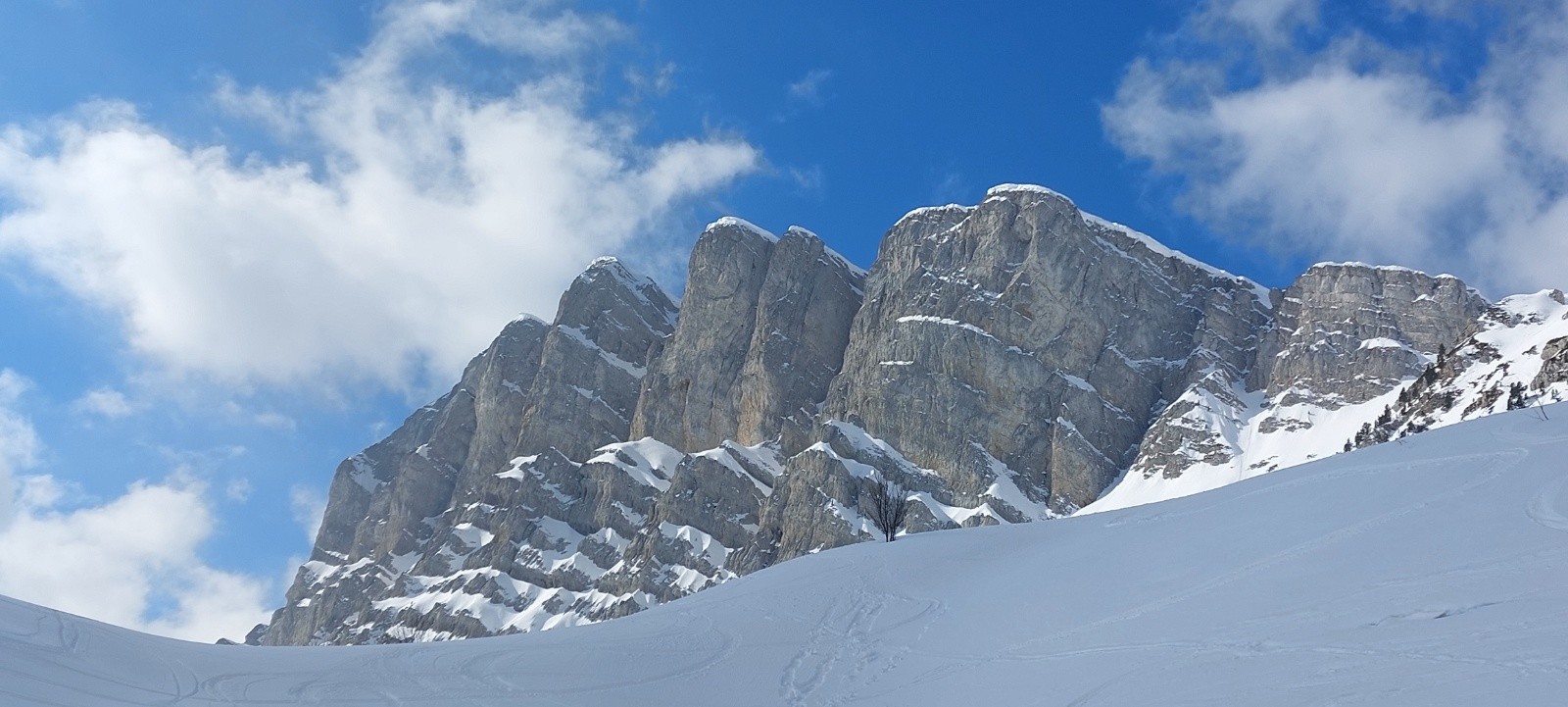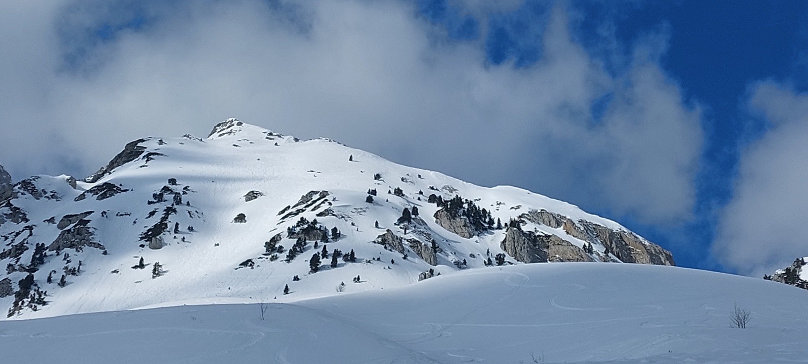 Conditions nivo et activité avalancheuse : RAS ce jour, plusieurs traces de récentes coulées/boules en versants chauds (yc sous le Pas de la Ville) - ça semble plutôt bien stabilisé.
