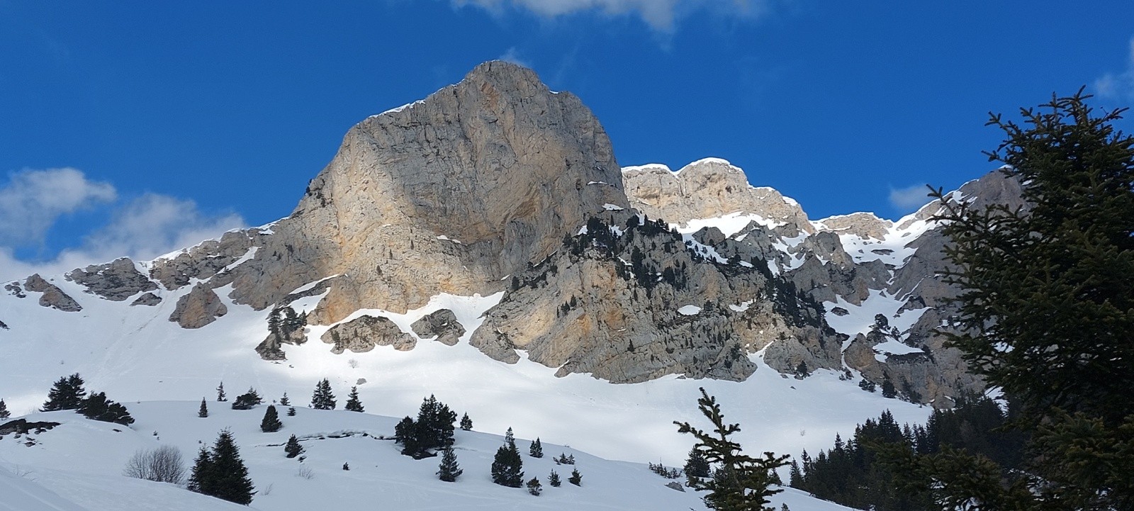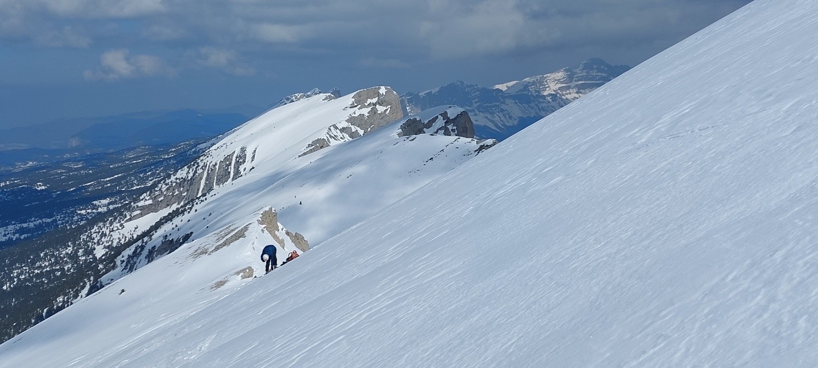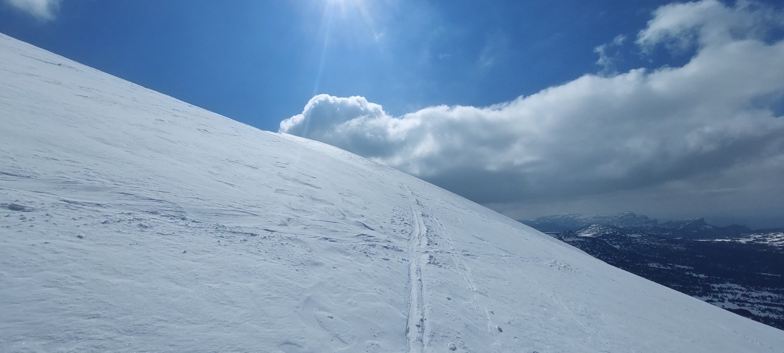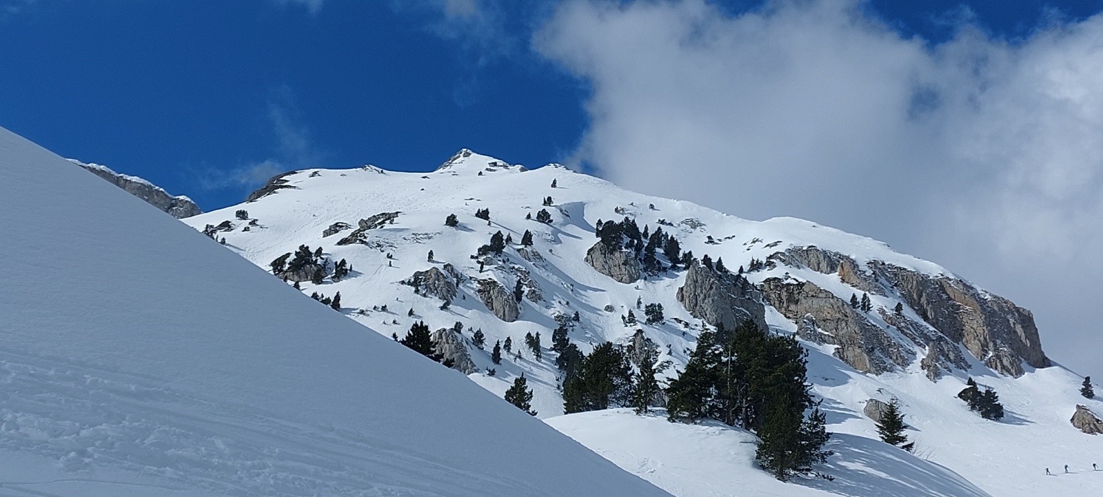 Conditions nivo et activité avalancheuse : RAS ce jour, plusieurs traces de récentes coulées/boules en versants chauds (yc sous le Pas de la Ville) - ça semble plutôt bien stabilisé.