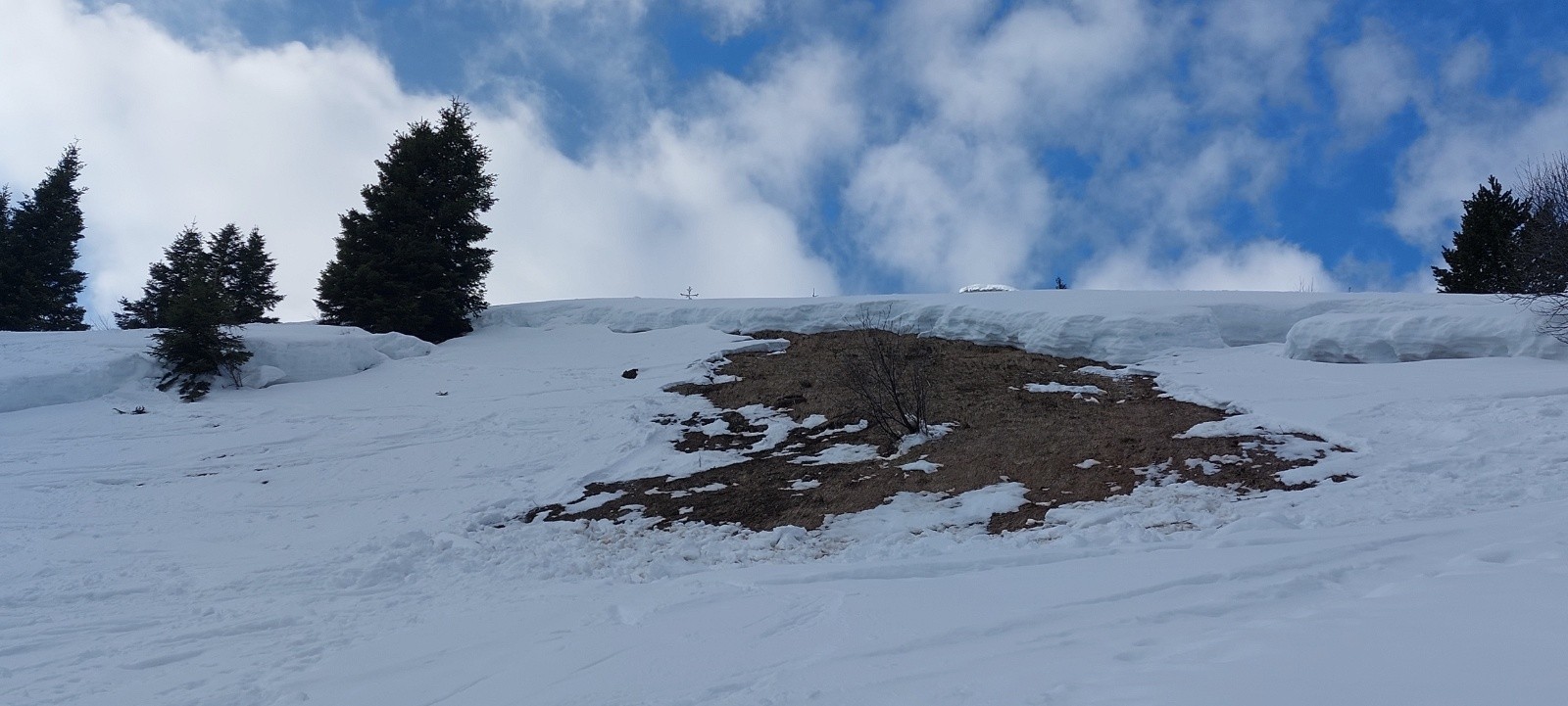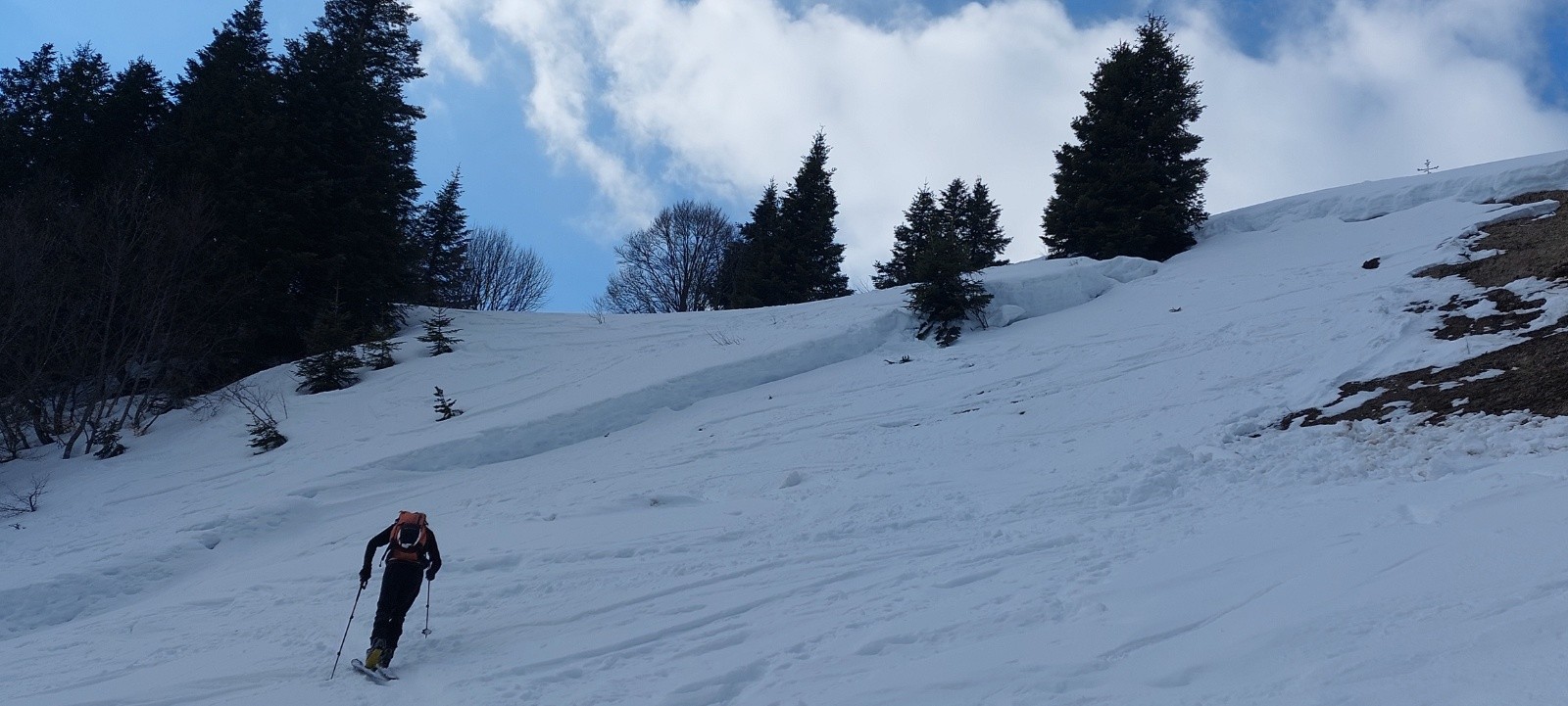 A noter une méga-cassure-reptation dans la petit combe froide empruntée à la montée "à main gauche" du sentier (cf. photo).