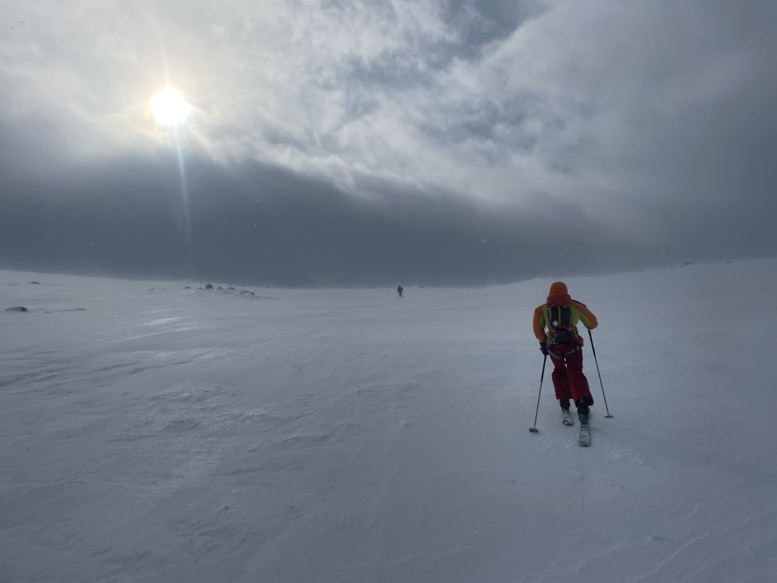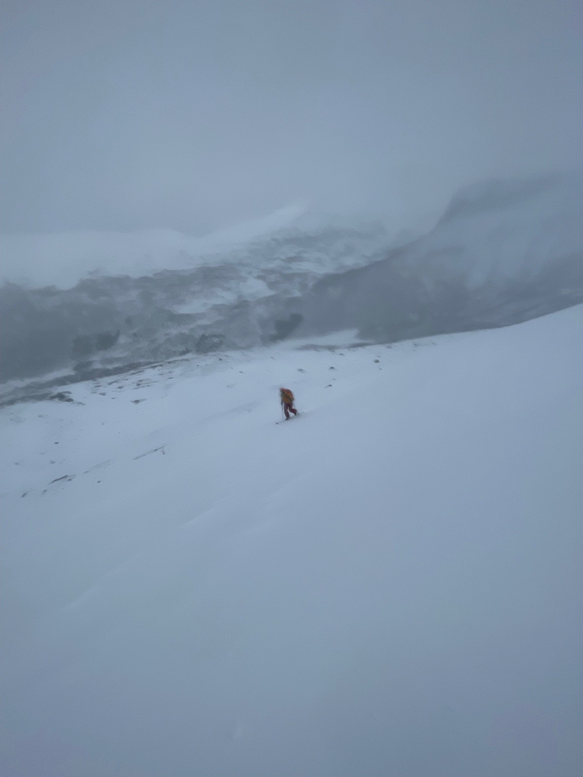 Enormémént de vent de sud avec des rafales très fortes à partir de 700m. On a dû renoncer au tour car sous le sommet la visibilité était quasi nulle.