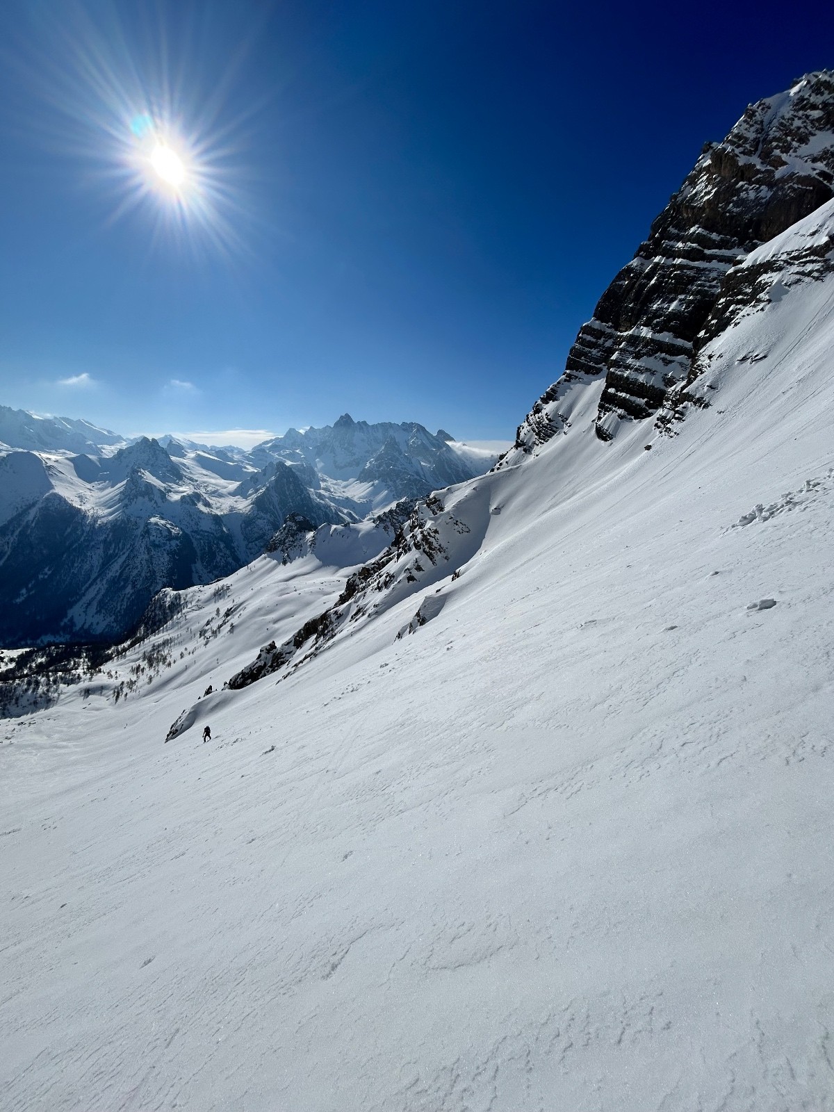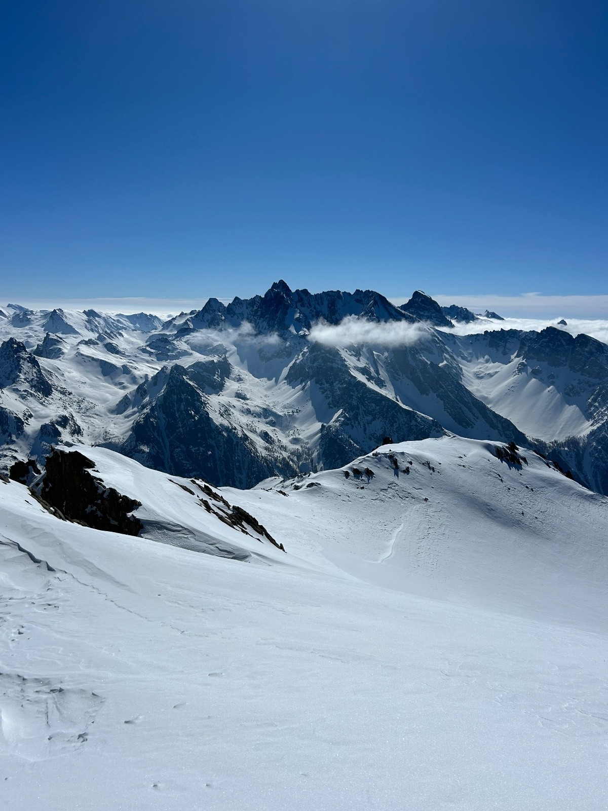 Conditions pour le ski : Neige encore poudreuse dans les pentes N,NE légère croute par endroit, neige de printemps sur le reste