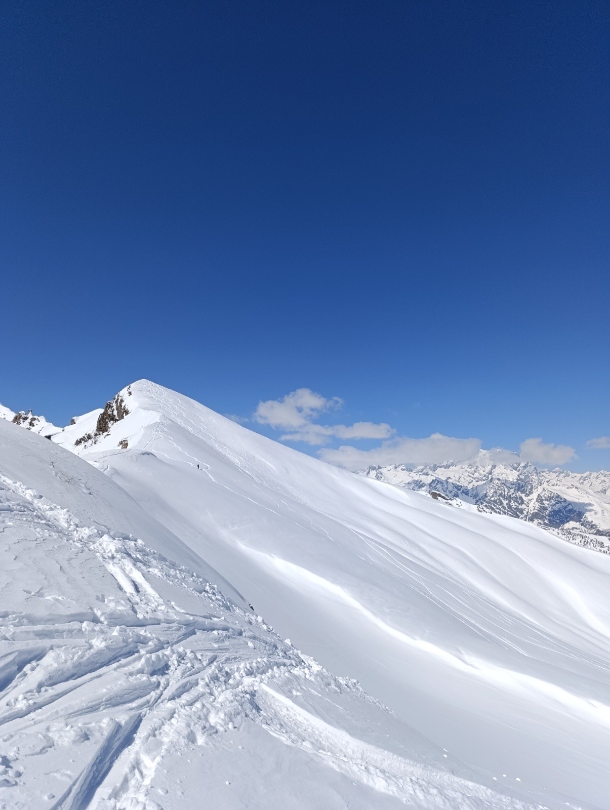 Conditions pour le ski : Excellentes, 30 cm de poudreuse jusqu'à 2 200 m (cabane Clot Saret) puis 10 cm de neige en vous de transformation sur fond dur.