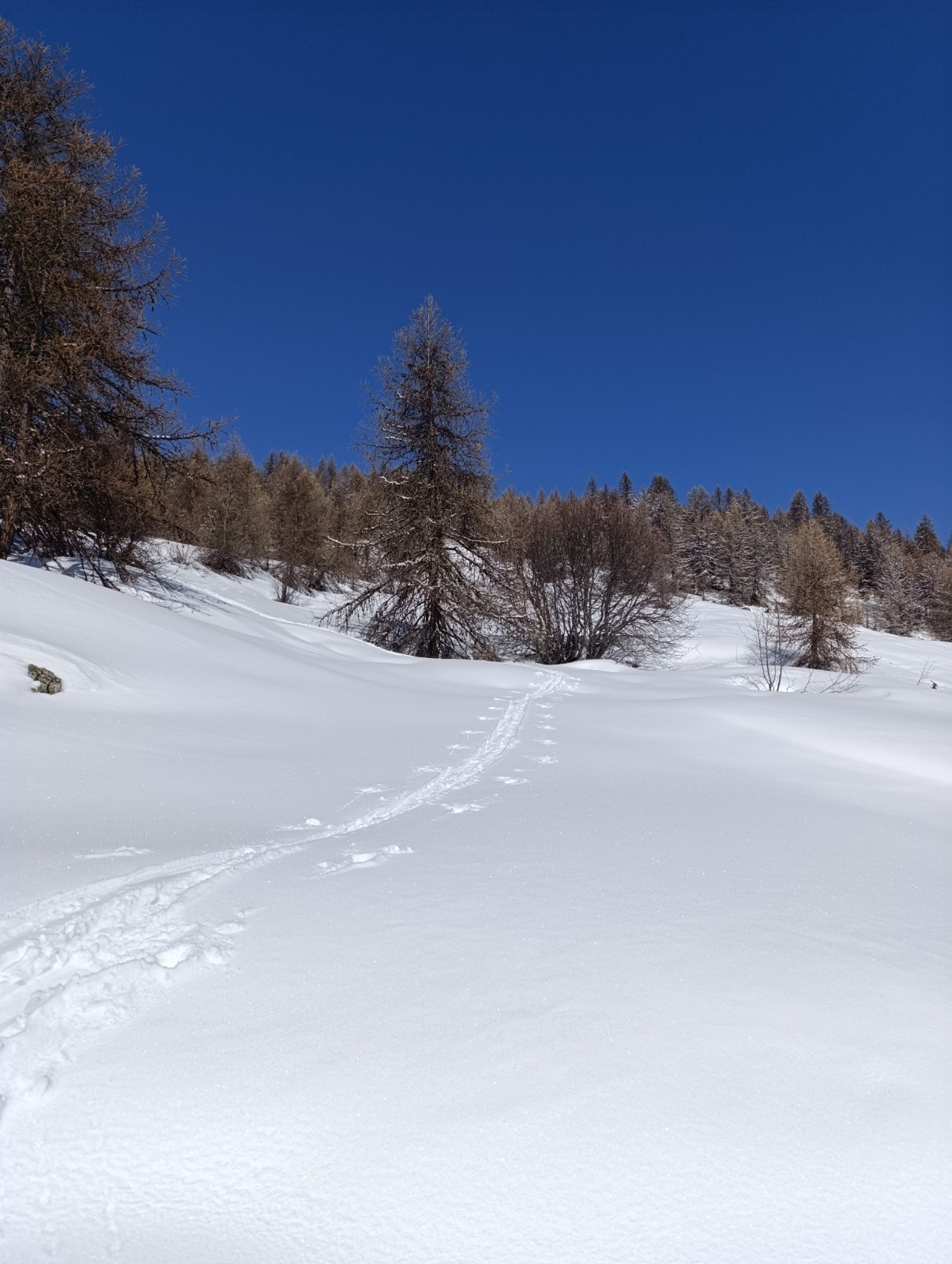 Itinéraire suivi :topo jusqu'à la sortie de la forêt puis pente E SE issue de l'arête puis arête jusqu'au sommet