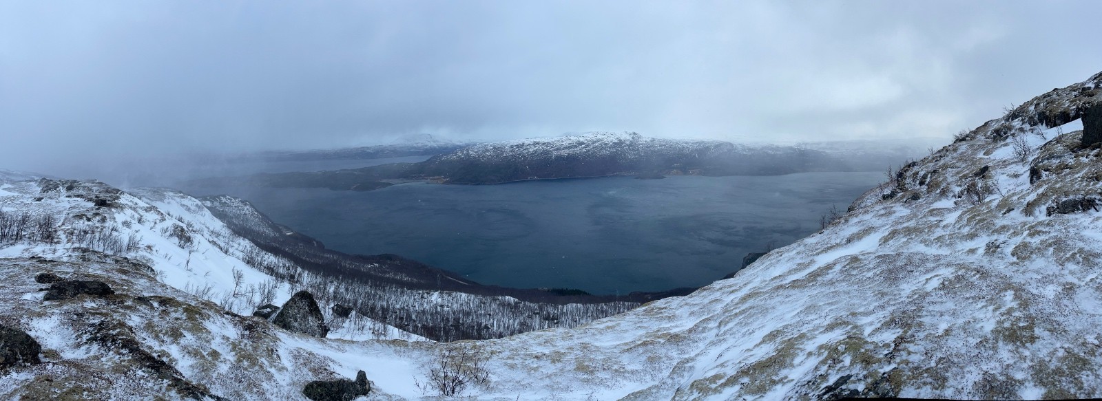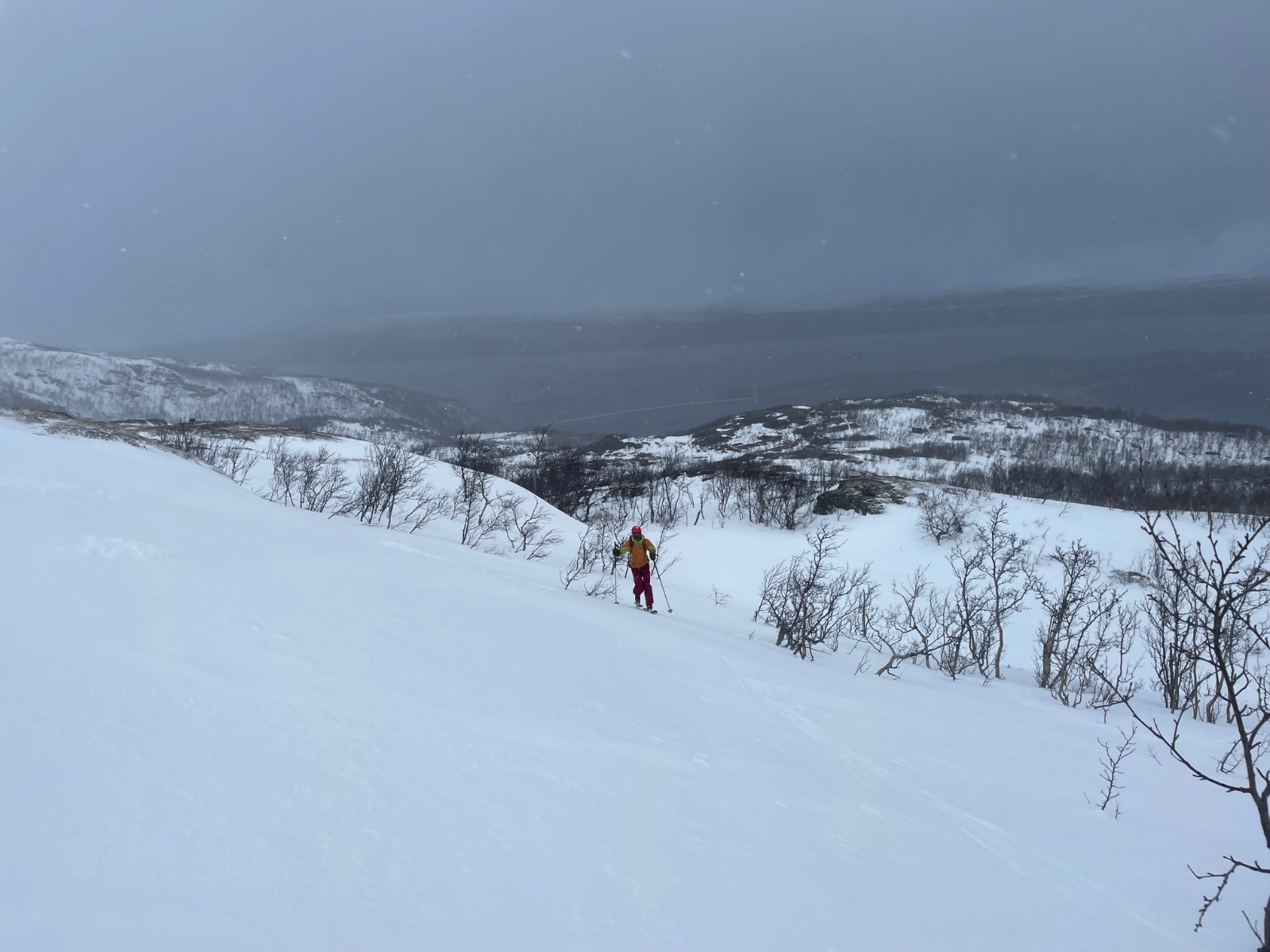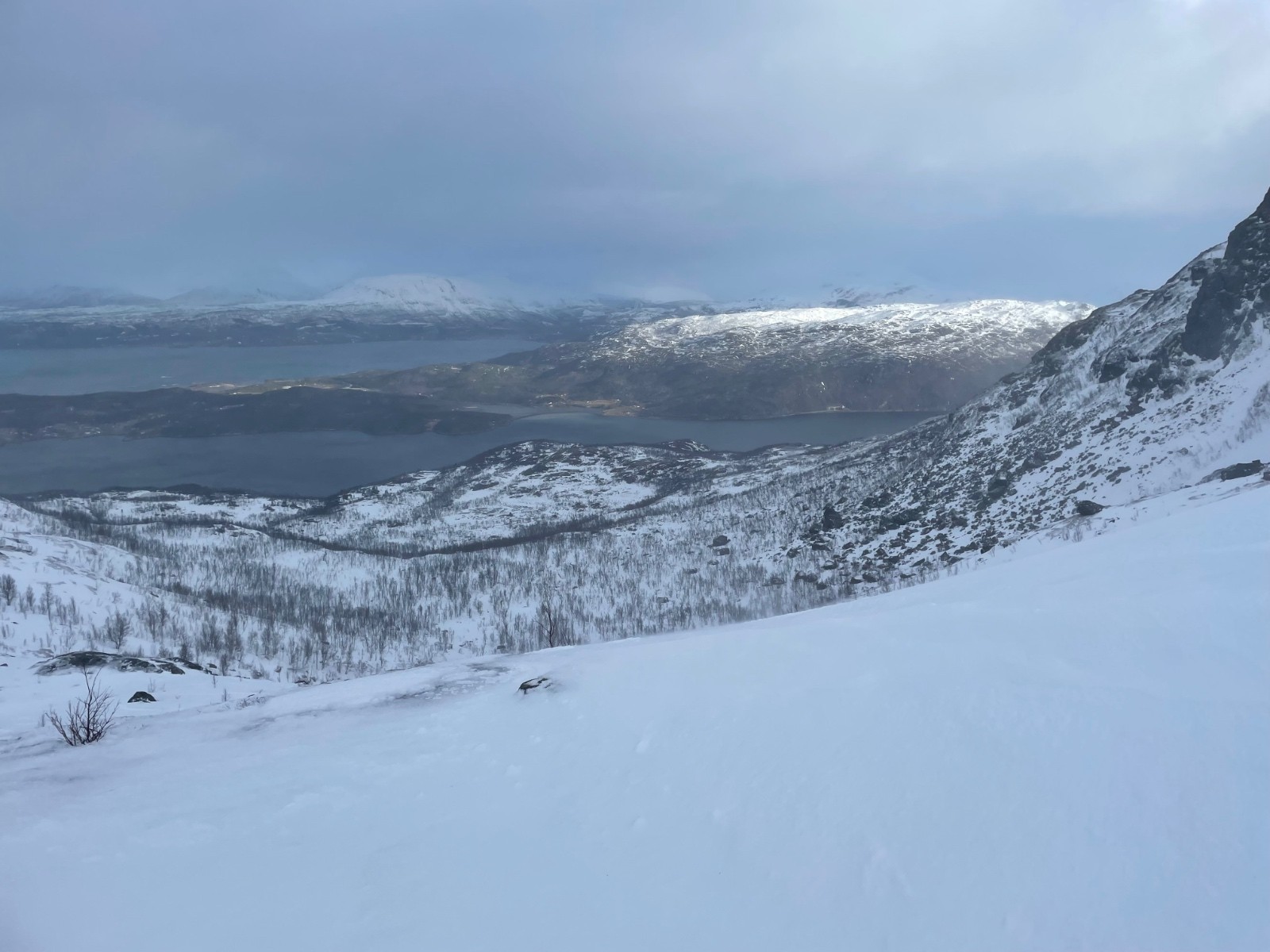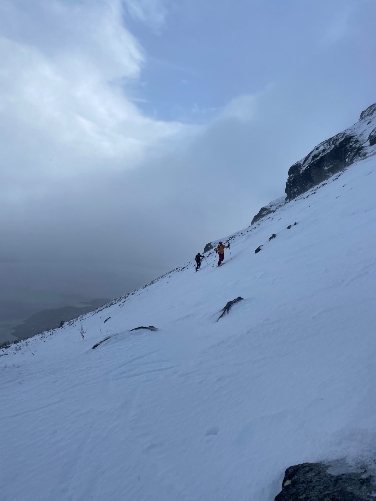 Demi tour pour une descente face au fjord 😍 qui a été belle. Mais sur neige dure ou croutée.