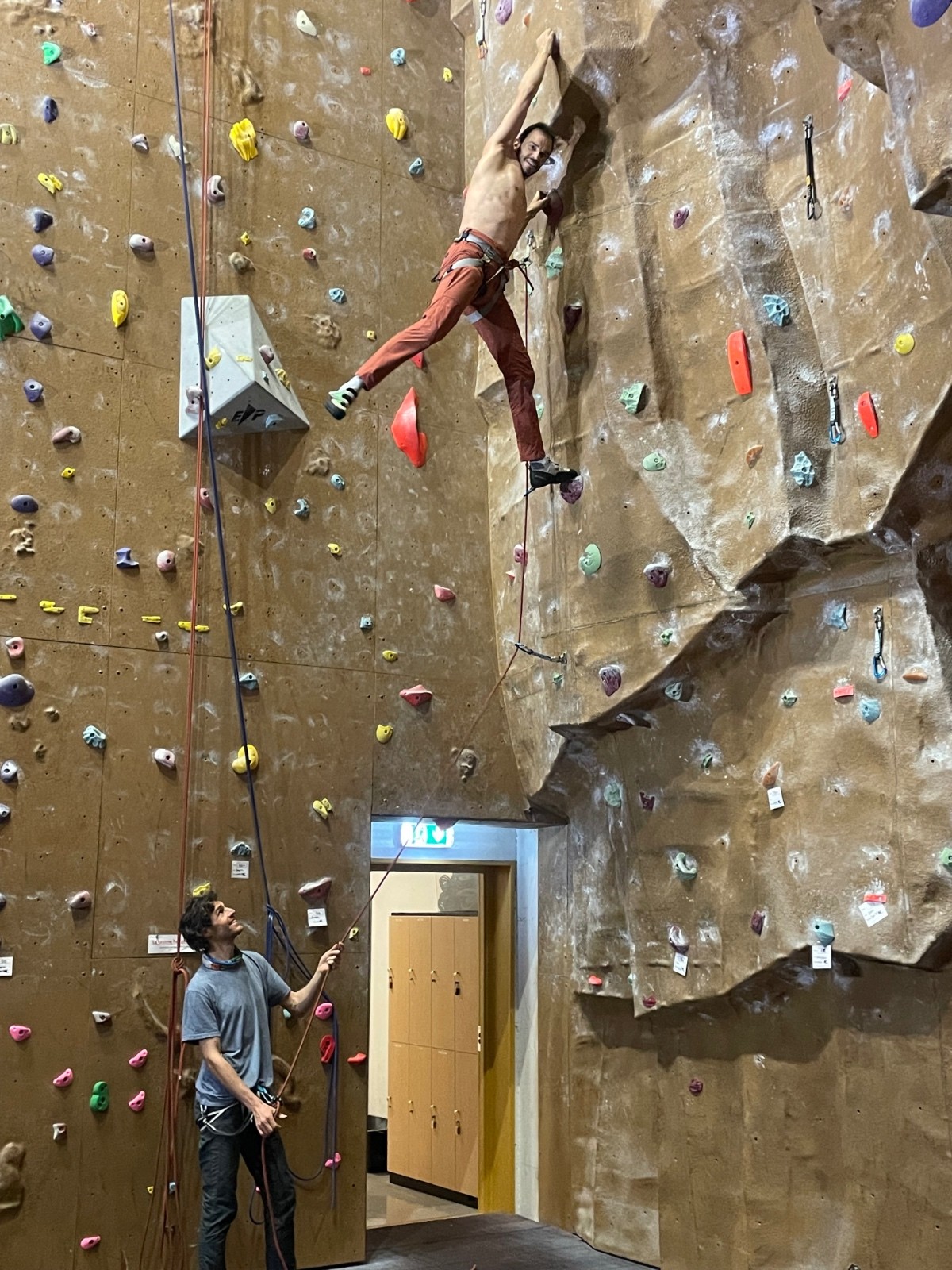 Rentrés tôt, on a été escalader en salle et prendre un bon sauna !