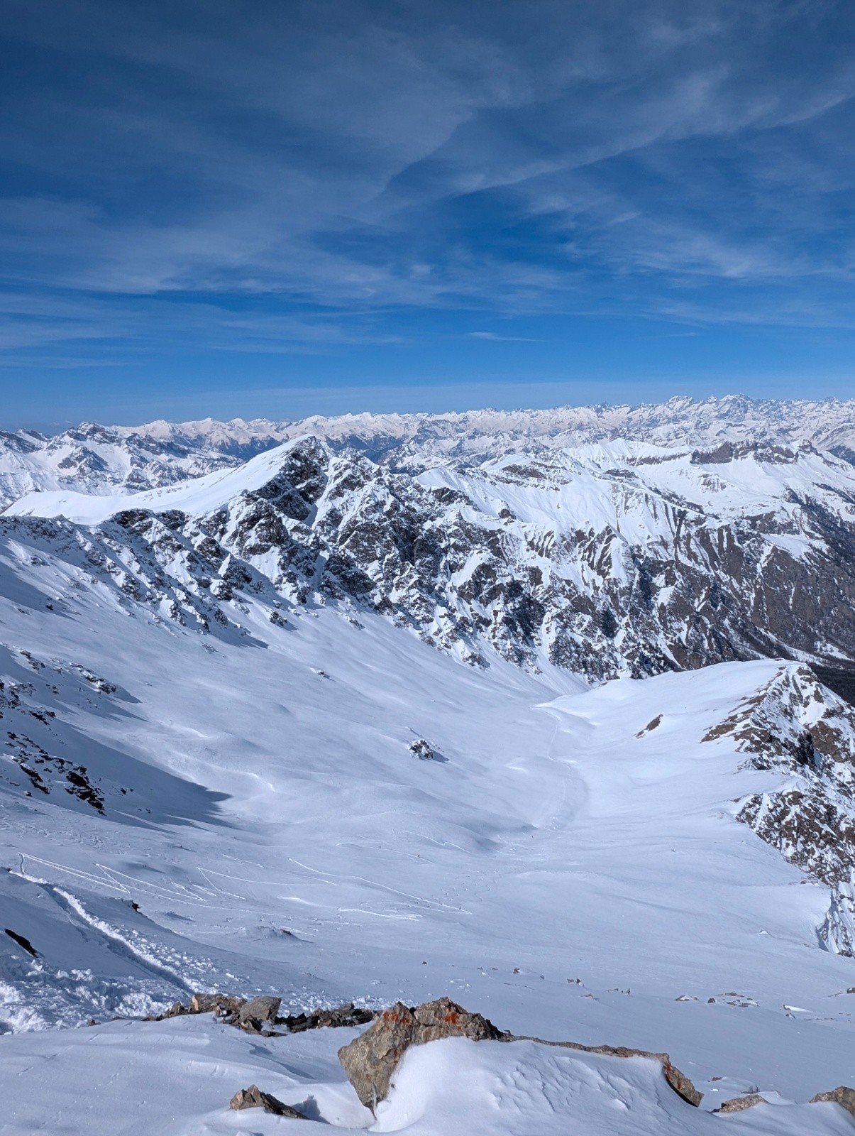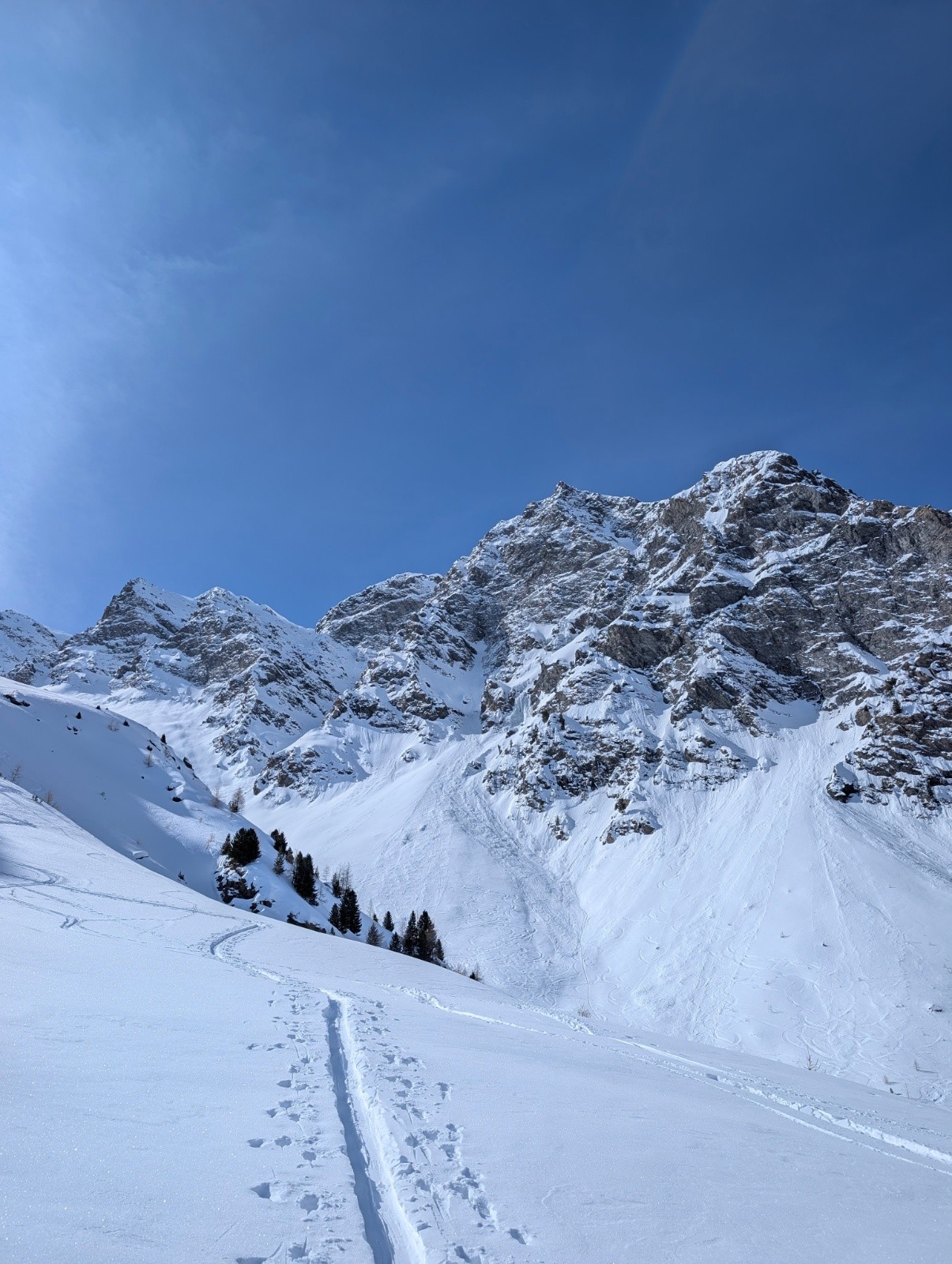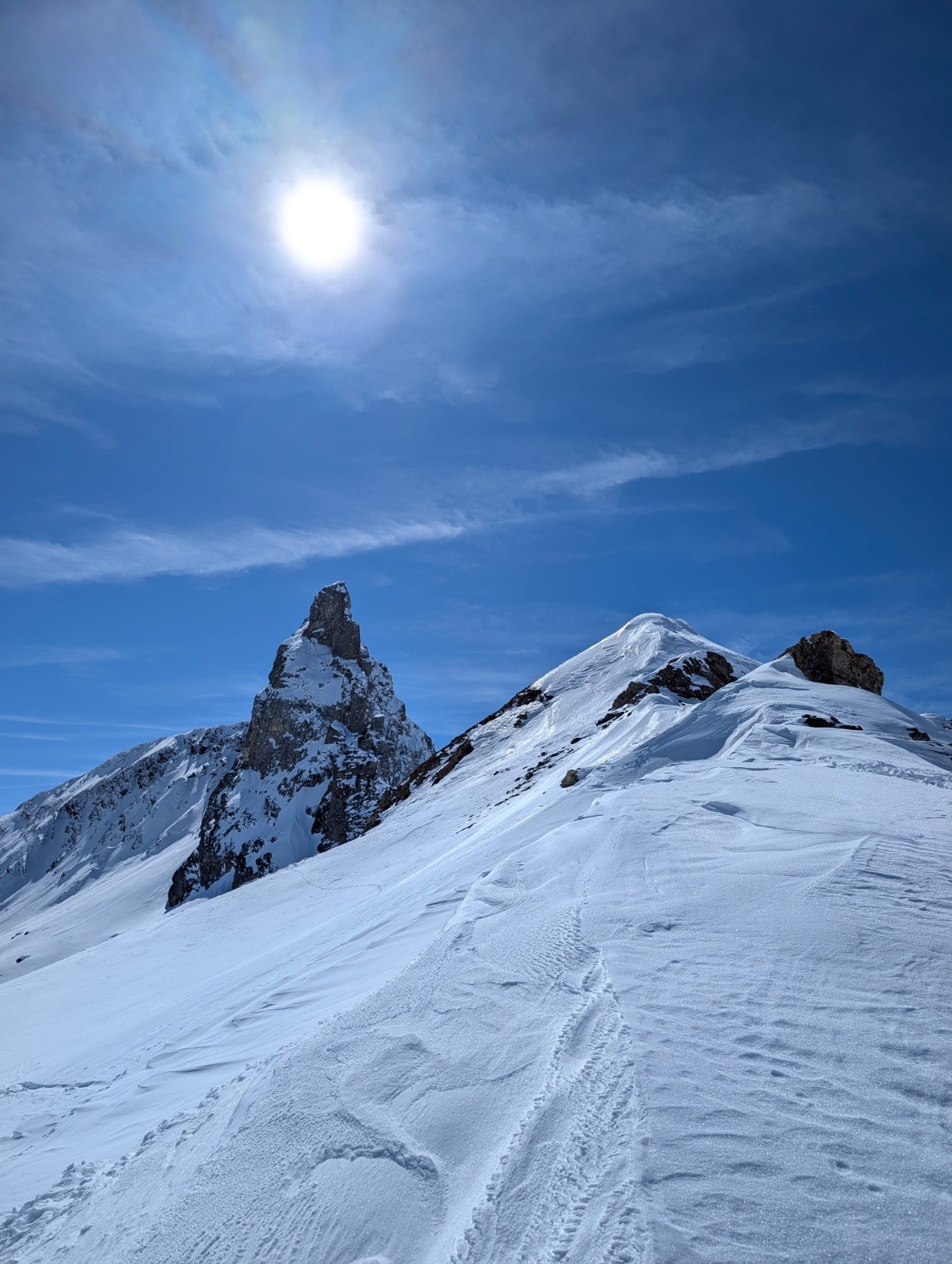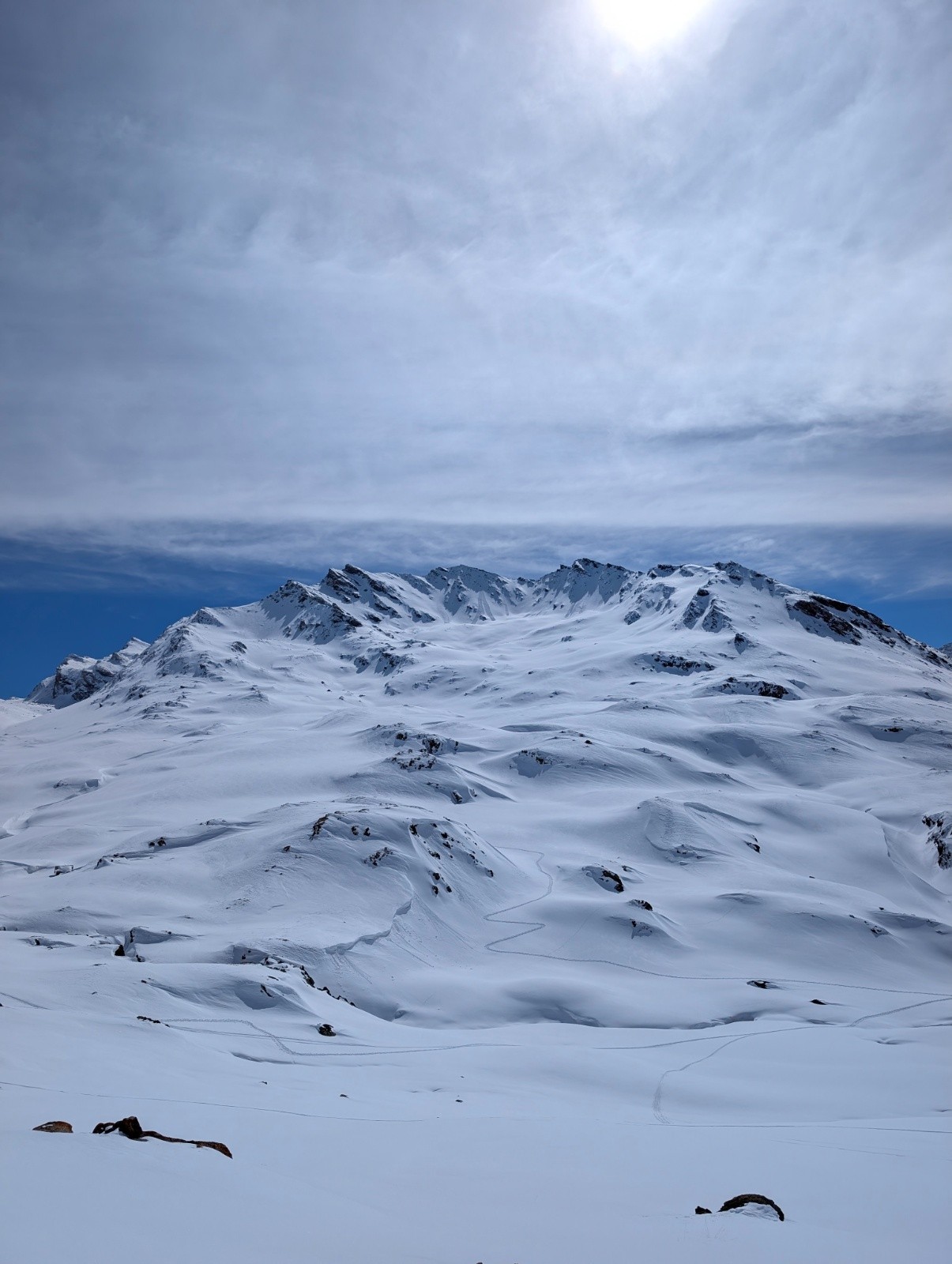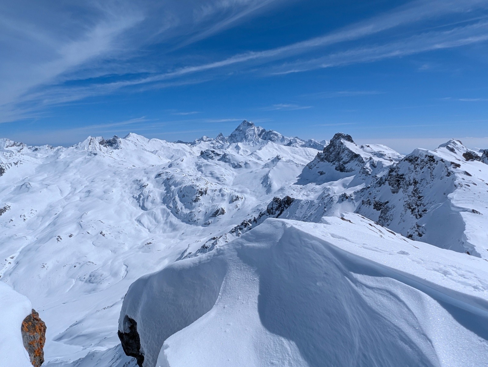 Conditions pour le ski : excellent pas de vent un grand soleil de la neige surtout versant nord une bonne poudre bien froide juste un régal,j'aurais dû faire le sens inverse pour profiter de la neige sur la face nord du longet .