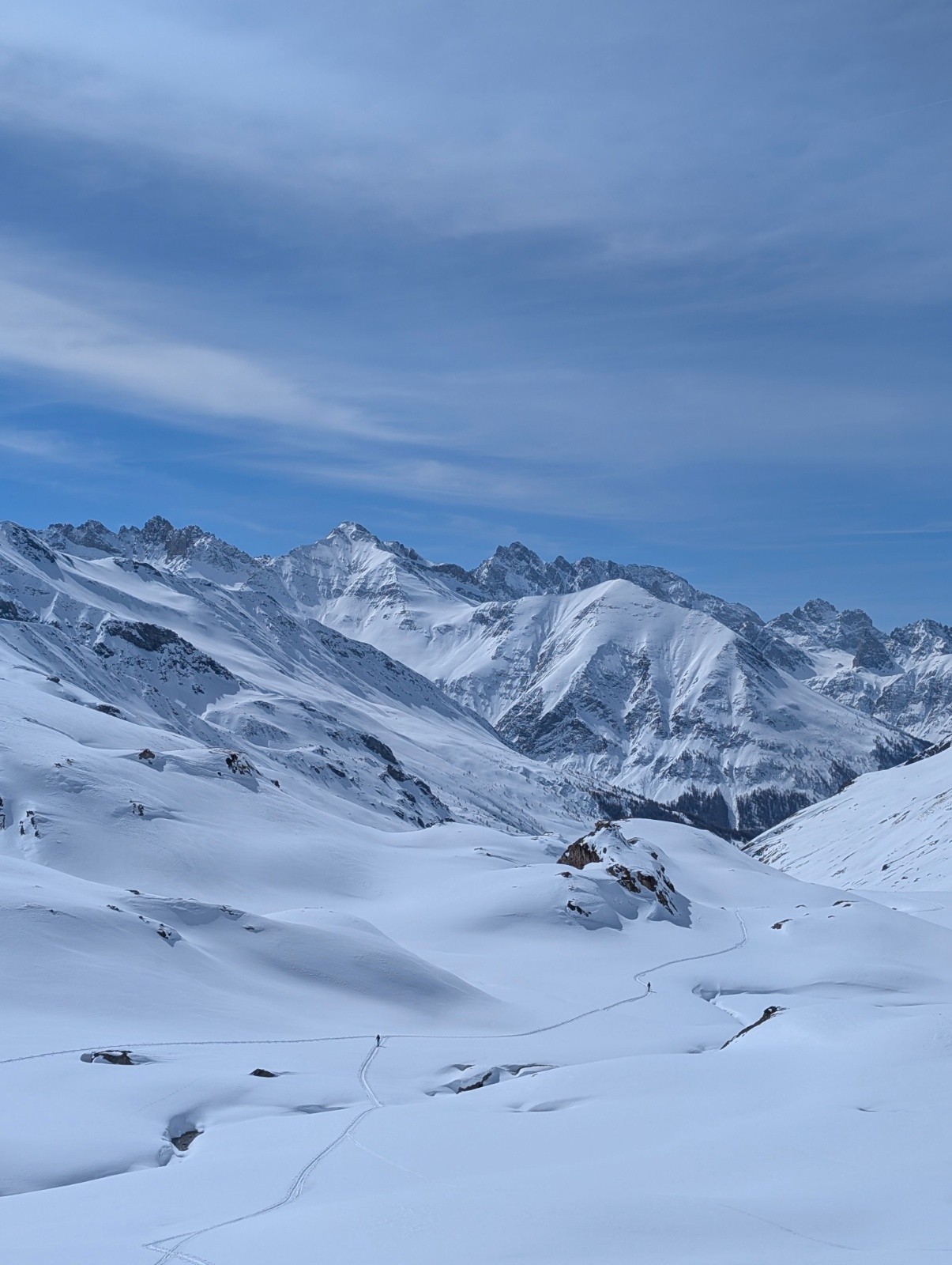 Itinéraire suivi :depuis St veran prendre le chemin rive gauche du tournent en bas ,puis après 3 km prendre à droite dans la forêt direction la tête de longet , au sommet bascule côté sud direct l'Ubaye 😍.