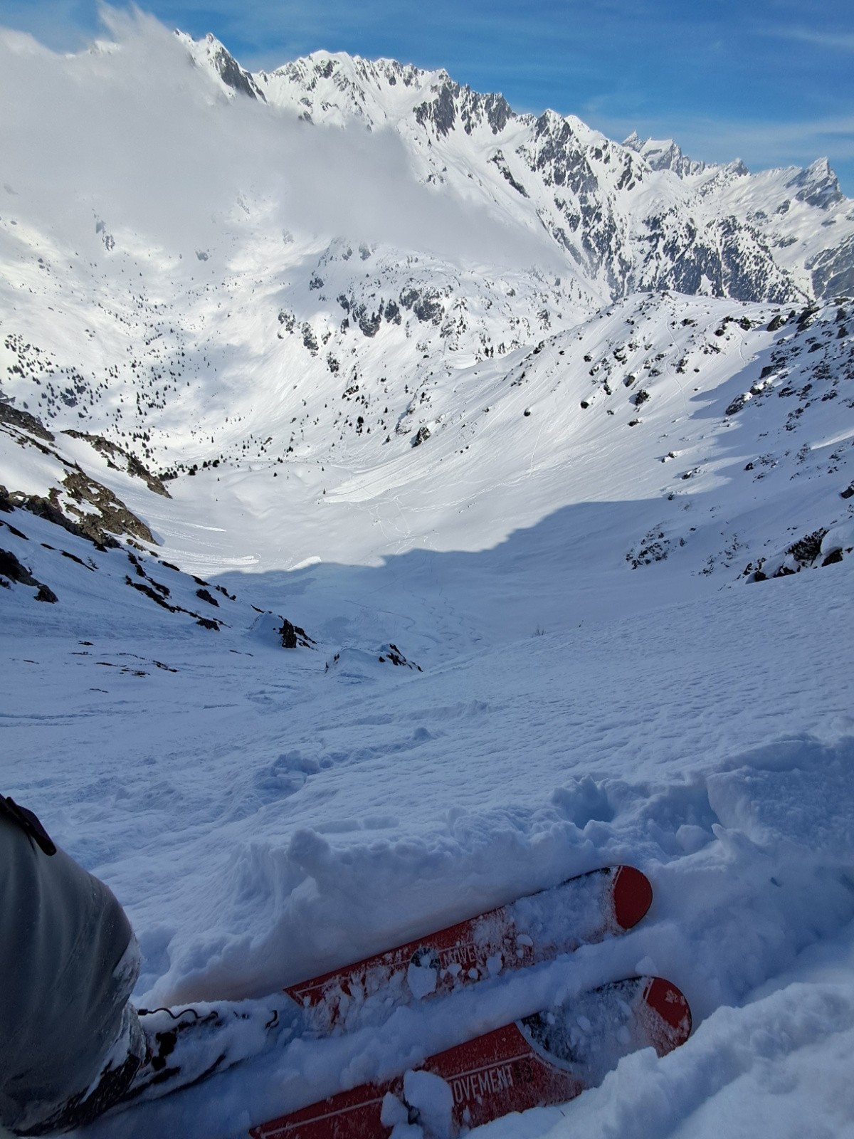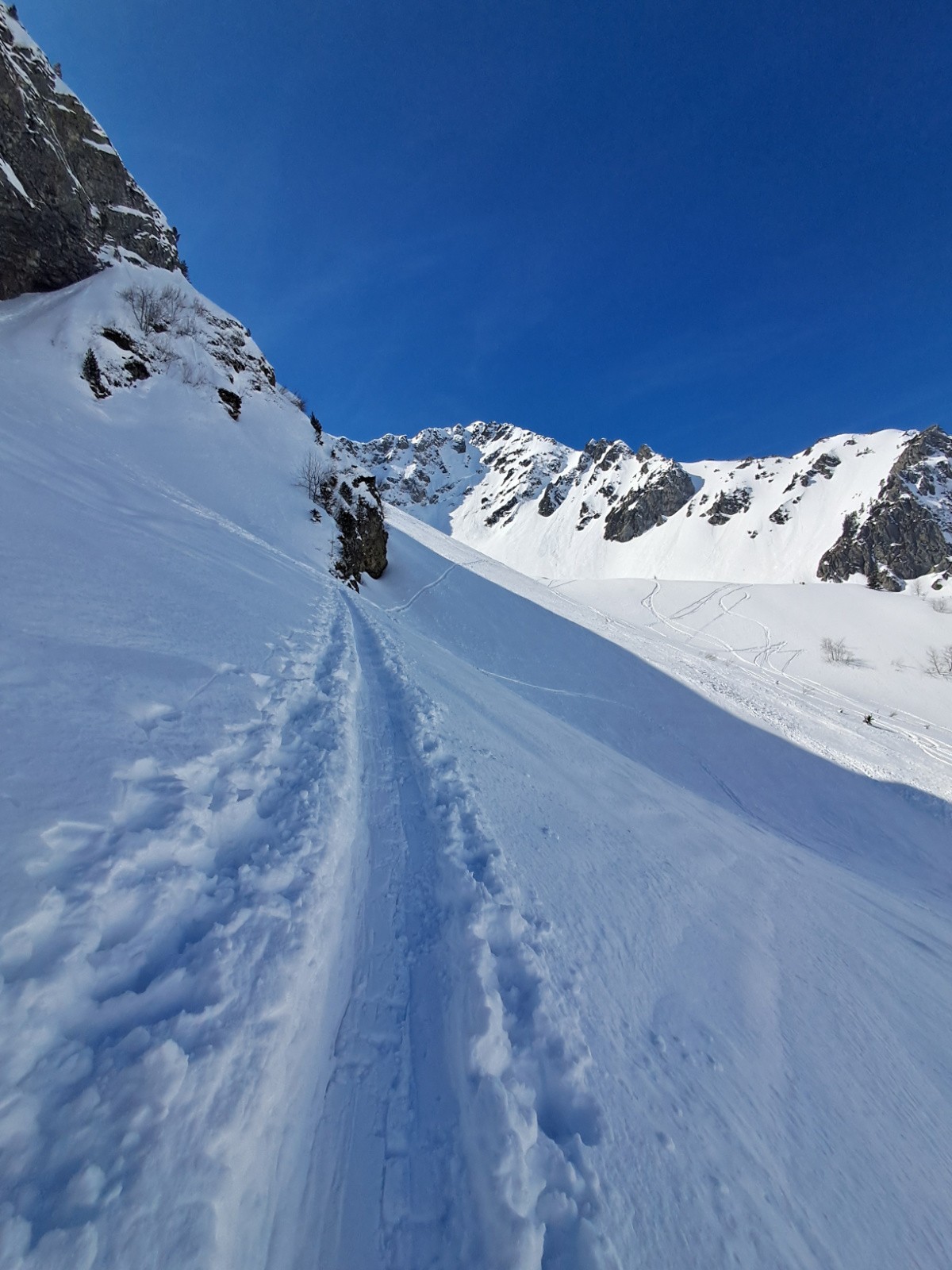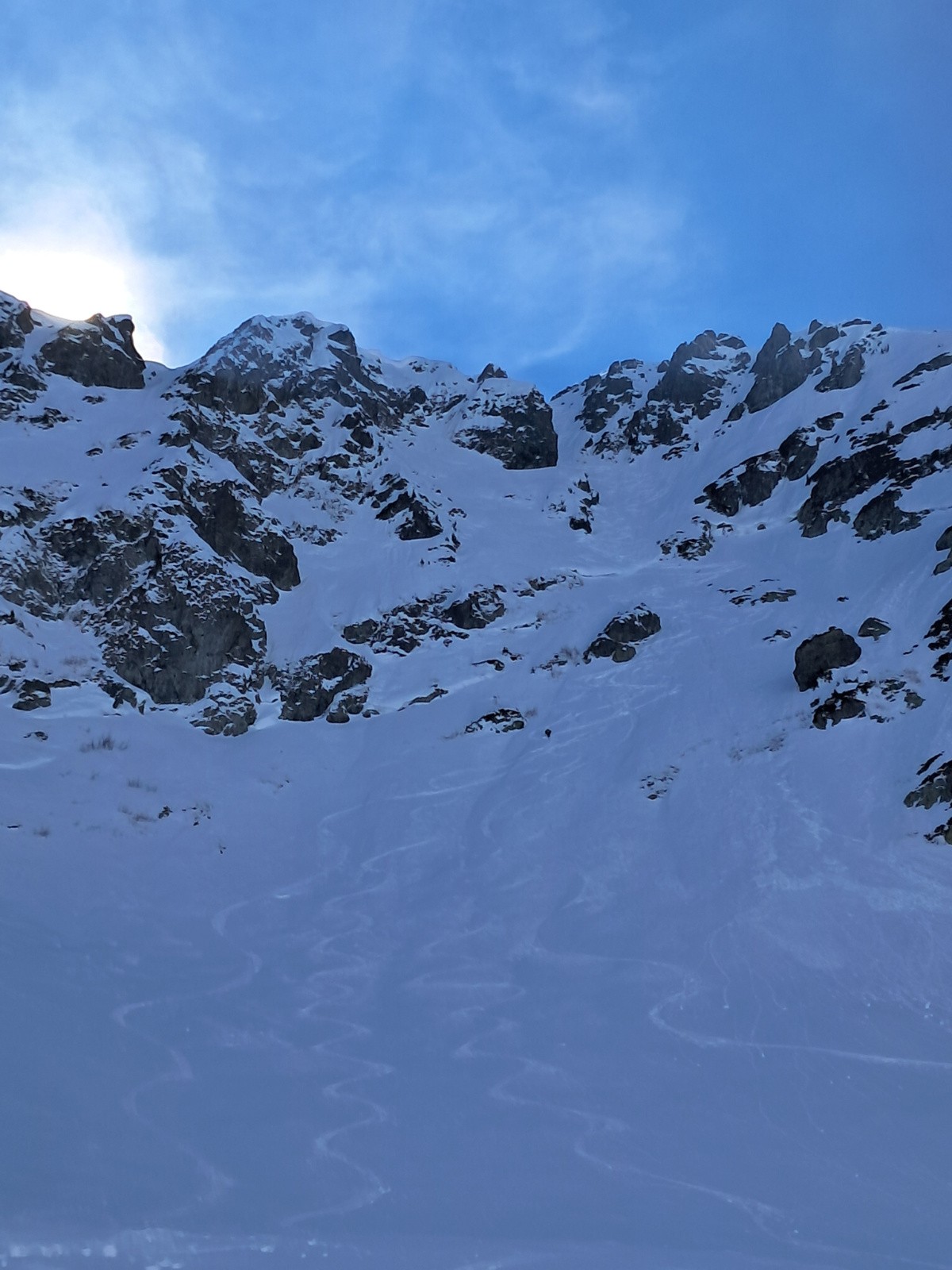 Descente par le couloir NE, qui aura vu trois passages avant nous.