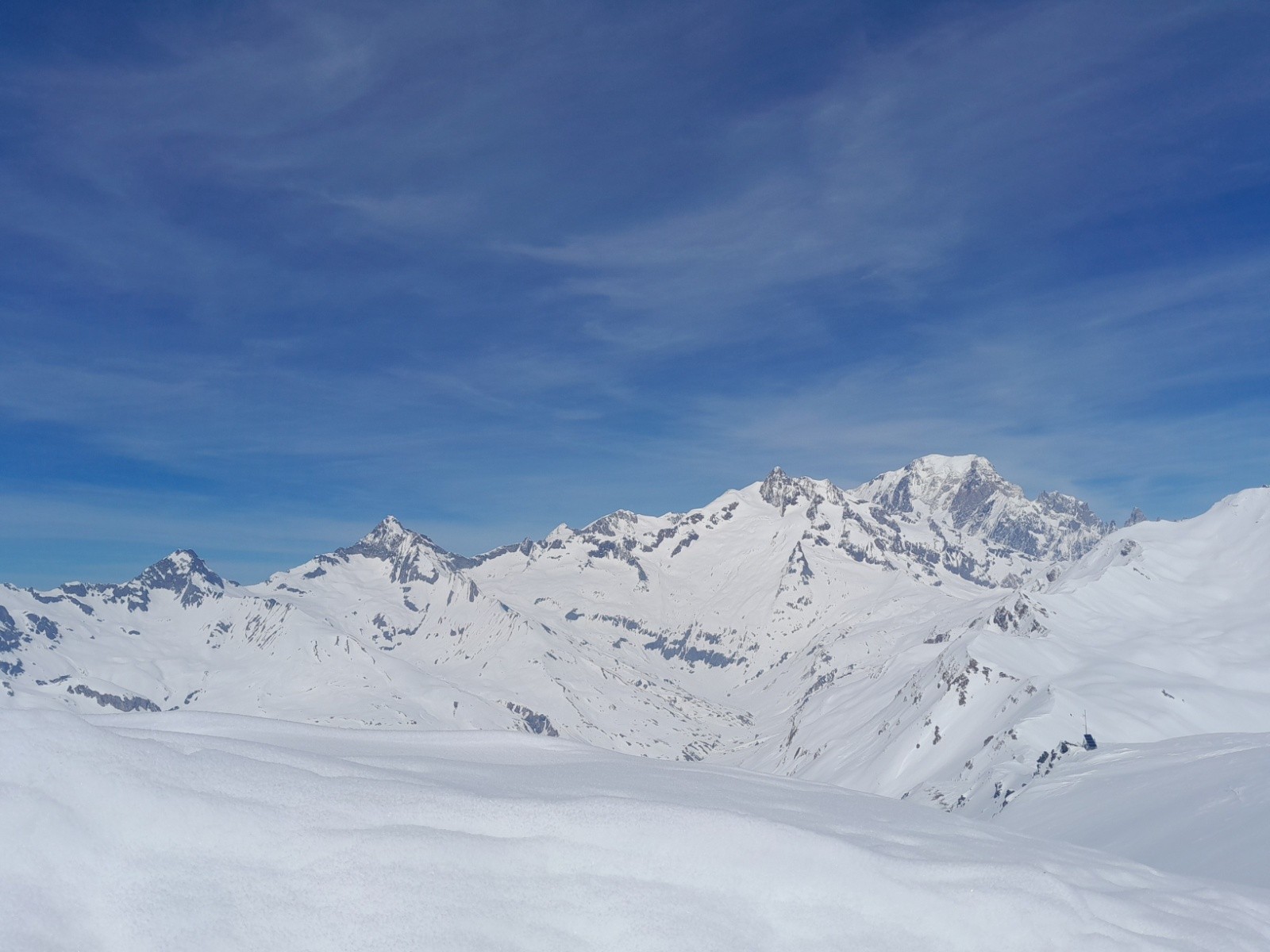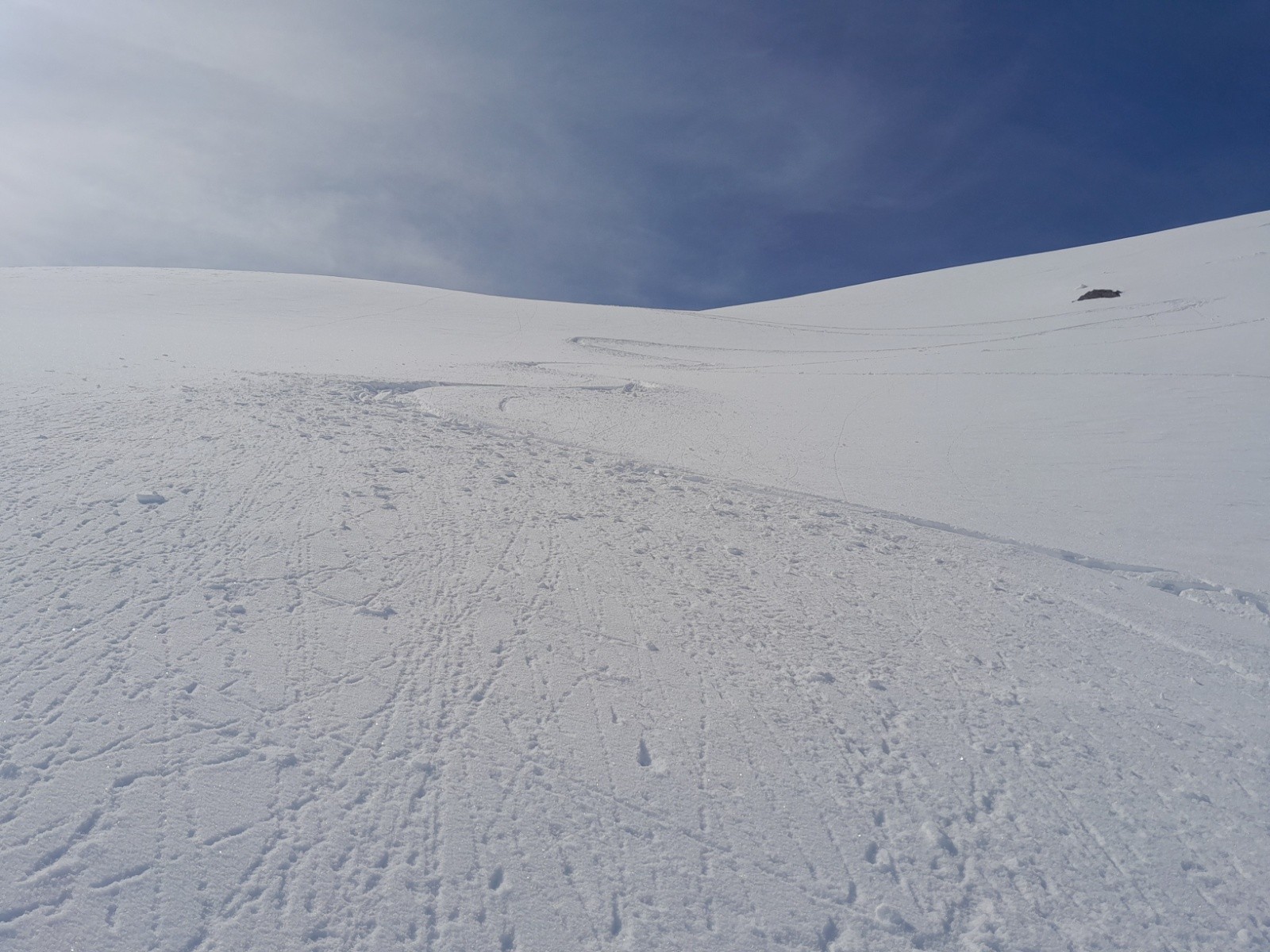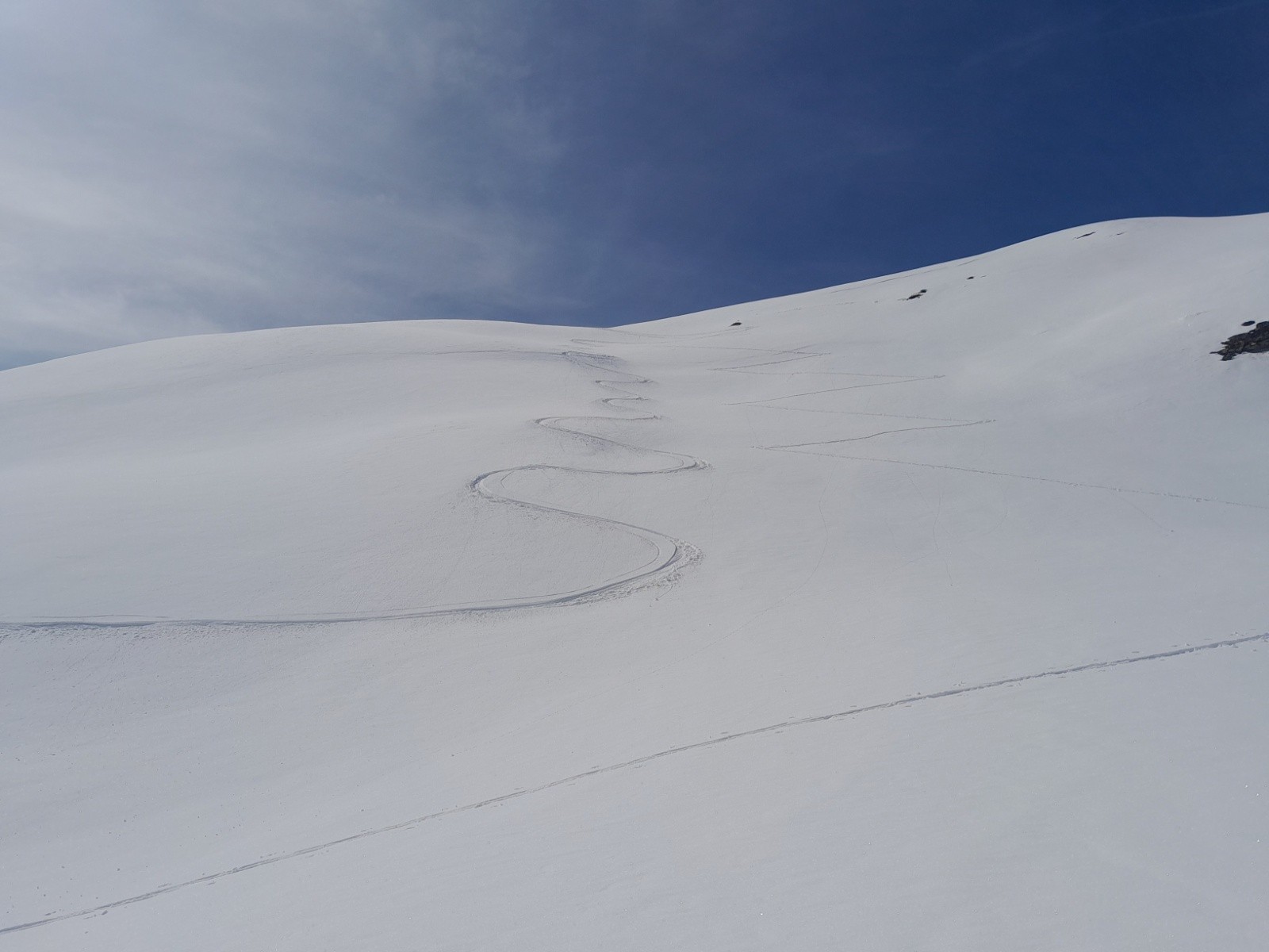 Conditions pour le ski : bottage important à partir de 2100 m. 10cm de poudre sur fond plus ou moins dur, neige variable selon l altitude. Descente en continue en louvoyant entre les prairies et jusqu'à 1300m