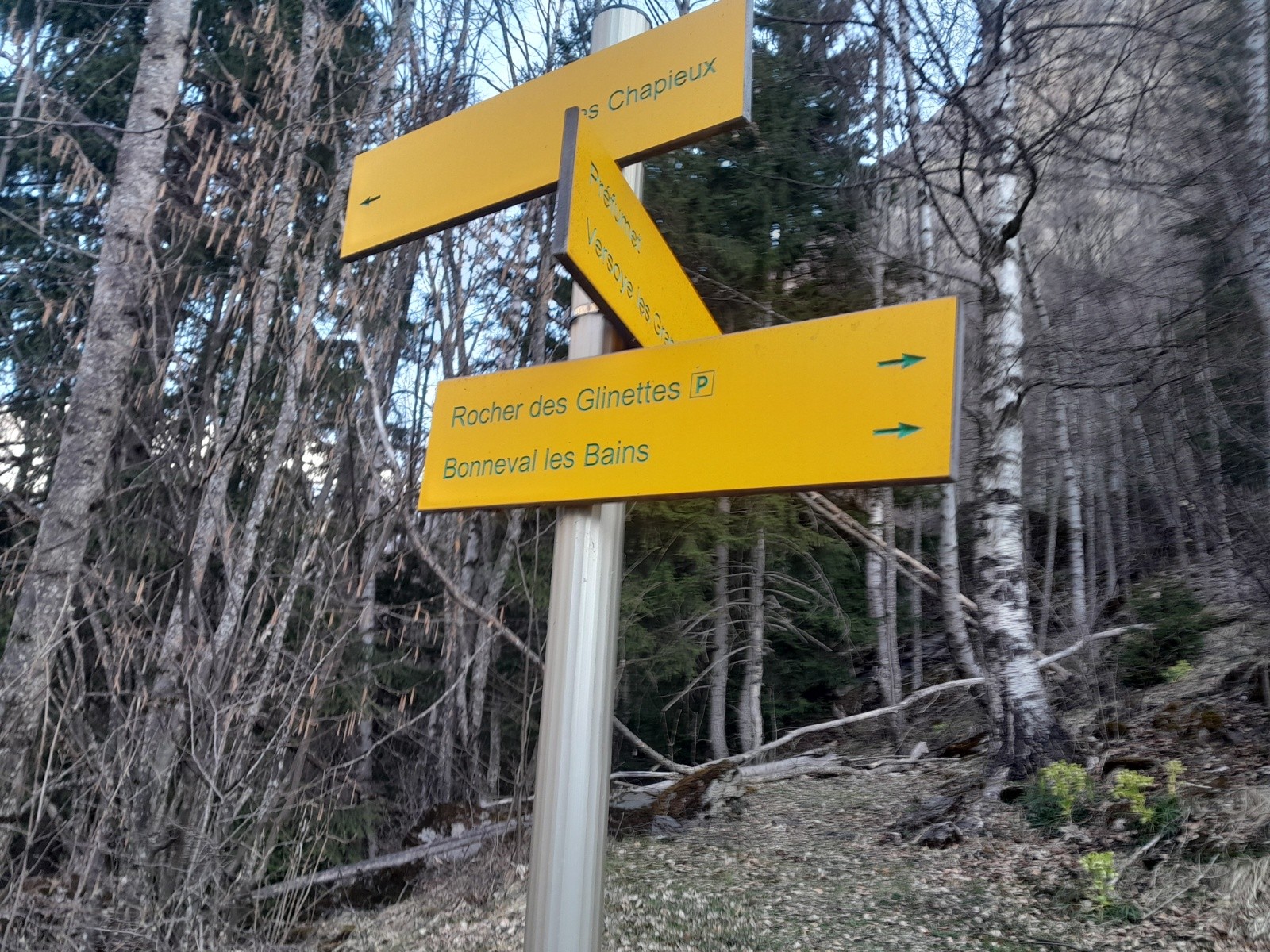 Itinéraire suivi : Source de Bonneval les bains, Bois des Granges par le sentier puis la route, l'Orgière, La Vacherie, le Creux de l'Homme, La Clavettaz.