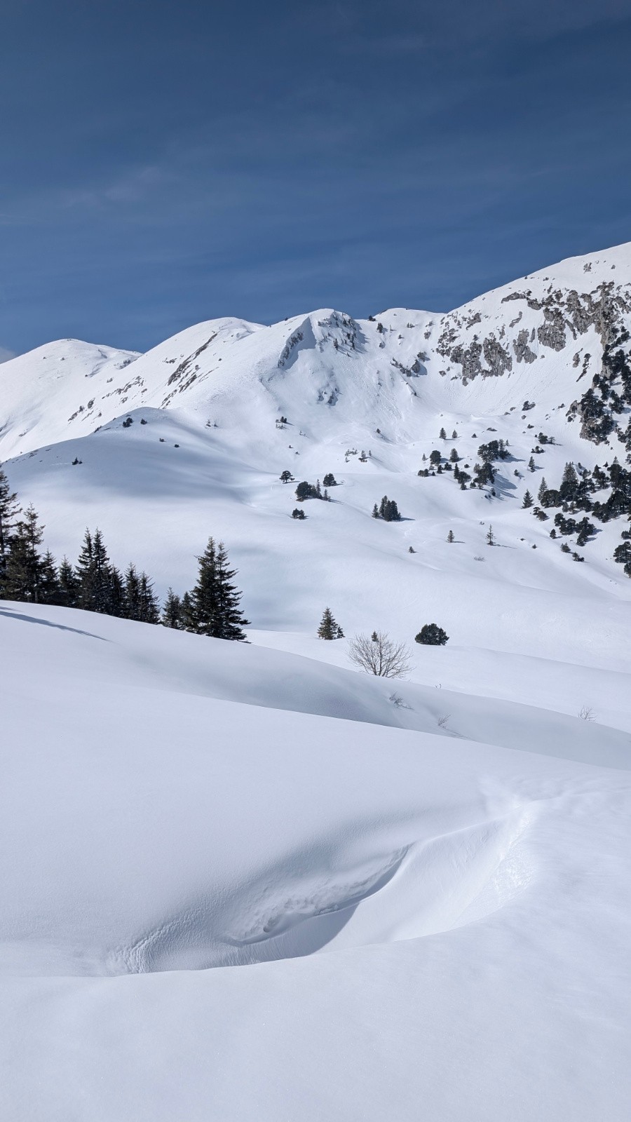 Conditions pour le ski : quantité de neige impressionnante à partir du col de la charmille. Neige de printemps agréable à skier l'après-midi