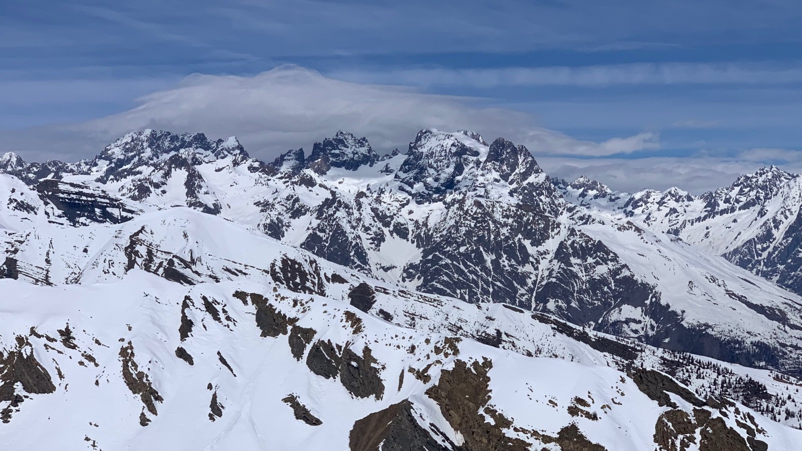 Météo/températures : Grand beau, chaud. Arrivée des nuages sur le Pelvoux vers midi.