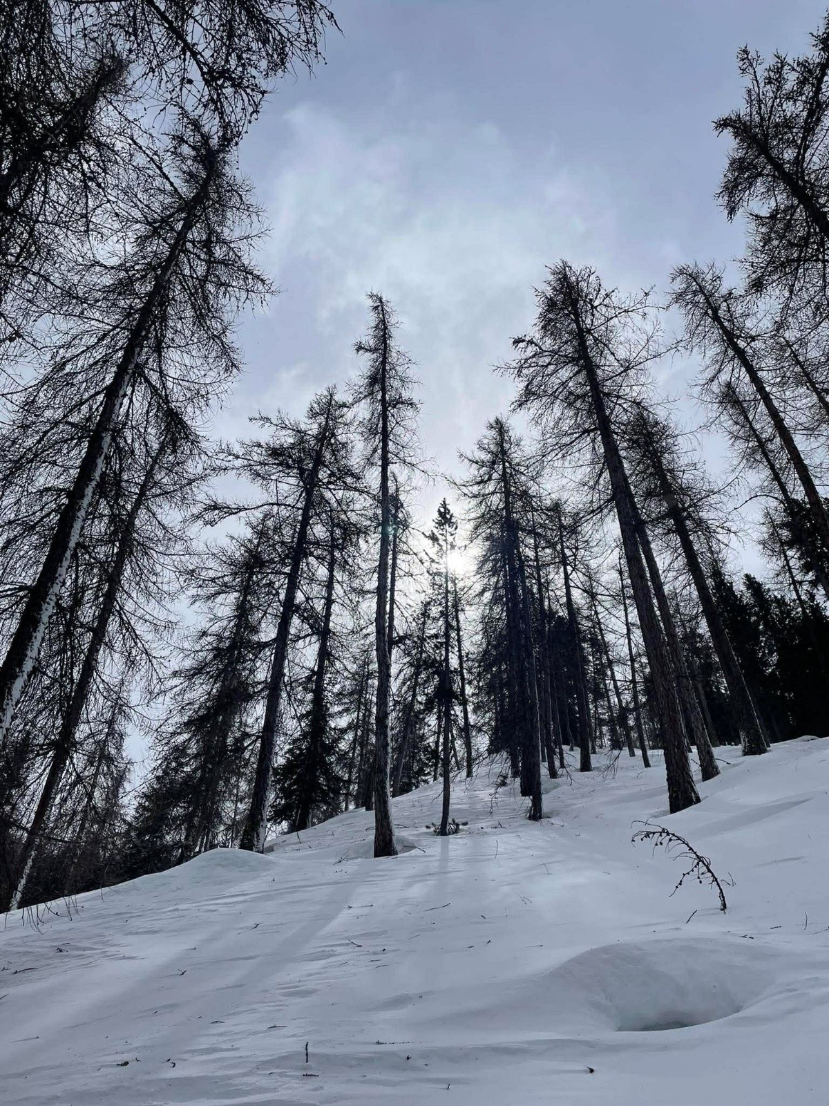 Itinéraire suivi : montée par la piste, puis dans le Bois Noir, au moins raide ; rattrapé une trace de montée dans le dernier quart, merci aux précédent-es !