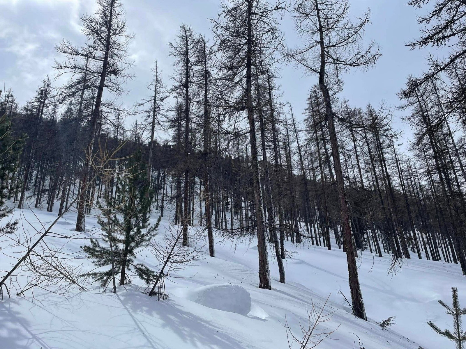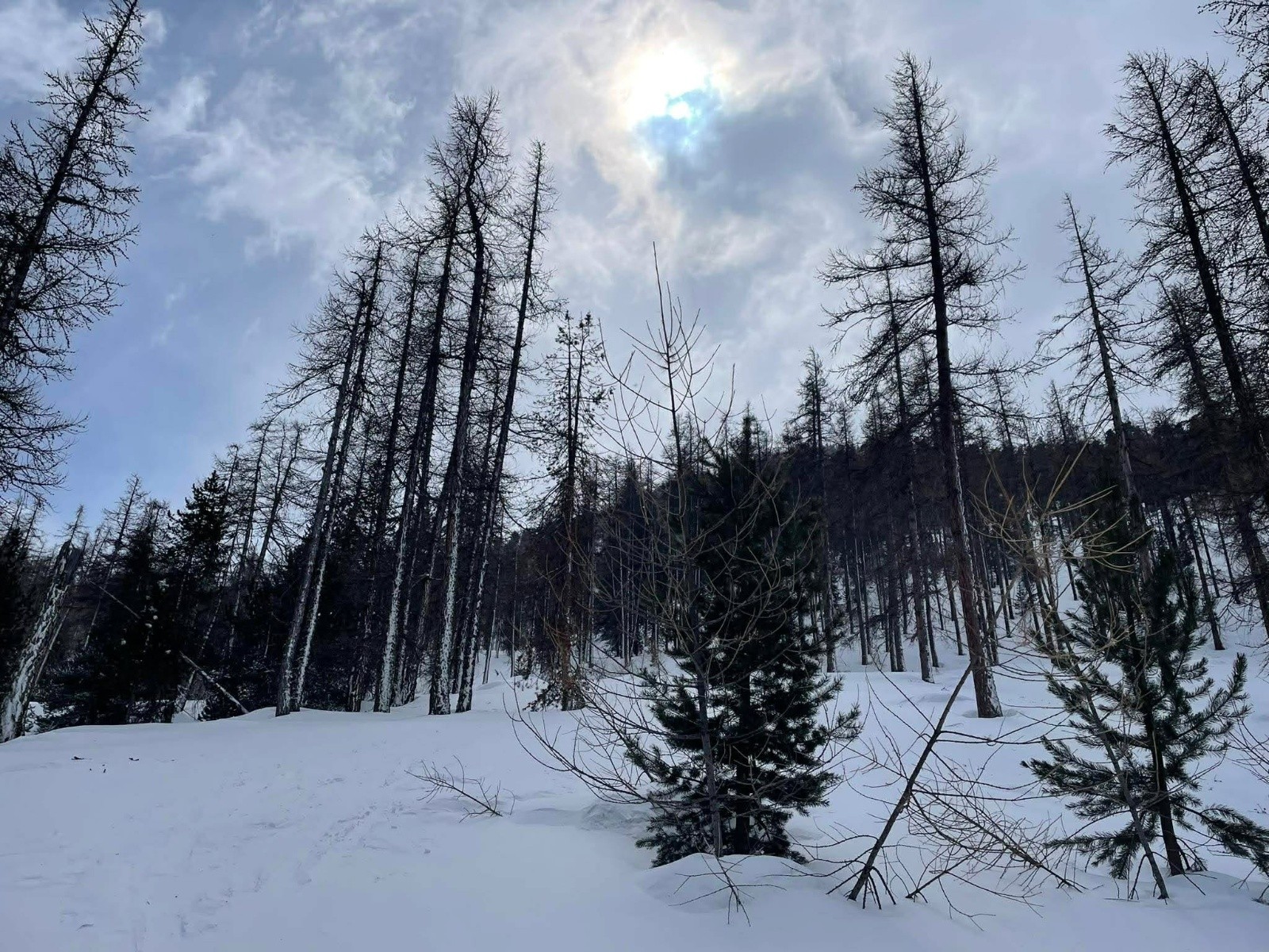 Conditions pour le ski : excellentes sur le haut, bonne épaisseur de neige fraîche (20/30cm) ; l'épaisseur diminue progressivement, plus faible dans les zones exposées, quelques pièges de glace proches sous la neige à éviter