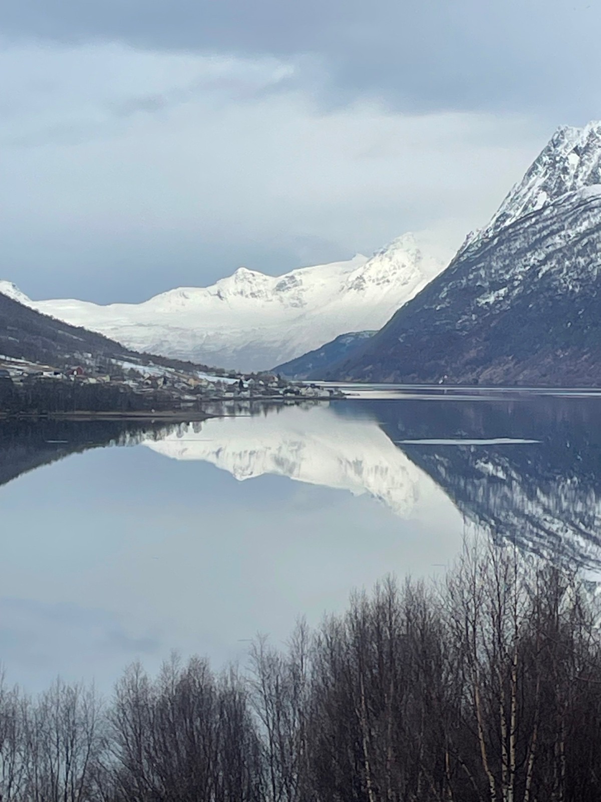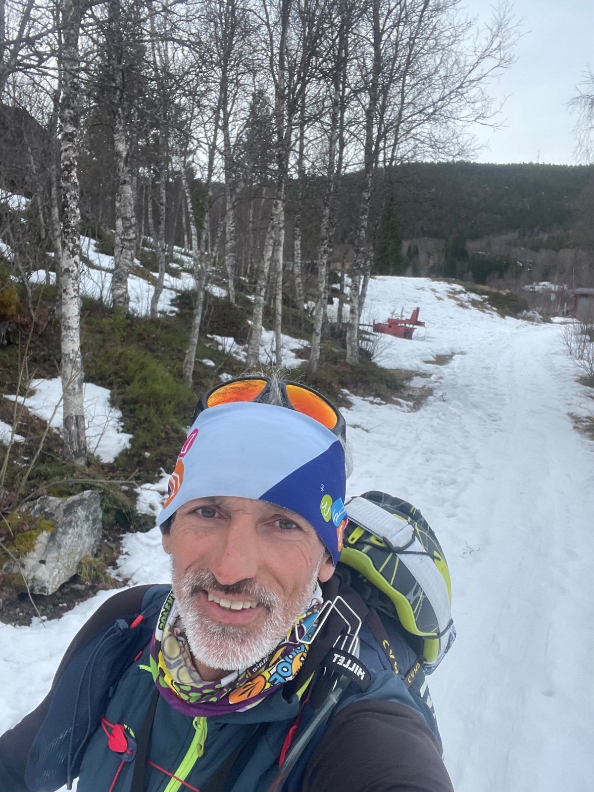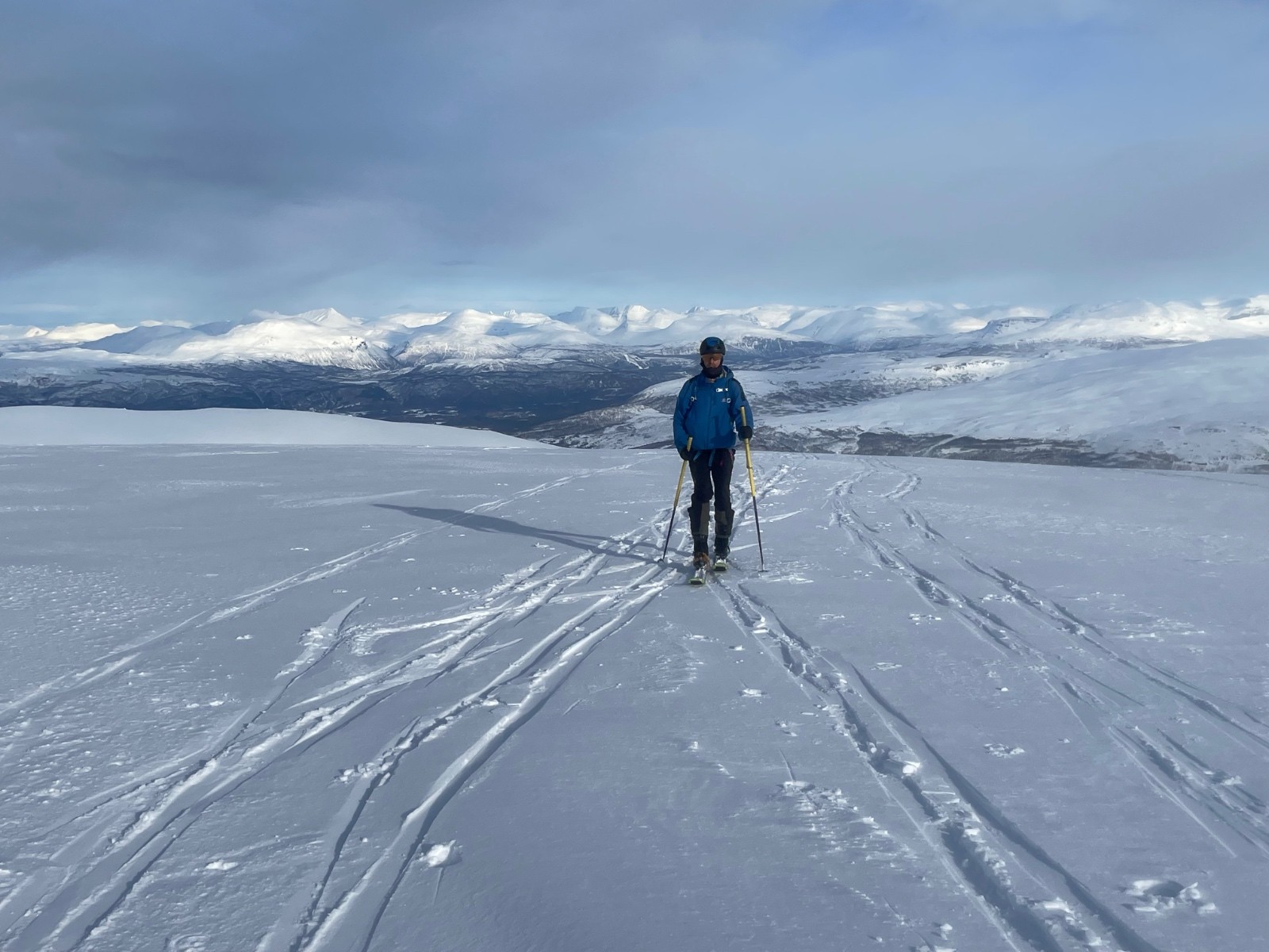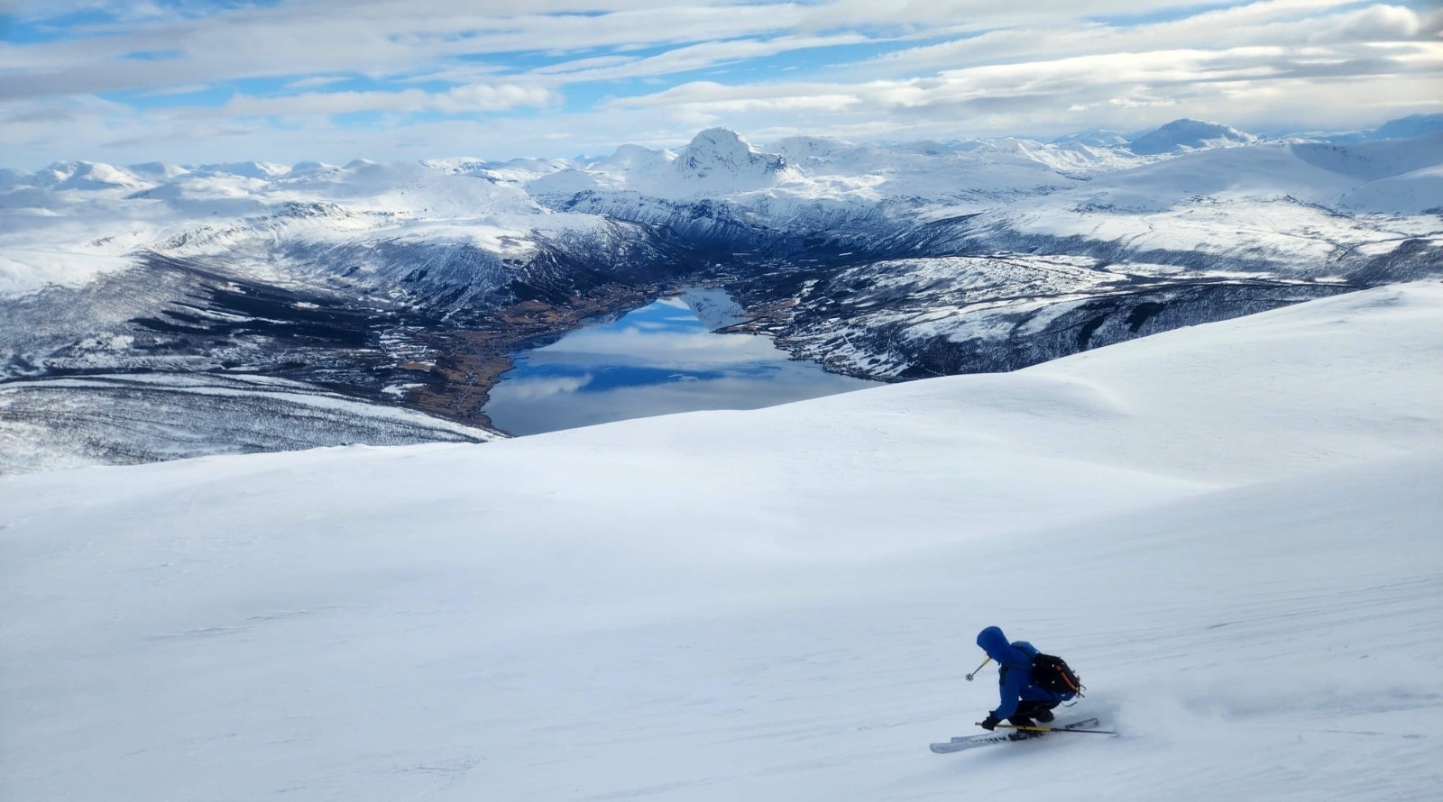 Sommet facile. Descente SE en bonne neige avec une vue magnifique sur le fjord et une belle fin dans la forêt de bouleau.